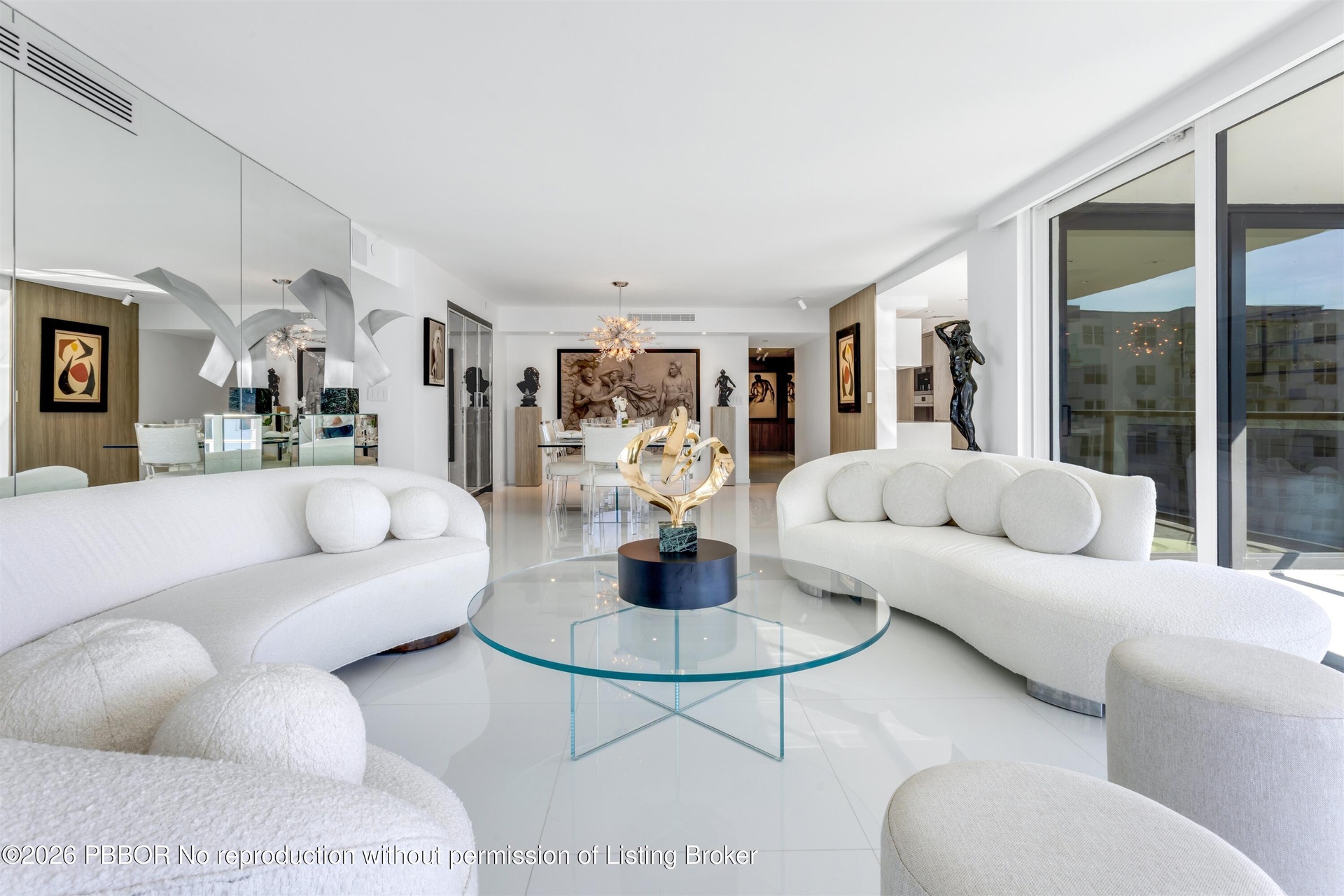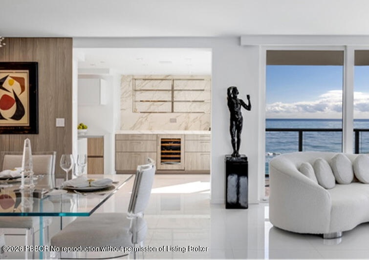 Fully furnished and equipped, this penthouse oceanfront residence offers rare east-to-west exposure with direct water views from both sides, featuring unobstructed sunrise views over the Atlantic and breathtaking sunset views over the Intracoastal--no buildings across the street, just water and sky from every angle. The 2-bedroom, 2-bathroom home spans 1,886 square feet under air (2,450 total) and features expansive balconies on both sides, each over 50 feet long and up to 8.5 feet deep, creating seamless indoor-outdoor living directly on the beach. - Sub-Zero Refrigeration and Freezer Towers, Wine Refrigerator...