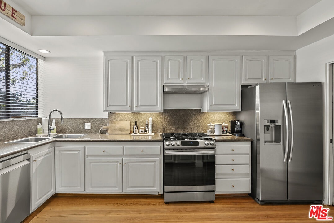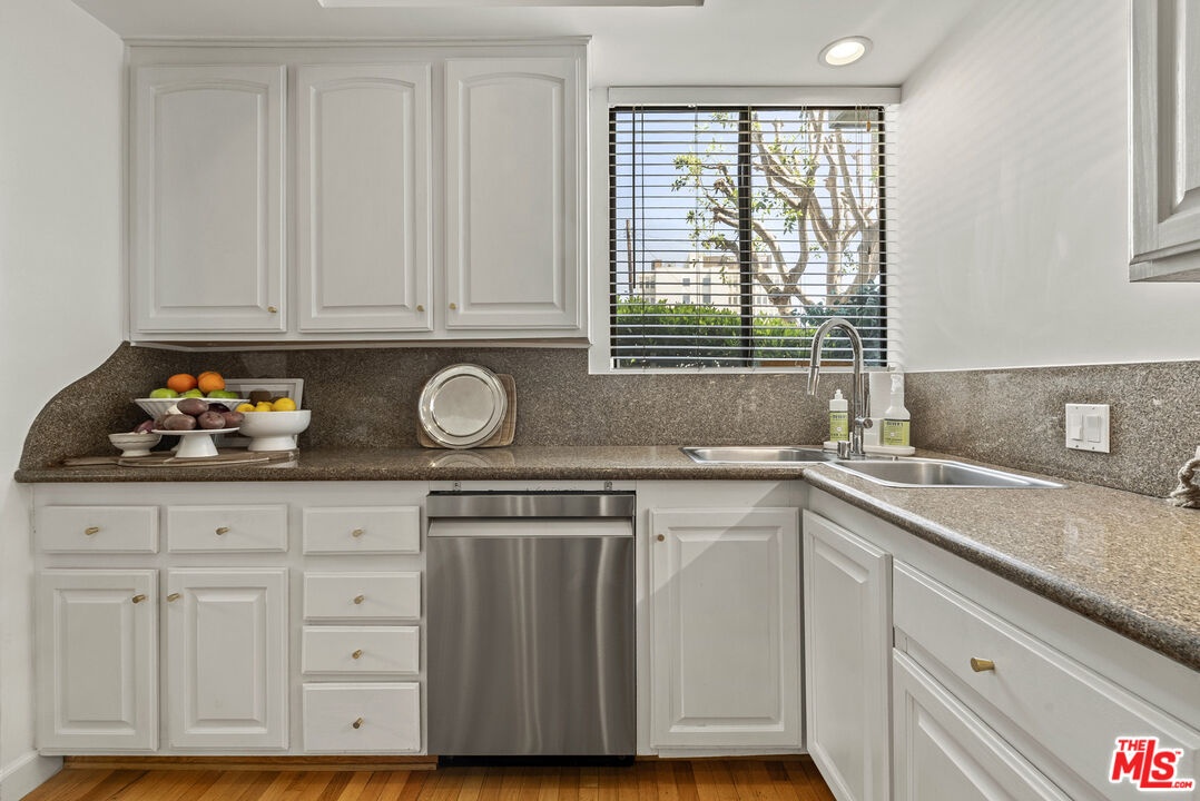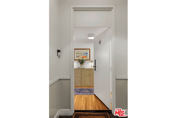 Located in the heart of Brentwood this residence places you at the center of one of Los Angeles' most desirable Westside neighborhoods. Walkability to Farmer's Market, top-tier public schools, Brentwood Country Mart, and some of the city's best dining - Ospi, Baltaire, Great White, and Jon & Vinny's, Beyond the excellent location, the home is a ground-floor corner unit within the Brentwood House complex, offering 2 bedrooms with 2 bathrooms. The layout is open and functional, with hardwood floors, high ceilings, plantation shutters, and abundant natural light throughout.The living room features a fireplace and large windows, creating a comfortable space for both everyday living and entertaining. A built-in bar cabinet with versatile storage compliments the living room. The dining area flows seamlessly into the kitchen, which is equipped with granite countertops, stainless steel appliances, recessed lighting, a pantry, and a peninsula with seating. Sliding doors open to a private terrace with pleasant neighborhood views. The primary suite includes a walk-in closet and an ensuite bathroom. The secondary bedroom and bathroom are ideal for guests or a home office. The fully secure building has cameras throughout, ButterflyMX Access Control System & Digital Key, pool, spa, sundeck, underground parking, and HOA Dues include earthquake insurance.