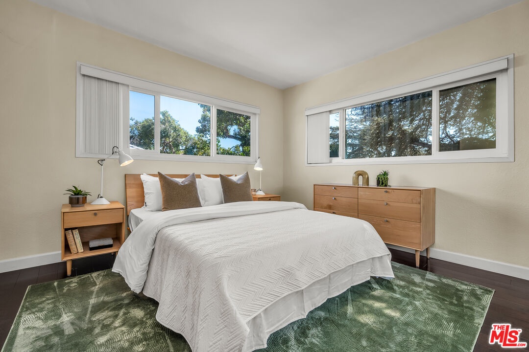 An abundance of natural light, coastal breezes, and tree-top views greet you as you enter this quiet and private two-bedroom, two-bathroom townhome North of Wilshire in the coveted Franklin School District. The living room boasts dramatic two-story ceilings and large glass sliding doors which open to generously sized balcony, set back from and above the street level. Easy flow for entertaining, nicely updated kitchen with stainless steel appliances, breakfast bar opens to the casual dining area and intimate bonus space also surrounded by windows and exterior greenery. Full bathroom and laundry closet complete the first level living space. Upstairs are two generously proportioned, light filled bedrooms and full bathroom with dual vanity. Two side-by-side, covered parking spaces and large, dedicated storage room for this unit. Located in the heart of Santa Monica!