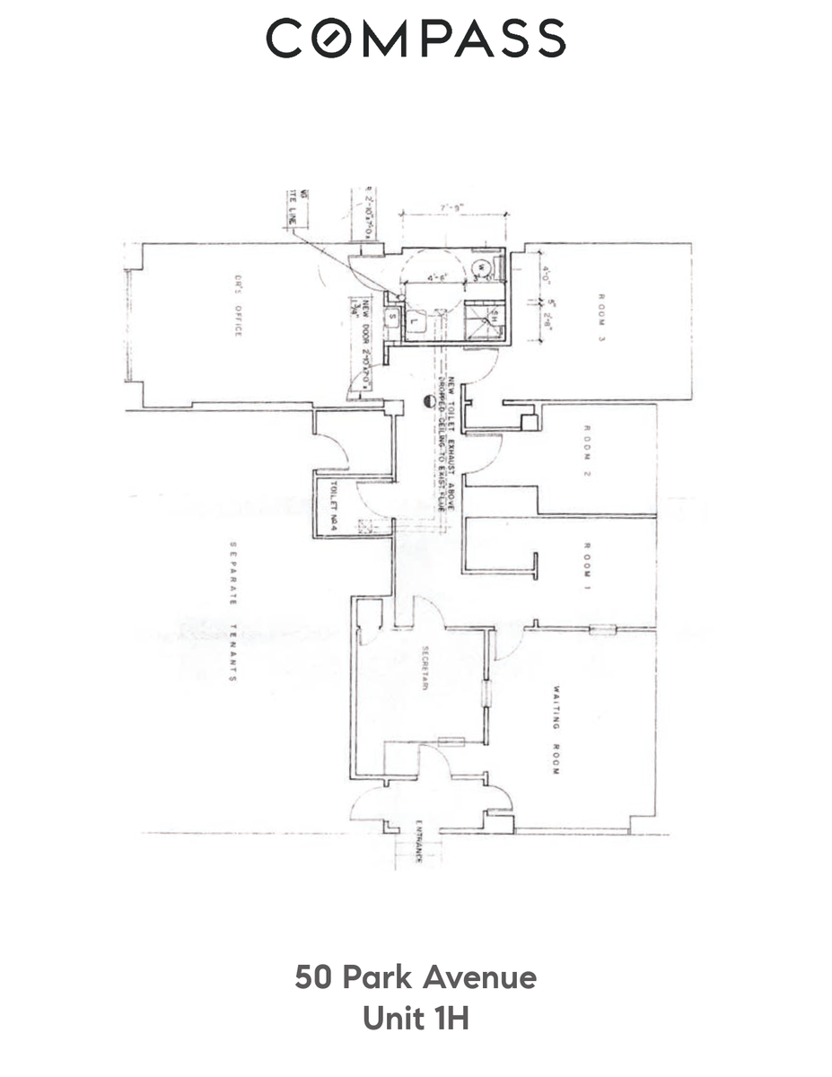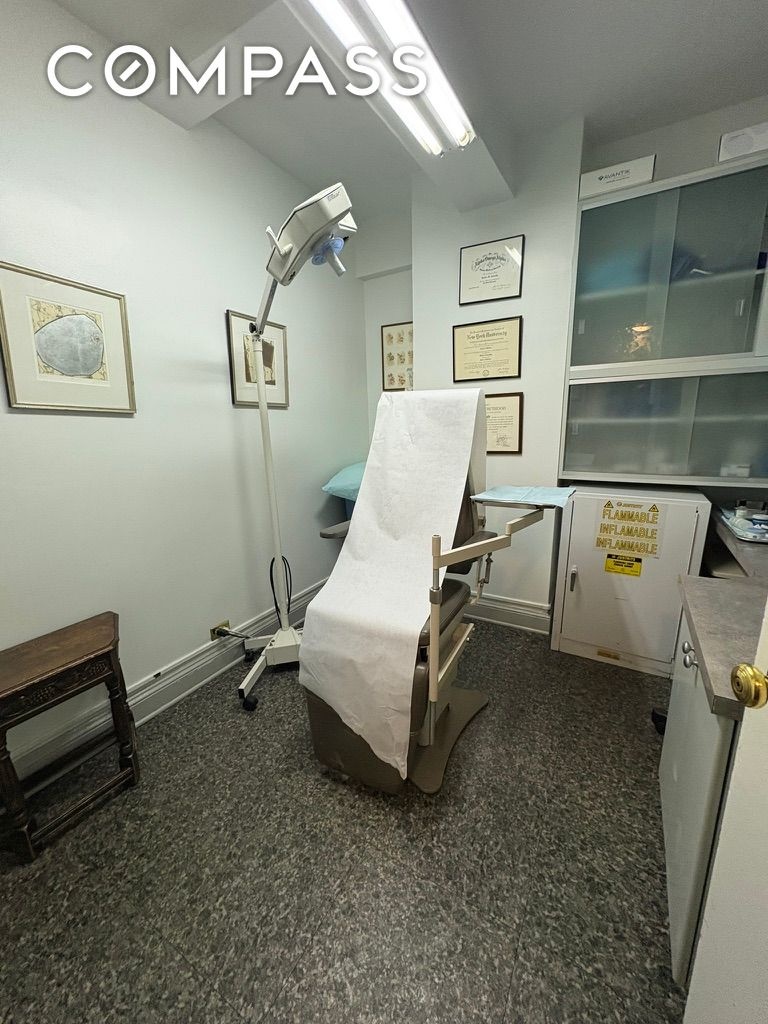 With its own private entrance directly from Park Avenue, this versatile ground-floor space currently operates as a high-end dermatology office. Inside, you’ll find a spacious, light-filled reception room with oversized windows, a large windowed office complete with a wet pantry, three exam rooms, a private bathroom, and a flexible treatment space that was formerly a full bath.