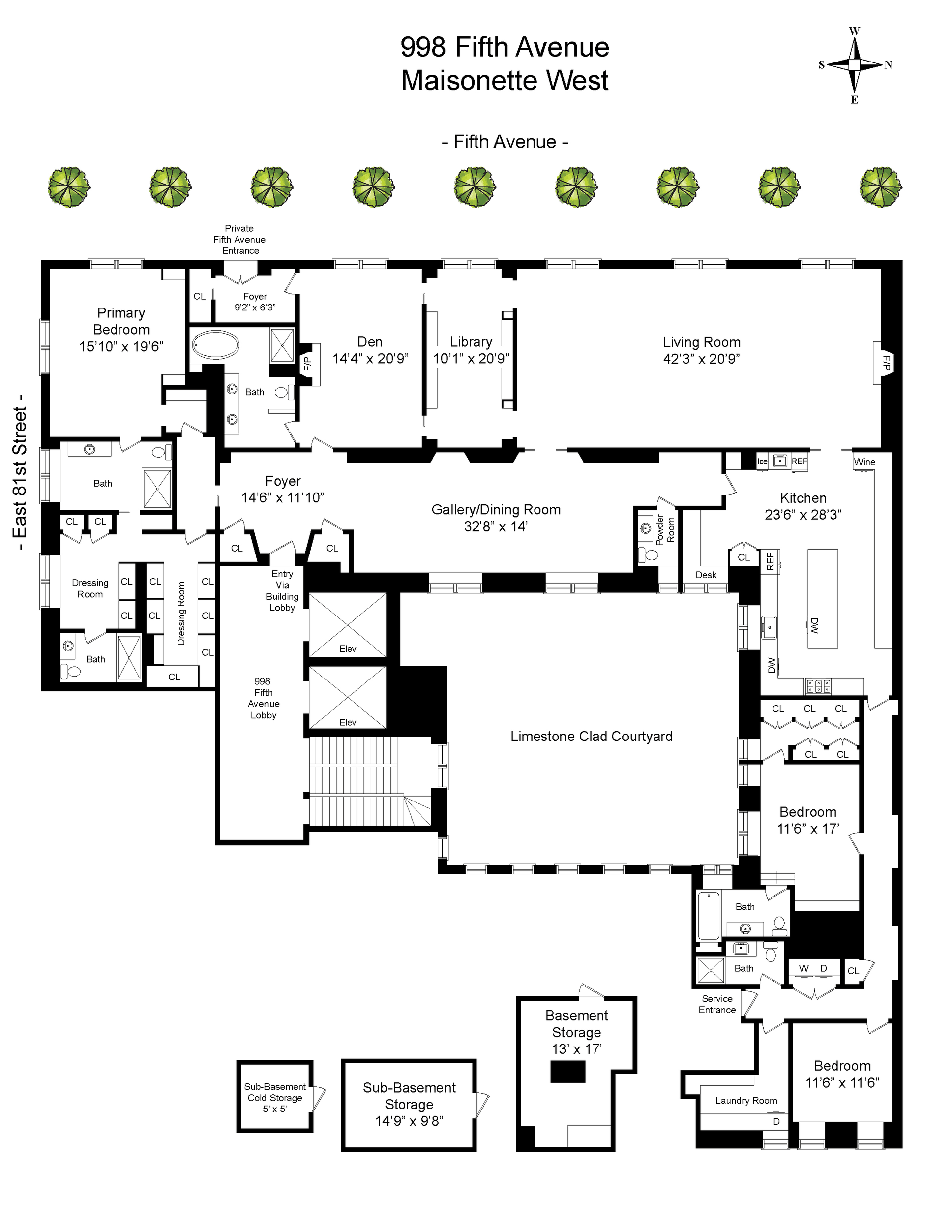 Uniquely, the residence offers two entrances: one through the building’s majestic interior lobby at 998 Fifth Avenue, and the other its own private entrance directly from Fifth Avenue, with its own distinct address: 999 Fifth Avenue.