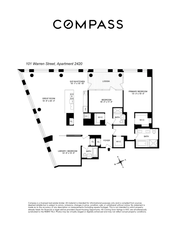 Welcome to Residence 2420 at 101 Warren Street — a premier corner three-bedroom home offering approximately 2,200 square feet of interior space and an additional 160-square-foot private outdoor loggia.