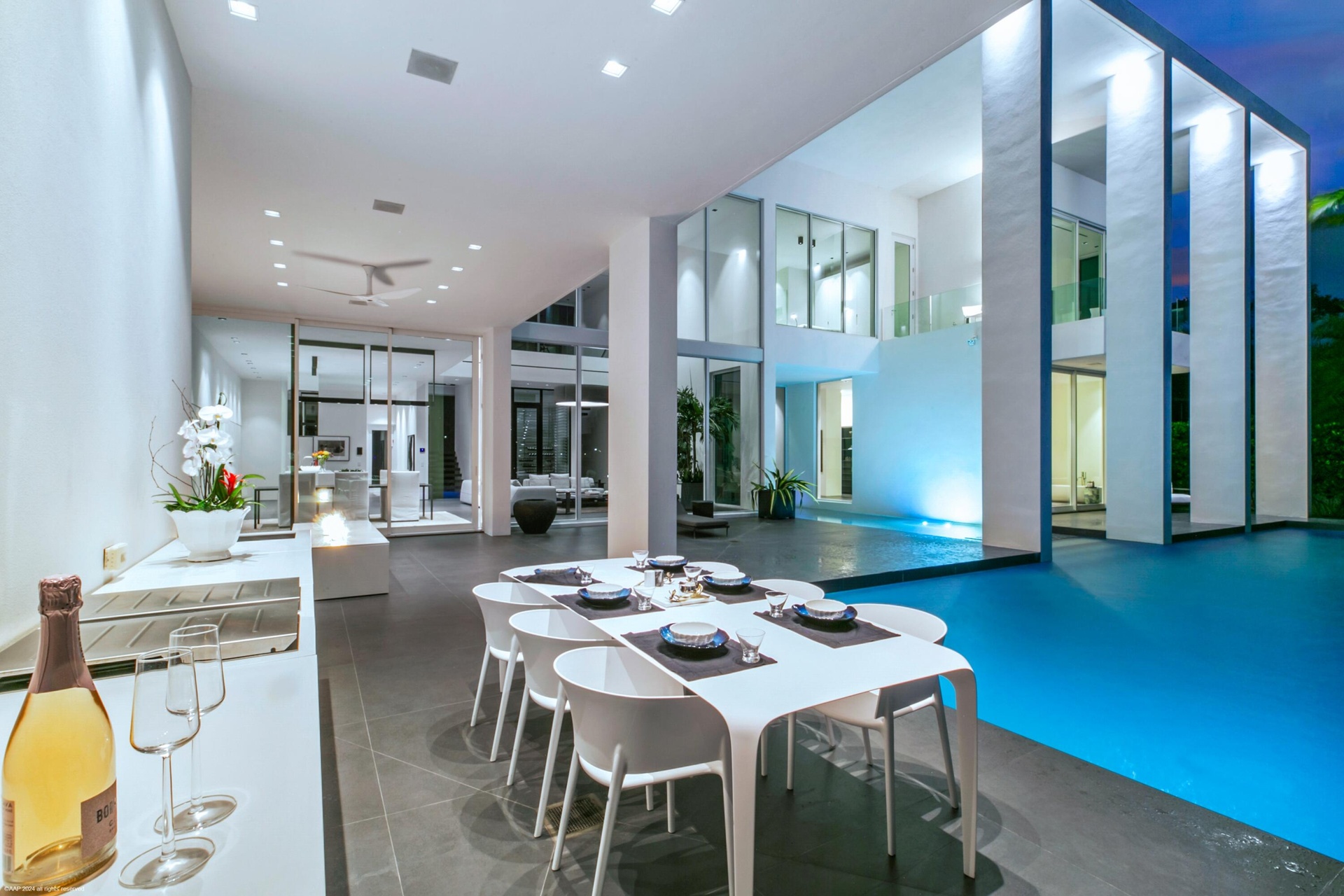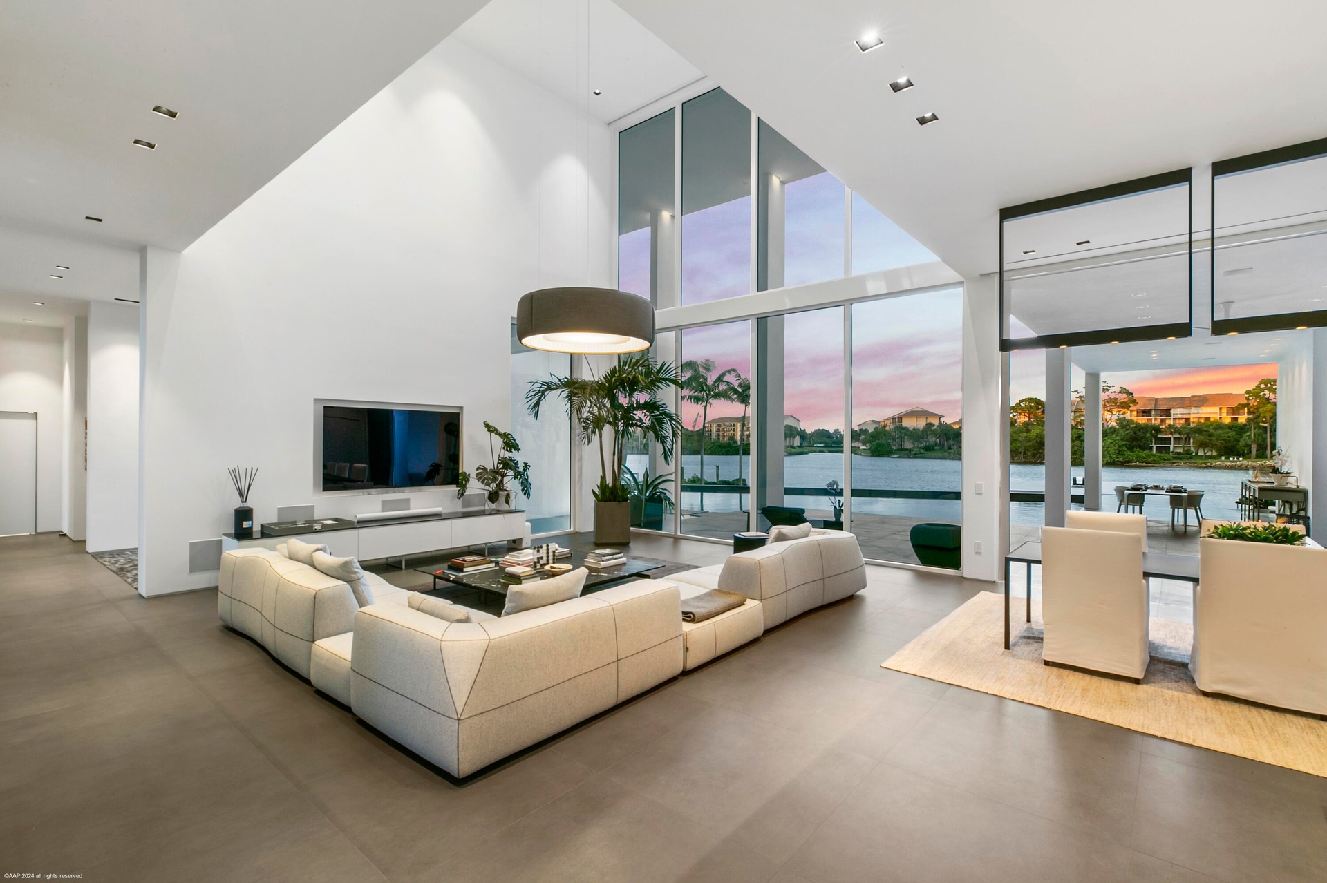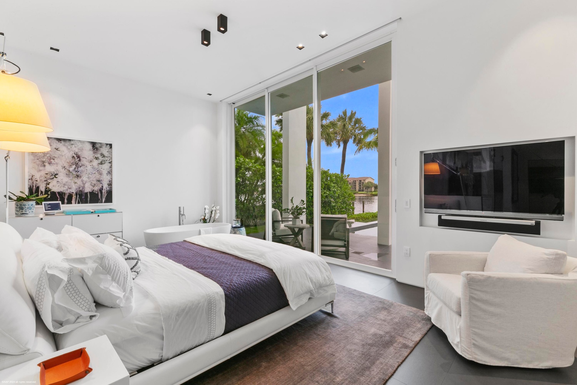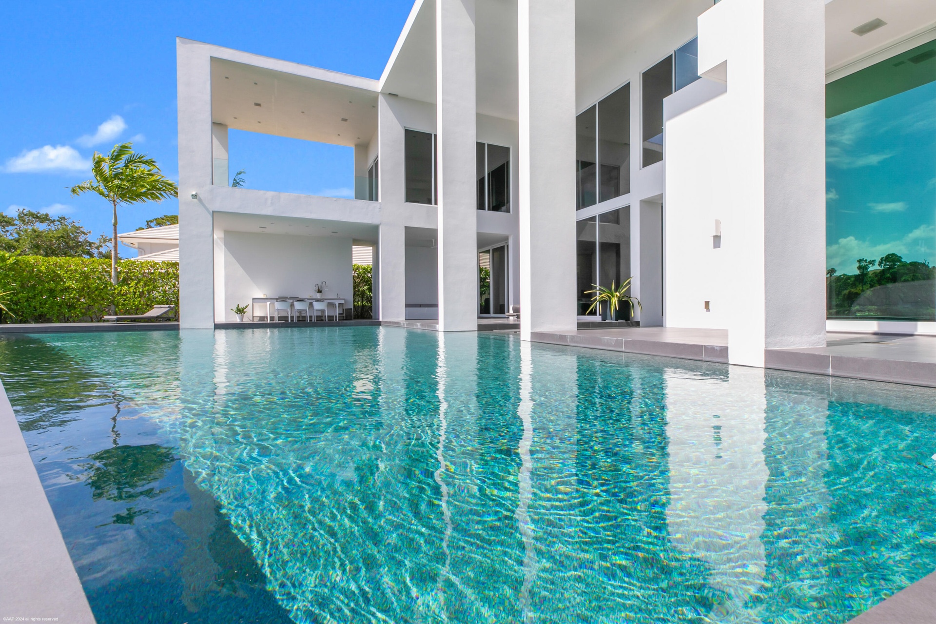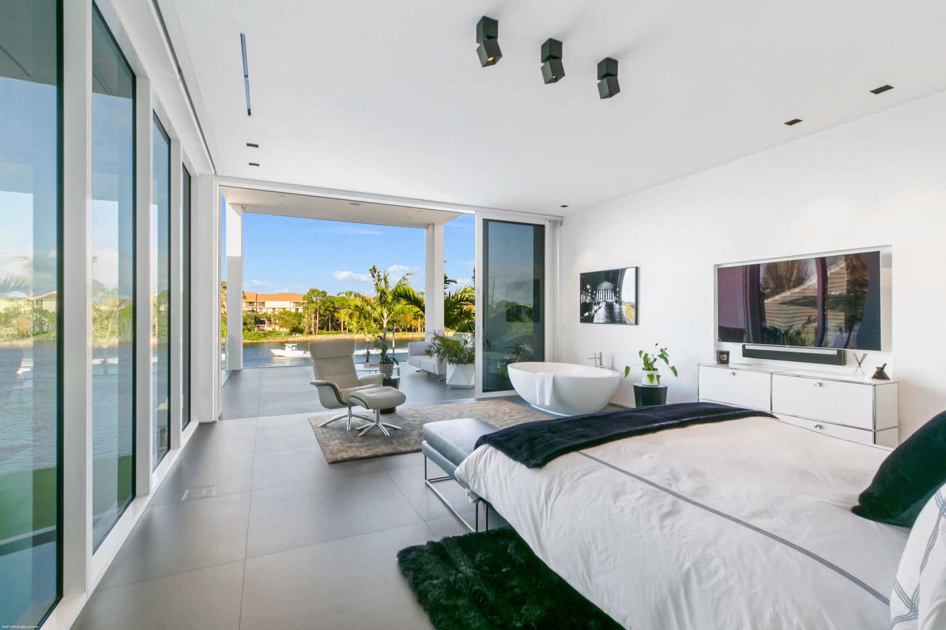 Nestled in prestigious Palm Beach Gardens, this stunning single-family home epitomizes luxury living with its gorgeous water views and ultra-modern design. Boasting a prime location, every aspect of this residence exudes elegance and comfort.Upon entering, you are greeted by an expansive foyer that leads seamlessly into the spacious living areas. The interiors are adorned with high-end finishes, including large format tile floors, custom Bizassa tiled bathrooms, designer light fixtures, and soaring windows and glass doors, creating an ambiance of sophistication with unobstructed views. The gourmet kitchen is a chef's dream, featuring state-of-the-art appliances, sleek cabinetry, and a center island perfect for culinary creations or casual gatherings. Adjacent, the dining area Nestled in prestigious Palm Beach Gardens, this stunning single-family home epitomizes luxury living with its gorgeous water views and ultra-modern design. Boasting a prime location, every aspect of this residence exudes elegance and comfort.Upon entering, you are greeted by an expansive foyer that leads seamlessly into the spacious living areas. The interiors are adorned with high-end finishes, including large format tile floors, custom Bizassa tiled bathrooms, designer light fixtures, and soaring windows and glass doors, creating an ambiance of sophistication with unobstructed views. The gourmet kitchen is a chef's dream, featuring state-of-the-art appliances, sleek cabinetry, and a center island perfect for culinary creations or casual gatherings. Adjacent, the dining area