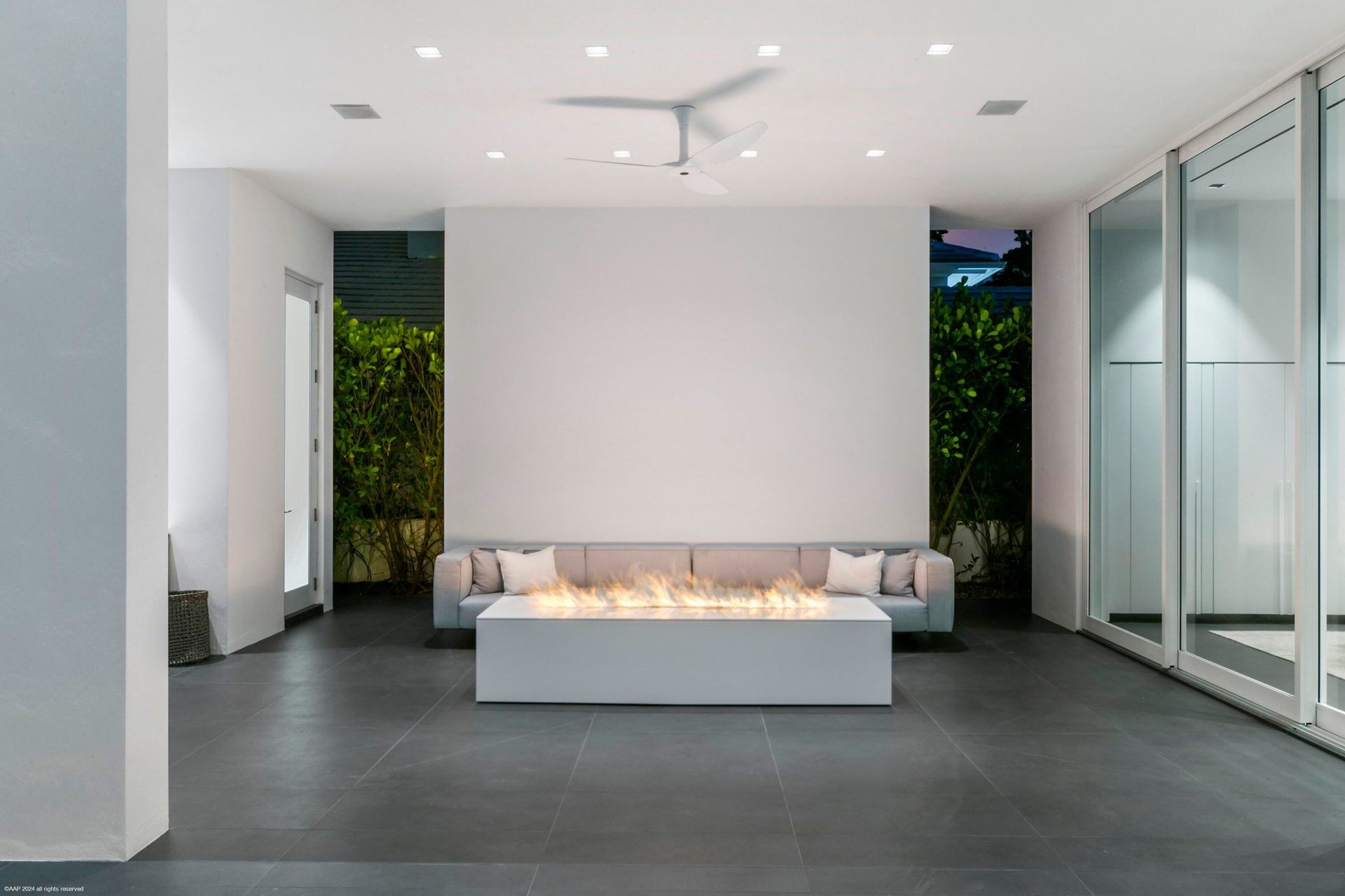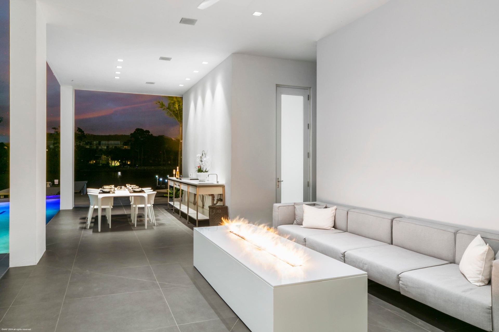 Outside, the expansive lanai and inviting pool area provide an ideal setting for outdoor living and entertainment. Enjoy breathtaking views from the infinity-edge pool, host a family BBQ at the outdoor summer kitchen with seamless access to the interior kitchen, or unwind at the firepit table while soaking in the picturesque surroundings.