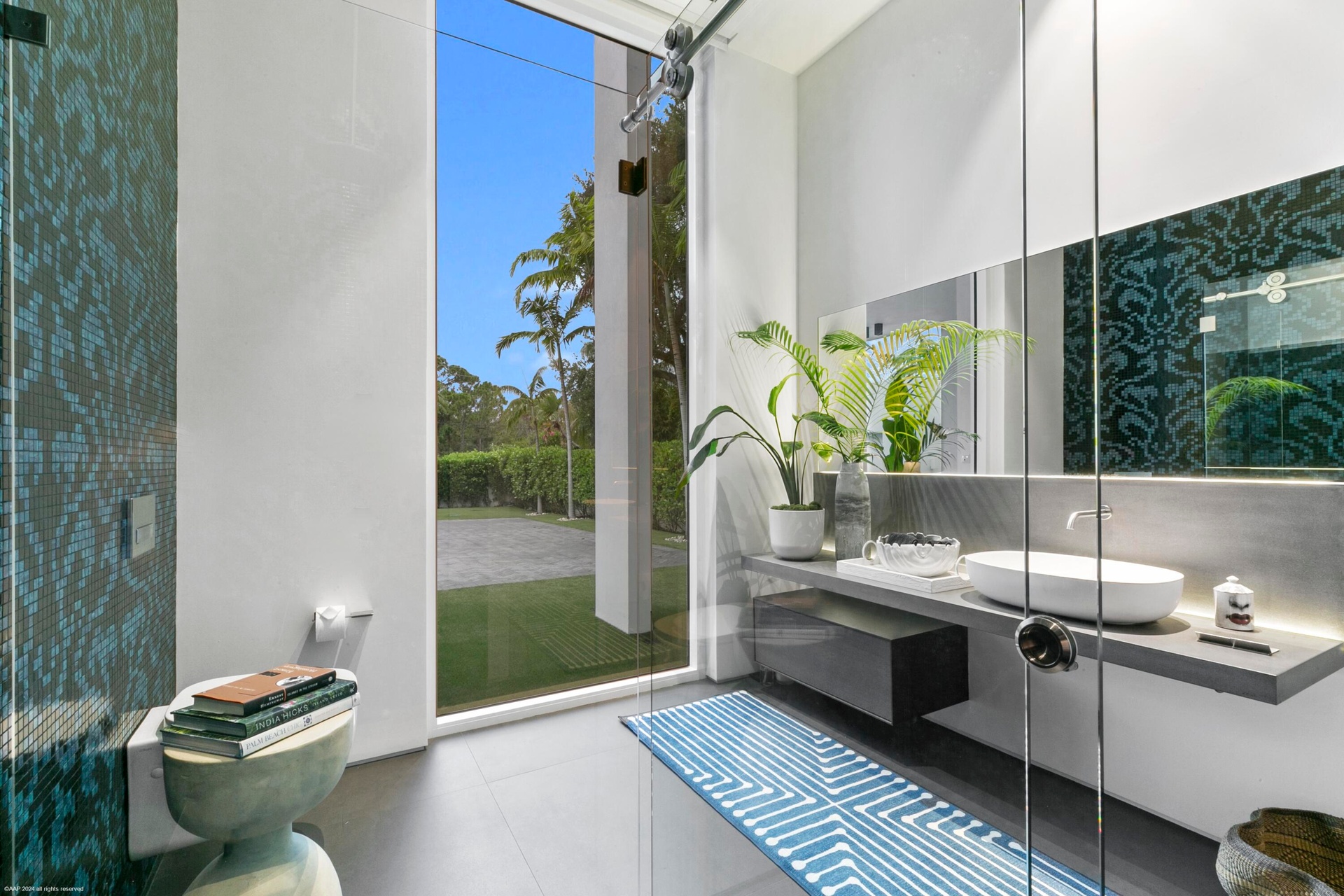 Additional highlights of this exclusive residence include a private deck for basking in the South Florida warmth, a wine cellar for connoisseurs, a media room for cozy movie nights, state-of-the-art home technology with built in sound system- all controlled from the convenience of your ipad or cell phone, a meticulously kept oversized 3-car garage that is climate controlled and features sufficient storage. Fragrant herbs flourish in the personal herb garden at the front of the estate.