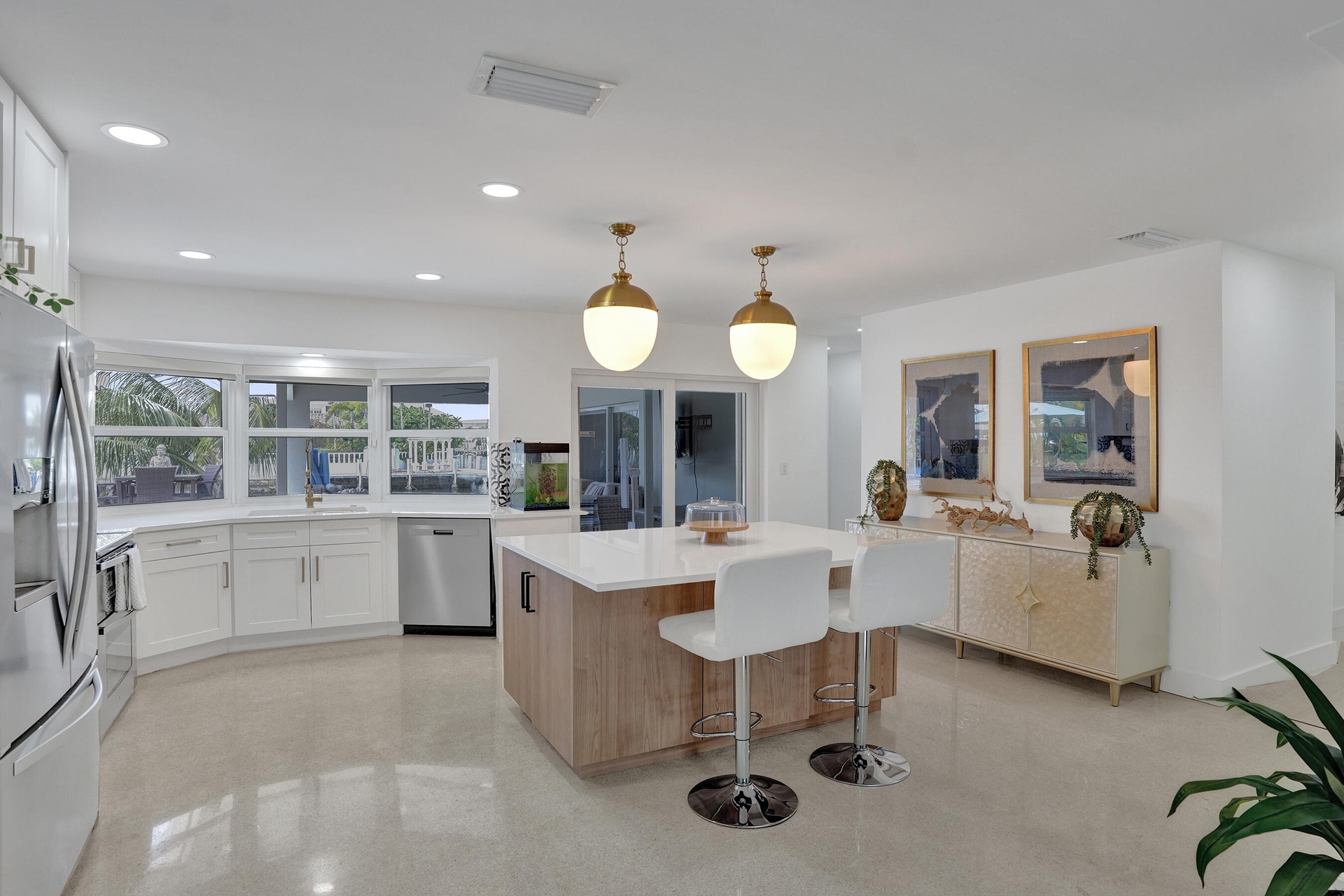 Charming waterfront residence in The Landings offering 3 bedrooms and 2 bathrooms with 80 feet of water frontage. This home features an open floor plan with split bedrooms, terrazzo and tile flooring throughout, and abundant natural light. The updated kitchen includes custom cabinetry, Whirlpool appliances, and a built-in bar with wine chiller, ideal for entertaining. Impact windows and doors provide added security and efficiency. Enjoy outdoor living with a covered terrace, sparkling pool, and serene water views. Two-car garage. Move-in ready.