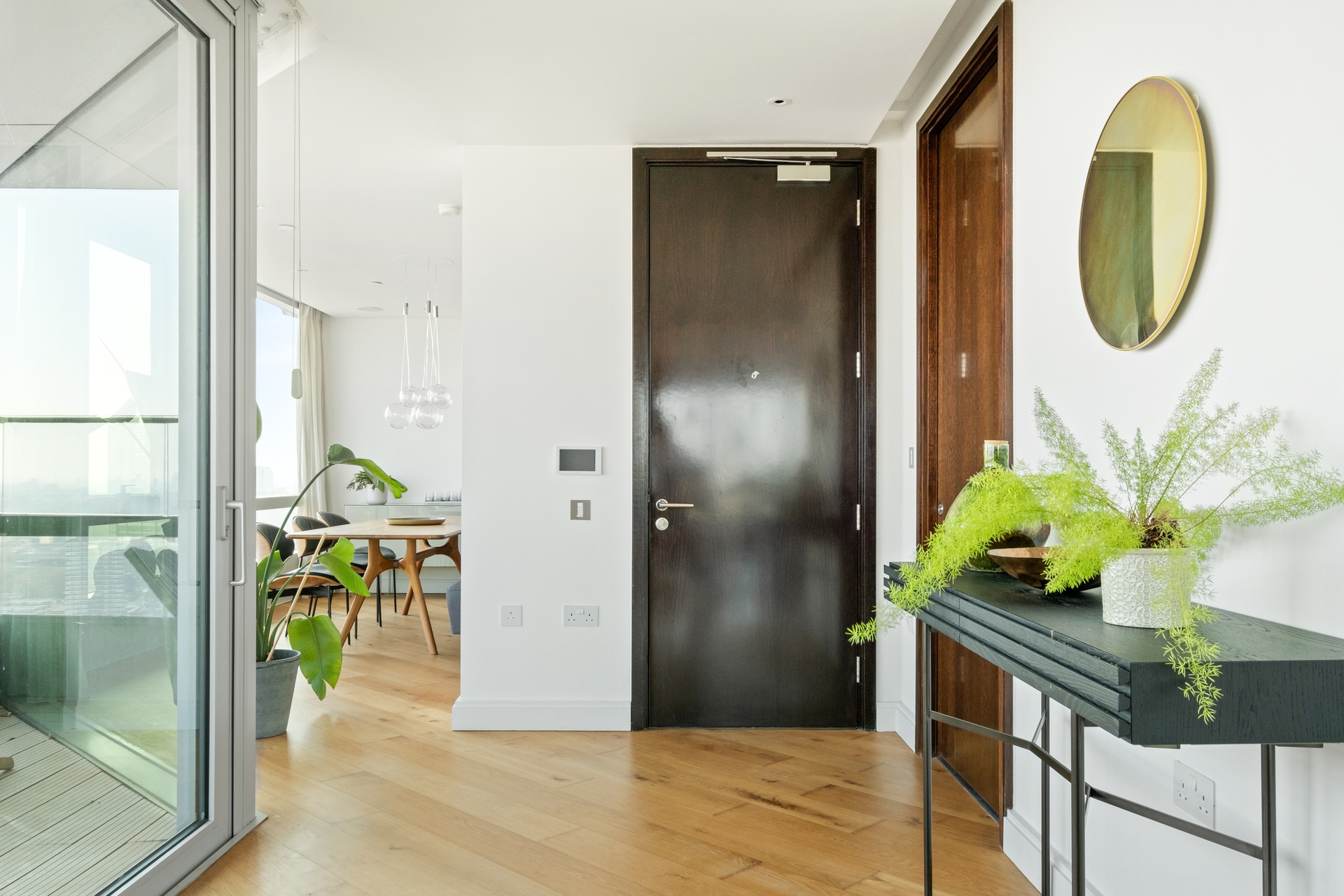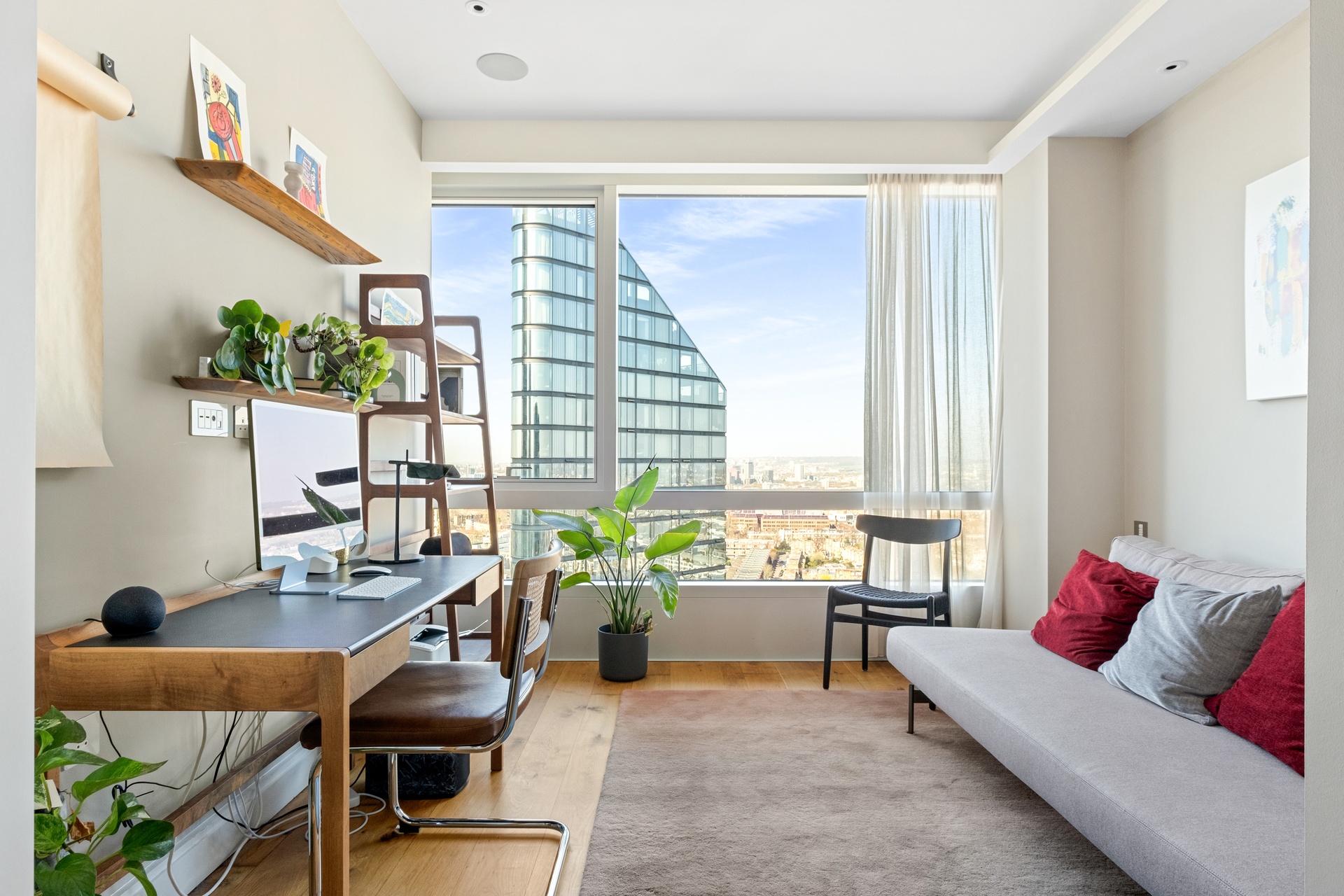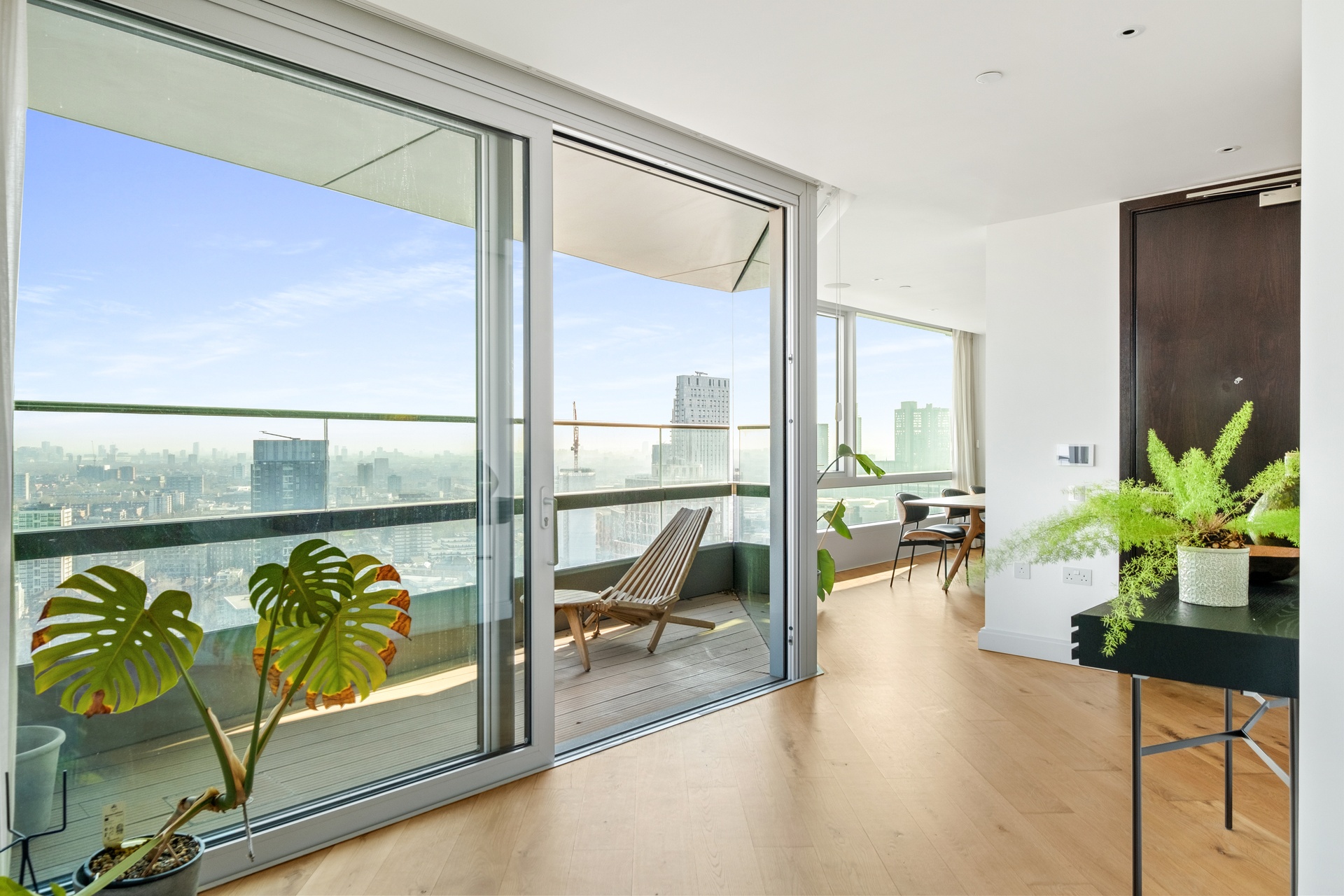 Occupying half of an entire floor, the apartment benefits from a wide lateral aspect, maximising light and creating expansive, uninterrupted sightlines across London.
