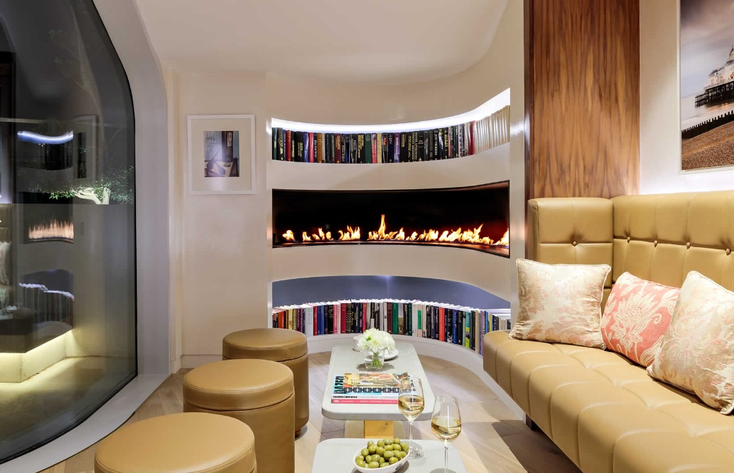 A relaxed social space designed for informal meetings, remote working or entertaining guests, with a more private and refined atmosphere than typical communal areas.