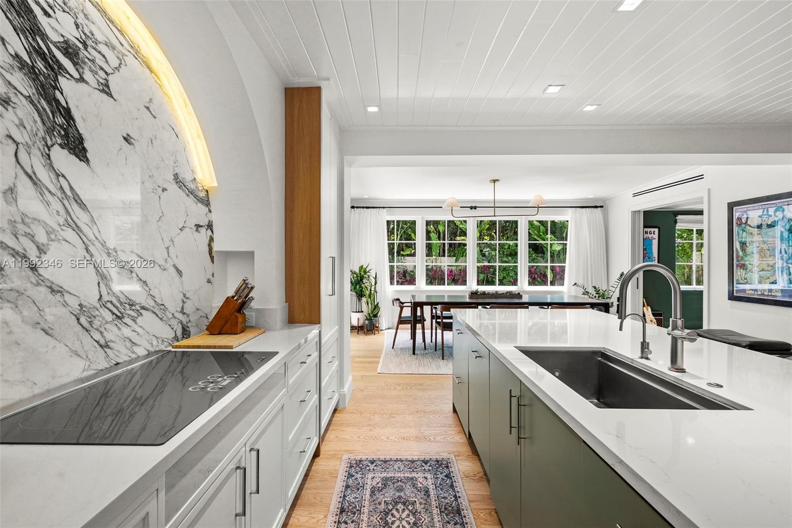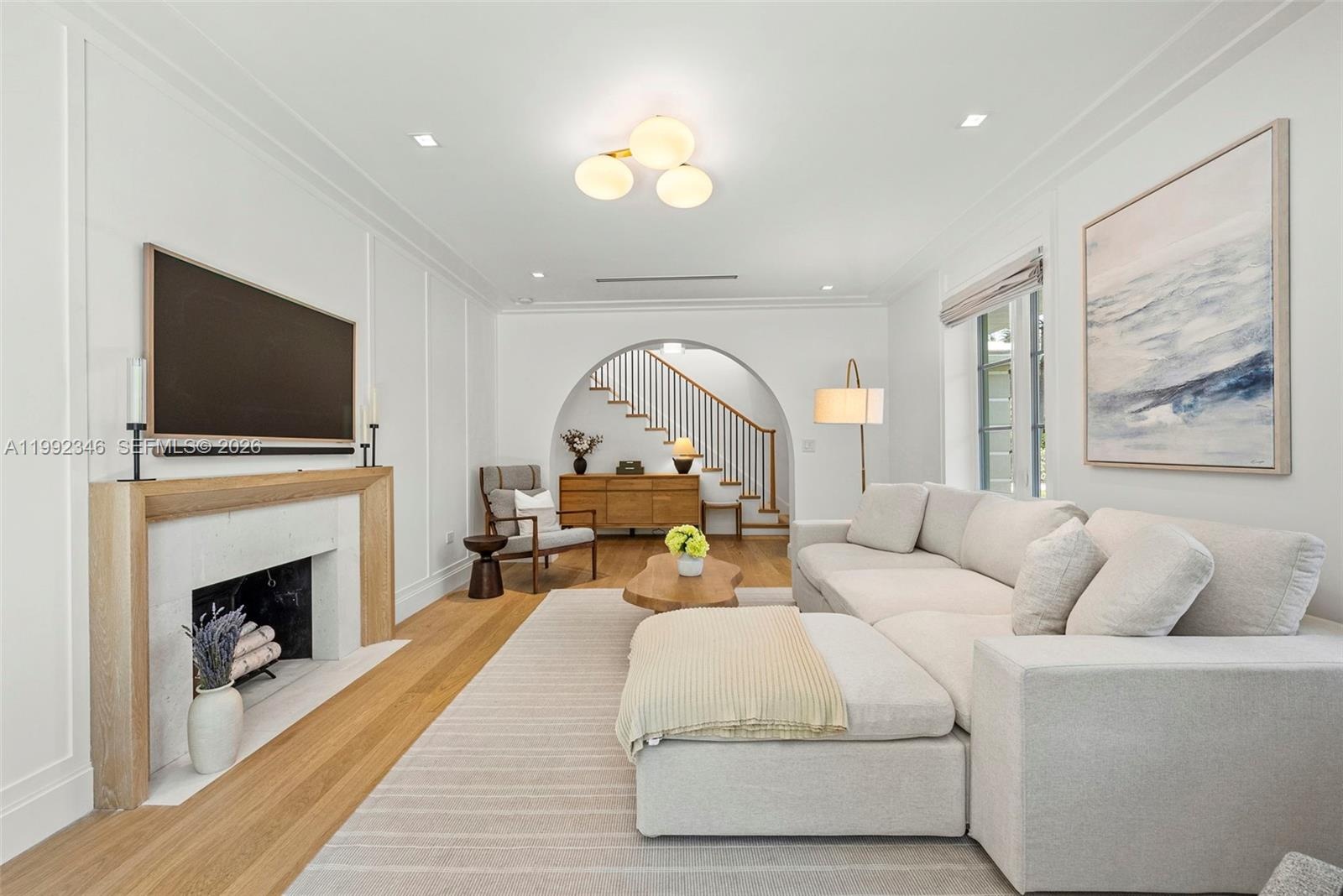 Tucked along the northern tip of Dilido Island, this flawlessly renovated residence sits on one of the Venetian Islands’ most desirable streets. Completed as a brand-new designer gut renovation in 2025—with architecture by Taylor and Taylor and interiors by Laura Hodges Studio and inspired by French island living—the home offers approximately 3,300 total square feet with 4 bedrooms and 3 bathrooms, including a convenient ground-floor suite. Every system was upgraded, including new electrical, plumbing, HVAC, hurricane-impact windows and doors, and a full-house generator. Interiors are bright and thoughtfully scaled, with defined living and family areas that flow seamlessly to the outdoors through French doors. The kitchen, completed in 2026, serves as a focal point, anchored by a striking arched marble feature wall, expanded island, and custom cabinetry. Upstairs, the primary suite enjoys a quiet setting with water views, access to a newly added private terrace, and a custom-built walk-in closet. A dedicated fitness space and an additional lounge overlooking the pool provide flexibility for everyday living. Outdoors, the pool was reimagined and surrounded by lush, professionally designed landscaping. Additional features include a two-car garage with custom storage. Ideally located moments from Miami Beach, Sunset Harbour, and major thoroughfares, this is a rare opportunity to own within one of Miami’s most sought-after island neighborhoods.