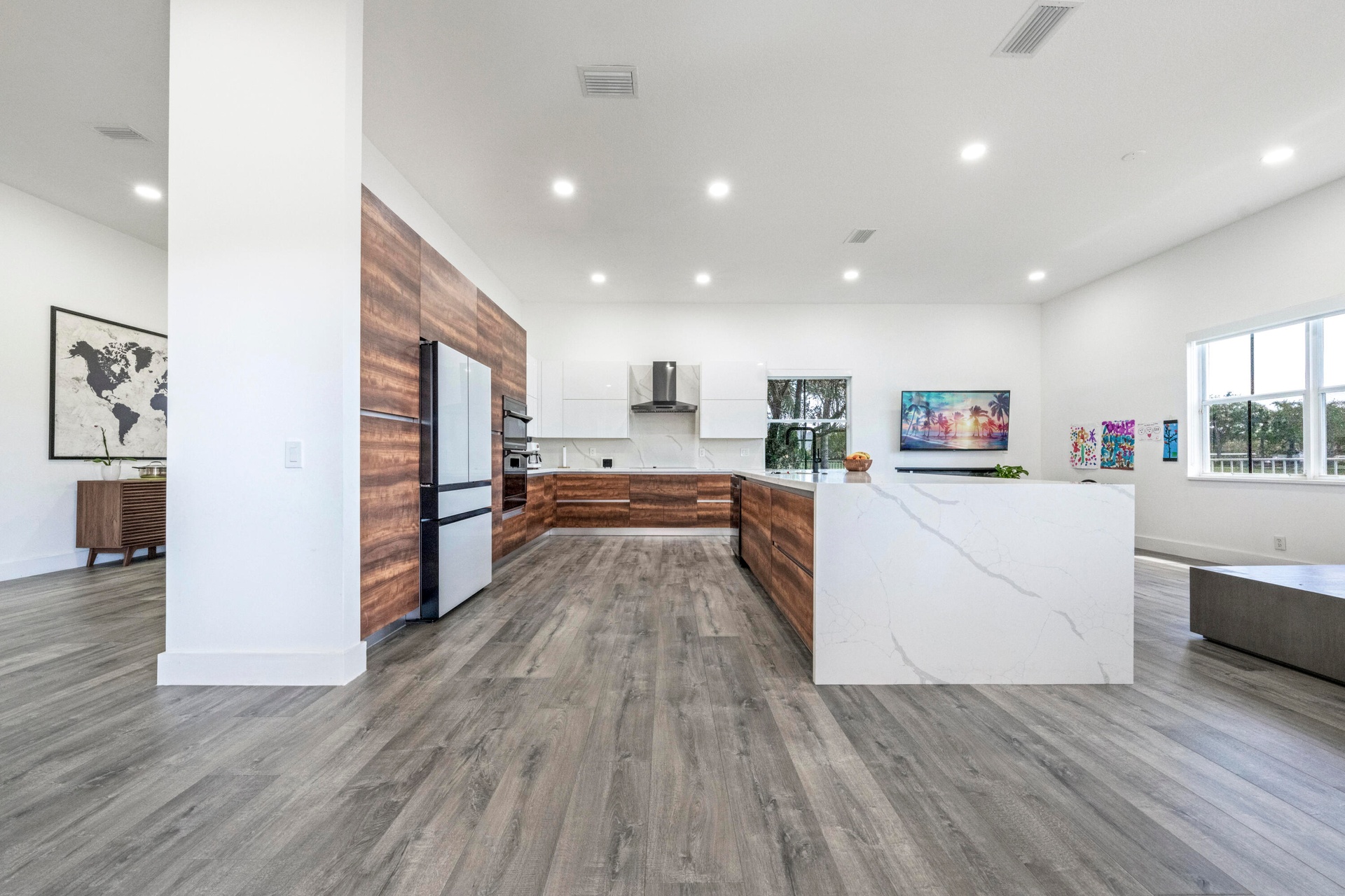 Set along a serene waterfront in the highly sought-after Savanna community of Weston, this exceptional 5-bedroom, 3.5-bath residence offers refined South Florida living. Thoughtfully updated with a sophisticated blend of wood and glass finishes, the home features sleek wood-plank tile flooring throughout. A grand entry with soaring ceilings leads into light-filled living spaces, where tranquil lake views take center stage. The Brazilian-inspired kitchen impresses with top-of-the-line appliances, custom cabinetry, and an oversized island ideal for entertaining. Built-out walk-in closets add both style and function. Outdoors, a covered patio invites you to relax and enjoy the peaceful waterfront setting. Residents of Savanna enjoy a gated, amenity-rich lifestyle with easy access everywhere.