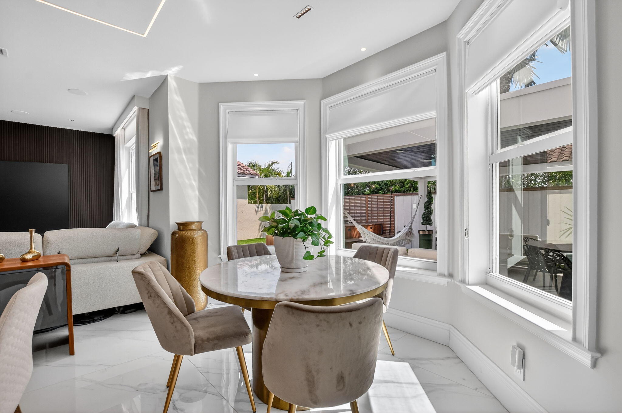 Welcome to the highly sought-after courtyard home in Mission Bay, BOCA RATON ! This versatile home provides a casual, elegant, active lifestyle in the sought after Harbour Springs at Mission Bay Community in Boca. Recently updated, this 5-bedroom, 4.5 bath home features porcelain tile and wood floors, volume ceilings with beautiful French doors showcasing a large sunburst window, providing natural light to the open floor plan that flows from the living room, family room, and dining area to a spacious all new chef's kitchen with a bar and breakfast nook. Benefit from a NEW roof, NEW hurricane rated windows and doors, recently updated bathrooms and flooring, a separate guest house/office, spacious storage, and new high end appliances. NEW ROOF, ALL IMPACT WINDOWS AND DOORS, ALL NEW PLUMBING, NEW ELECTRICAL, NEW FLOORS, NEW GAZEBO WITH BUILT-IN KITCHEN AT THE PATIO FOR OUTDOOR ENTERTAINMENT. NEW HEATED OUTDOOR SPA. NEW BUILT-IN CLOSETS AT ALL BEDROOMS. NEW WINDOW TREATMENTS WITH BLACK OUT SHADES. Residents enjoy access to Mission Bay's resort-style amenities, including a fitness center, heated pool and spa, tennis courts, pickleball, basketball courts, and playgrounds. The HOA covers basic cable and access to community amenities. Ideally located within a top-rated school district and just minutes from shopping, dining, entertainment, and Boca Raton's beautiful beaches.