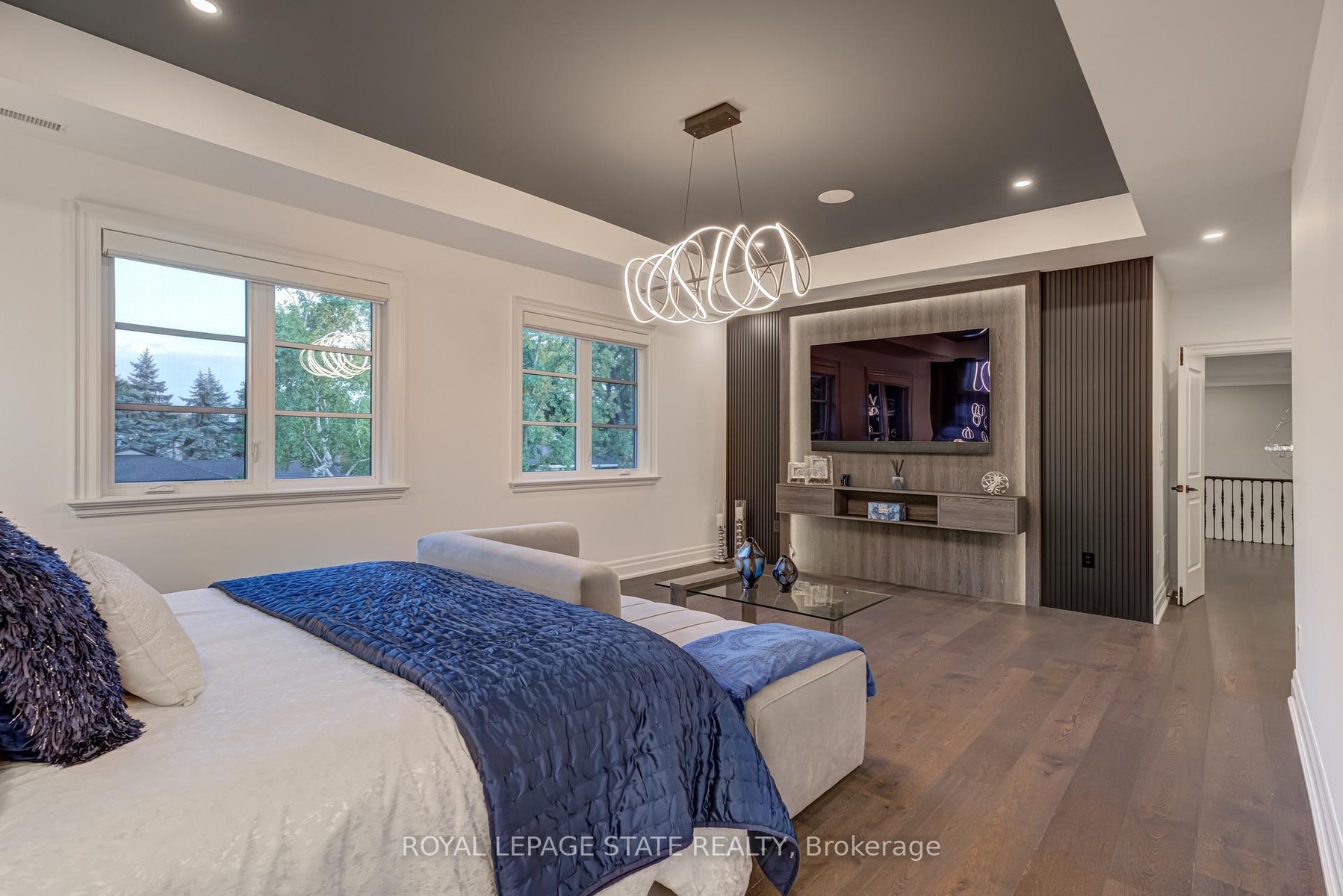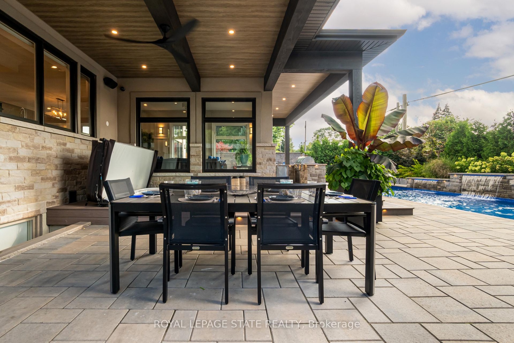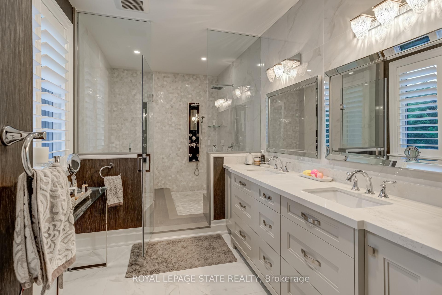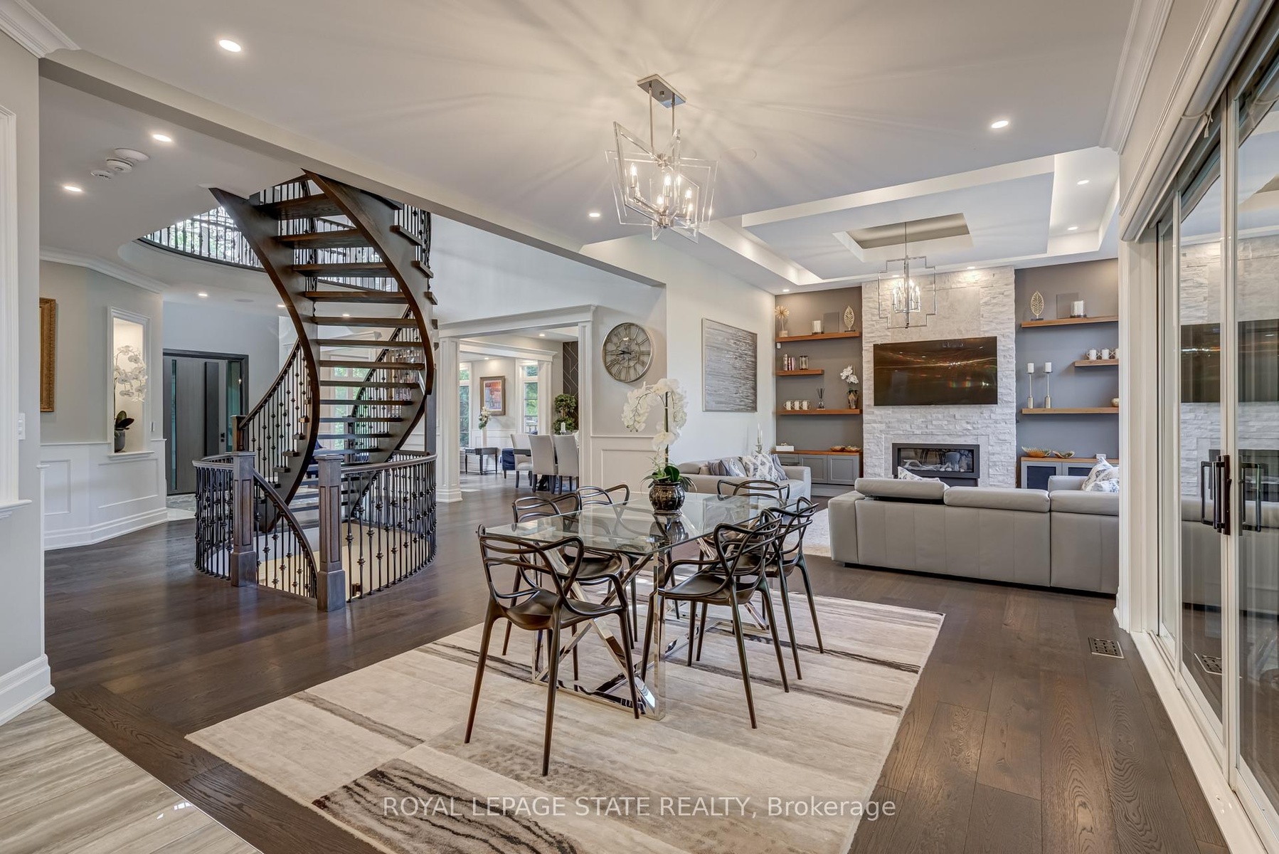 This architectural masterpiece offers 7,000 sq. ft. of luxurious living space with 4+2 bedrooms, 6 bathrooms, an incredible resort-style backyard oasis, and a fully finished basement with separate entrance. Set on an 85 x 135 ft. lot in a mature Ancaster neighbourhood, just one minute to highway access and all Power Centre amenities, this dream home impresses with striking curb appeal, professional landscaping, and an oversized triple garage with 14 ft. ceilings and two car lifts. The grand foyer with a soaring 21 ft. ceiling and curved staircase opens to a sophisticated interior featuring bold millwork, expansive porcelain, and wide-plank hardwood all illuminated by massive windows allowing plenty of natural light. The main level boasts formal living and dining rooms with 12 ft. ceilings, a private office, powder room, mudroom, and a gourmet eat-in kitchen with top-tier appliances. A 4-season sunroom with radiant in-floor heating and a family room with 11 ft. ceiling and stone fireplace create the perfect entertaining spaces. Upstairs, the sensational primary suite includes custom built-ins, spa-inspired 5-piece bath, private balcony, walk-in closet, and a custom dressing room fit for any wardrobe. Three additional bedrooms, all with ensuite baths (heated floors), and bedroom level laundry complete the upper level. The finished lower level offers a recreation area, home theatre, 2 bedrooms, full bath, second laundry, and kitchenette-ideal for family enjoyment or a multigenerational in-law suite. Step outside to a private resort-style retreat with heated saltwater pool (waterfalls, lights, fire features), sunken hot tub, outdoor kitchen with pizza oven, extensive hardscaping, artificial turf, storage shed, and an elite K-Array sound system. Upgrades include Control4 automation, integrated security with cameras, whole-home sound, and dual furnaces, A/Cs, and HRVs for comfort and efficiency. A rare opportunity to own one of Ancaster's most extraordinary residences!