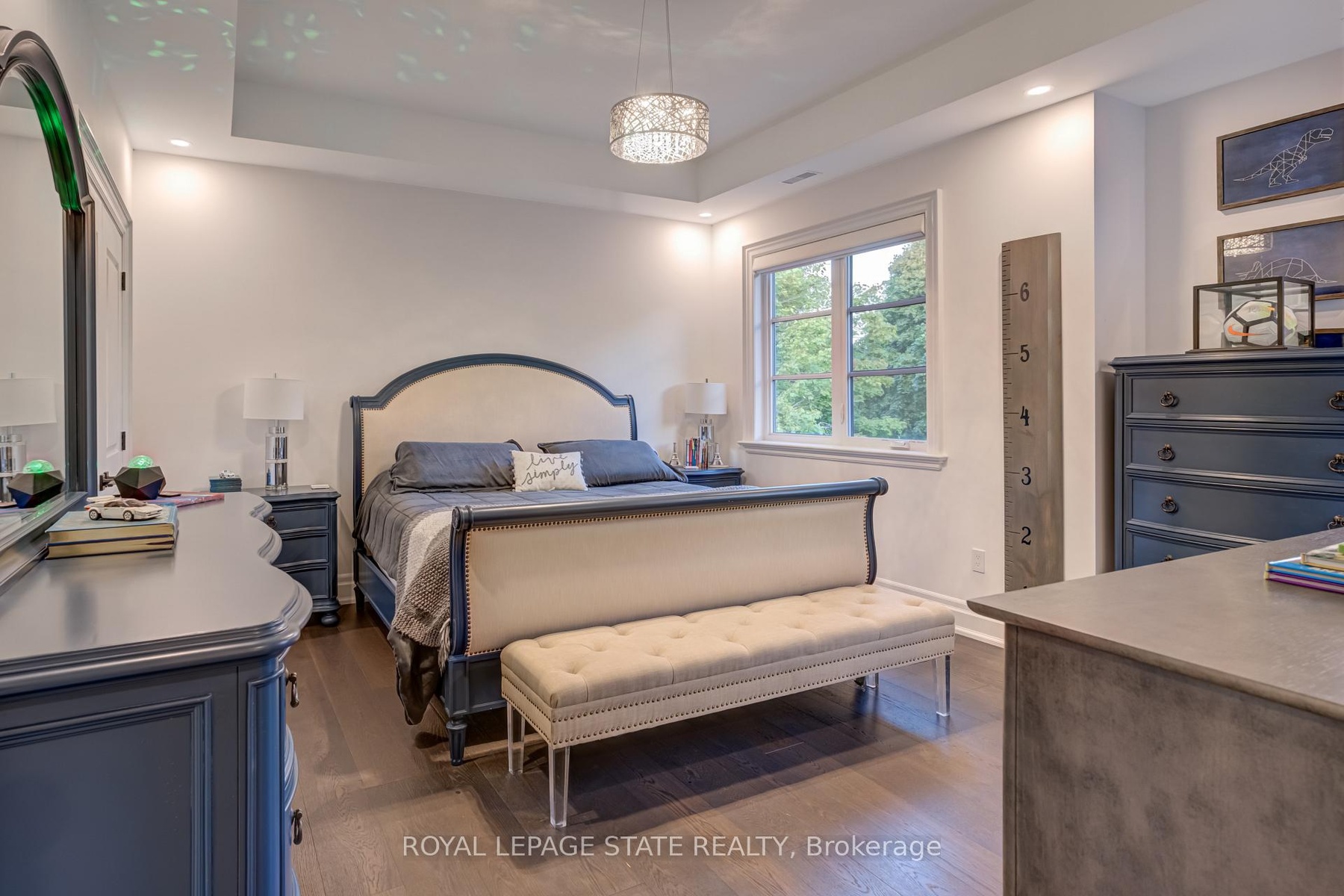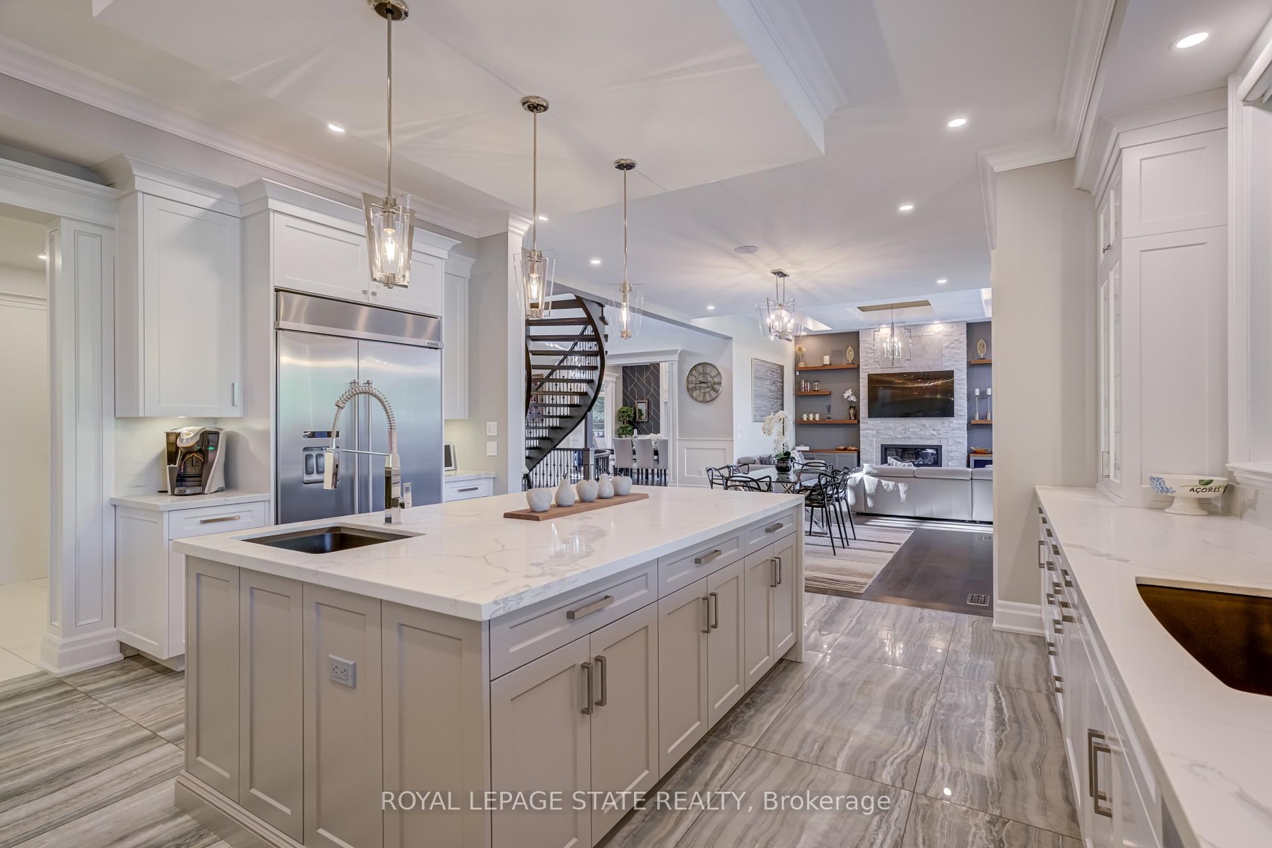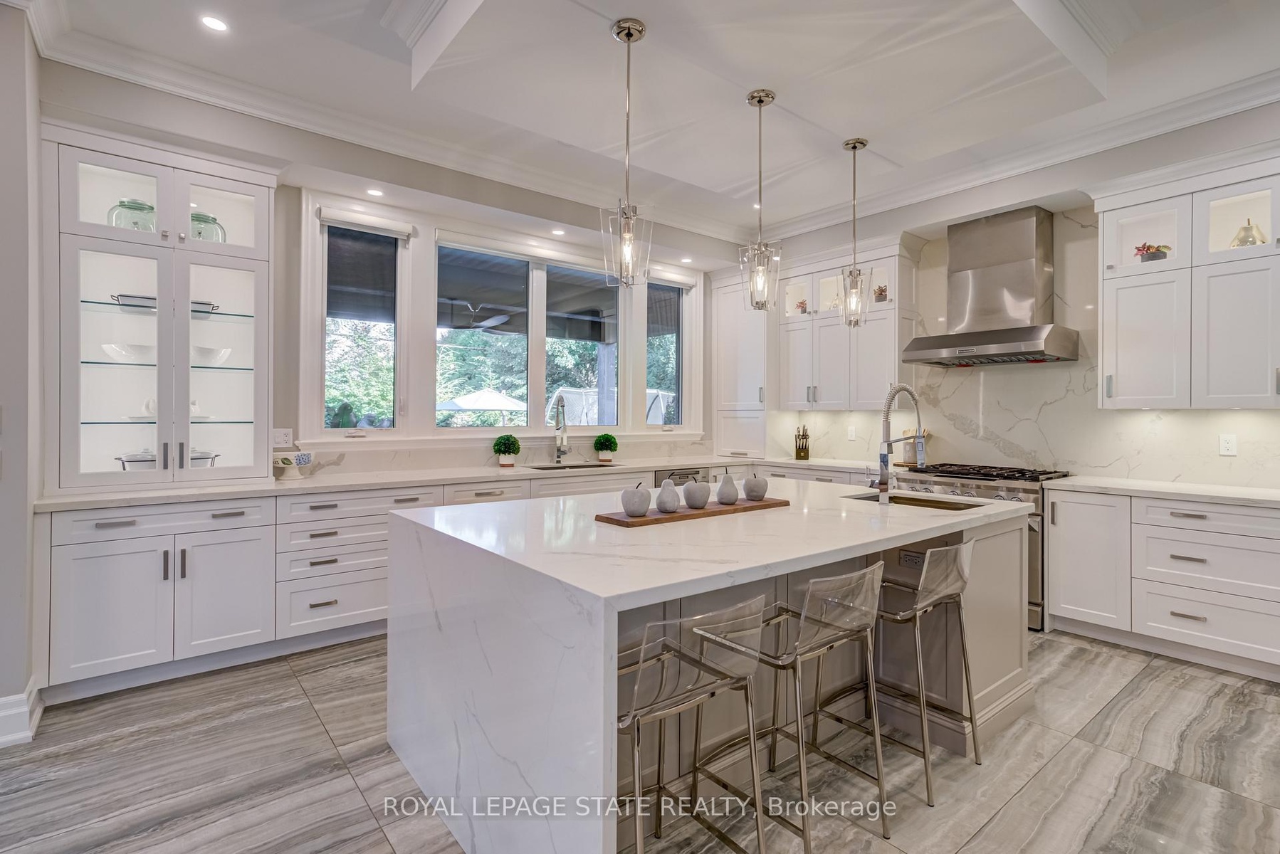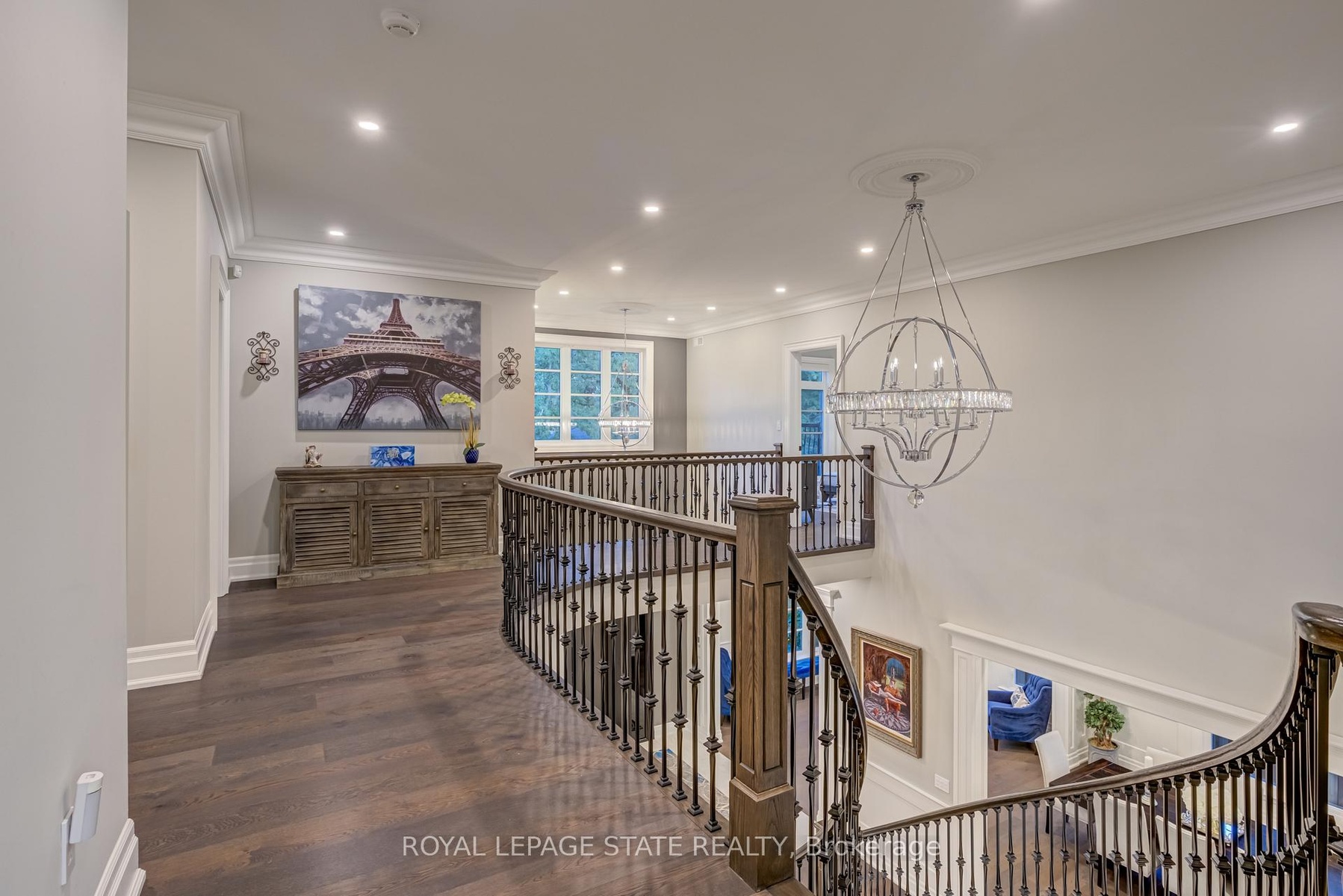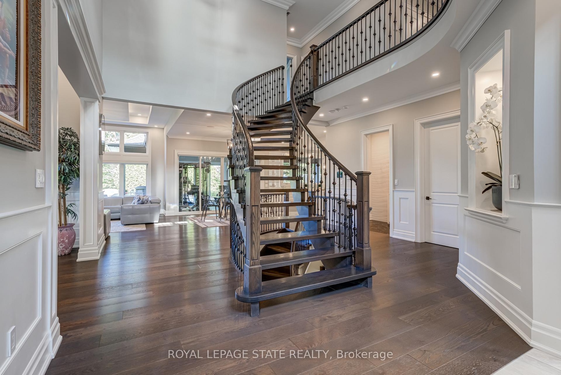 This architectural masterpiece offers 7,000 sq. ft. of luxurious living space with 4+2 bedrooms, 6 bathrooms, an incredible resort-style backyard oasis, and a fully finished basement with separate entrance. Set on an 85 x 135 ft. lot in a mature Ancaster neighbourhood, just one minute to highway access and all Power Centre amenities, this dream home impresses with striking curb appeal, professional landscaping, and an oversized triple garage with 14 ft. ceilings and two car lifts. The grand foyer with a soaring 21 ft. ceiling and curved staircase opens to a sophisticated interior featuring bold millwork, expansive porcelain, and wide-plank hardwood all illuminated by massive windows allowing plenty of natural light. The main level boasts formal living and dining rooms with 12 ft. ceilings, a private office, powder room, mudroom, and a gourmet eat-in kitchen with top-tier appliances. A 4-season sunroom with radiant in-floor heating and a family room with 11 ft. ceiling and stone fireplace create the perfect entertaining spaces. Upstairs, the sensational primary suite includes custom built-ins, spa-inspired 5-piece bath, private balcony, walk-in closet, and a custom dressing room fit for any wardrobe. Three additional bedrooms, all with ensuite baths (heated floors), and bedroom level laundry complete the upper level. The finished lower level offers a recreation area, home theatre, 2 bedrooms, full bath, second laundry, and kitchenette-ideal for family enjoyment or a multigenerational in-law suite. Step outside to a private resort-style retreat with heated saltwater pool (waterfalls, lights, fire features), sunken hot tub, outdoor kitchen with pizza oven, extensive hardscaping, artificial turf, storage shed, and an elite K-Array sound system. Upgrades include Control4 automation, integrated security with cameras, whole-home sound, and dual furnaces, A/Cs, and HRVs for comfort and efficiency. A rare opportunity to own one of Ancaster's most extraordinary residences!
