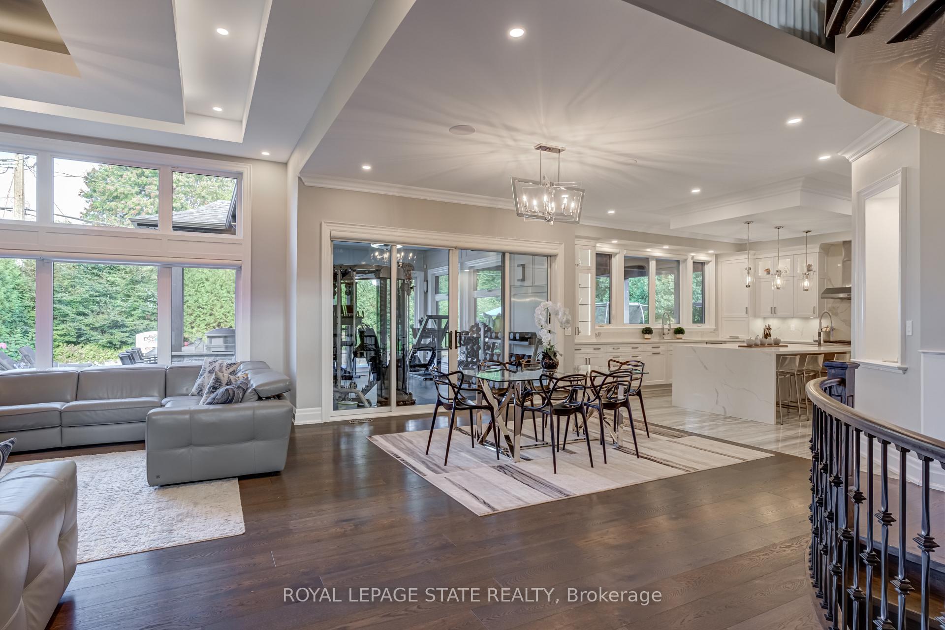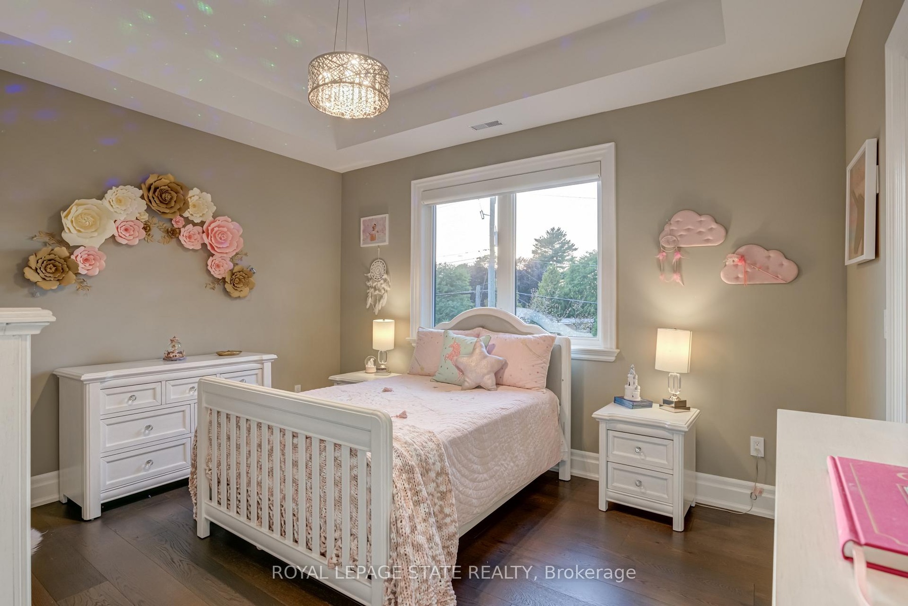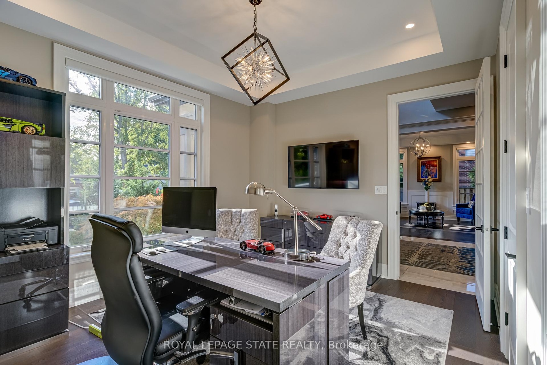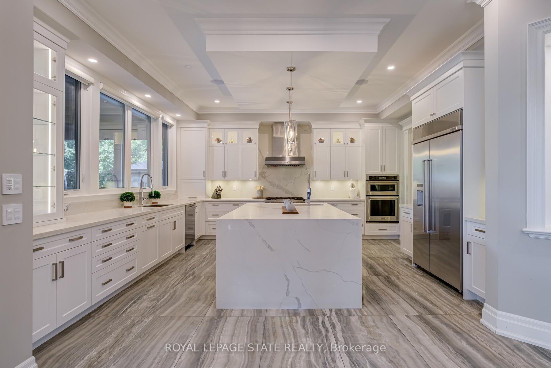 This architectural masterpiece offers 7,000 sq. ft. of luxurious living space with 4+2 bedrooms, 6 bathrooms, an incredible resort-style backyard oasis, and a fully finished basement with separate entrance. Set on an 85 x 135 ft. lot in a mature Ancaster neighbourhood, just one minute to highway access and all Power Centre amenities, this dream home impresses with striking curb appeal, professional landscaping, and an oversized triple garage with 14 ft. ceilings and two car lifts. The grand foyer with a soaring 21 ft. ceiling and curved staircase opens to a sophisticated interior featuring bold millwork, expansive porcelain, and wide-plank hardwood all illuminated by massive windows allowing plenty of natural light. The main level boasts formal living and dining rooms with 12 ft. ceilings, a private office, powder room, mudroom, and a gourmet eat-in kitchen with top-tier appliances. A 4-season sunroom with radiant in-floor heating and a family room with 11 ft. ceiling and stone fireplace create the perfect entertaining spaces. Upstairs, the sensational primary suite includes custom built-ins, spa-inspired 5-piece bath, private balcony, walk-in closet, and a custom dressing room fit for any wardrobe. Three additional bedrooms, all with ensuite baths (heated floors), and bedroom level laundry complete the upper level. The finished lower level offers a recreation area, home theatre, 2 bedrooms, full bath, second laundry, and kitchenette-ideal for family enjoyment or a multigenerational in-law suite. Step outside to a private resort-style retreat with heated saltwater pool (waterfalls, lights, fire features), sunken hot tub, outdoor kitchen with pizza oven, extensive hardscaping, artificial turf, storage shed, and an elite K-Array sound system. Upgrades include Control4 automation, integrated security with cameras, whole-home sound, and dual furnaces, A/Cs, and HRVs for comfort and efficiency. A rare opportunity to own one of Ancaster's most extraordinary residences!
