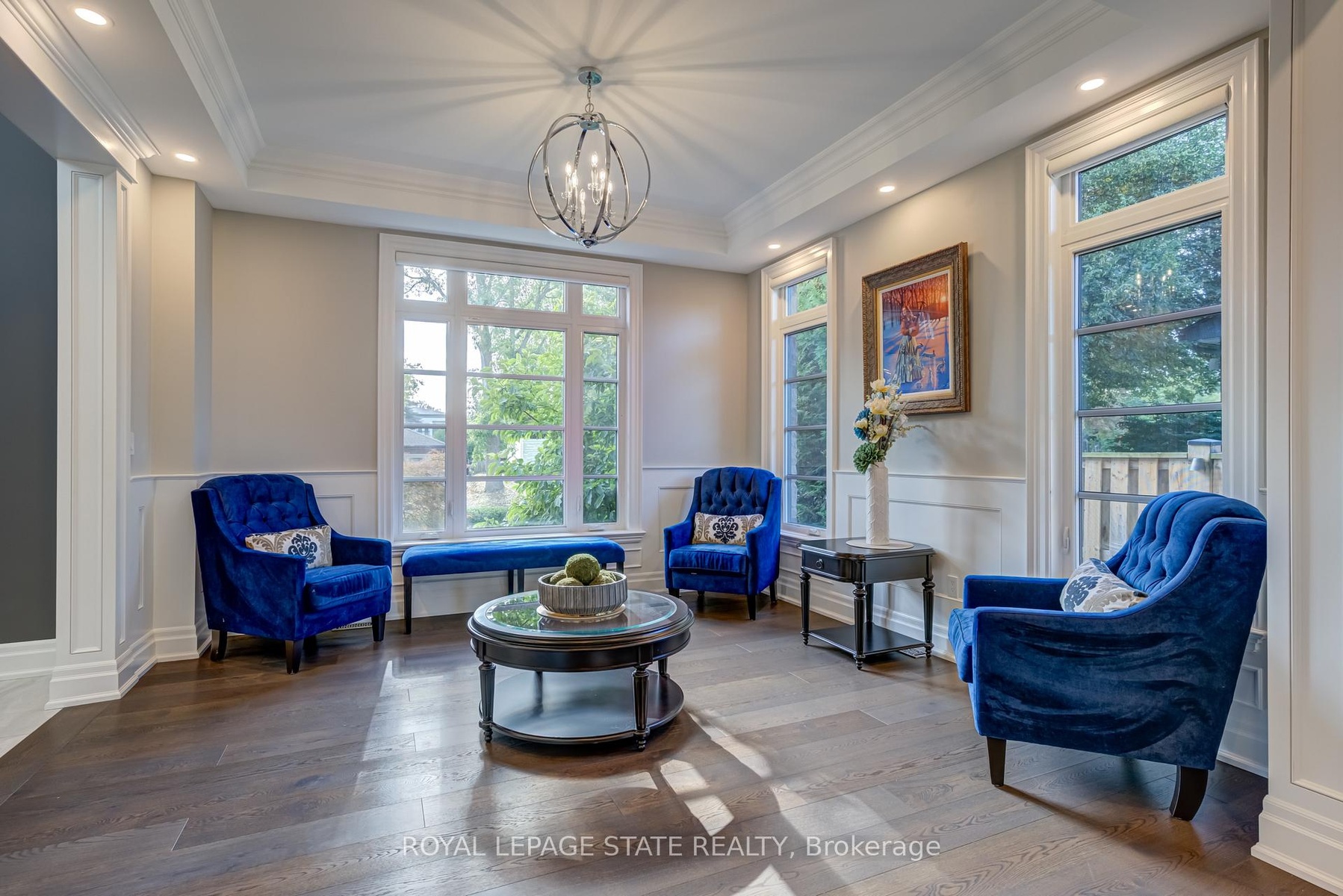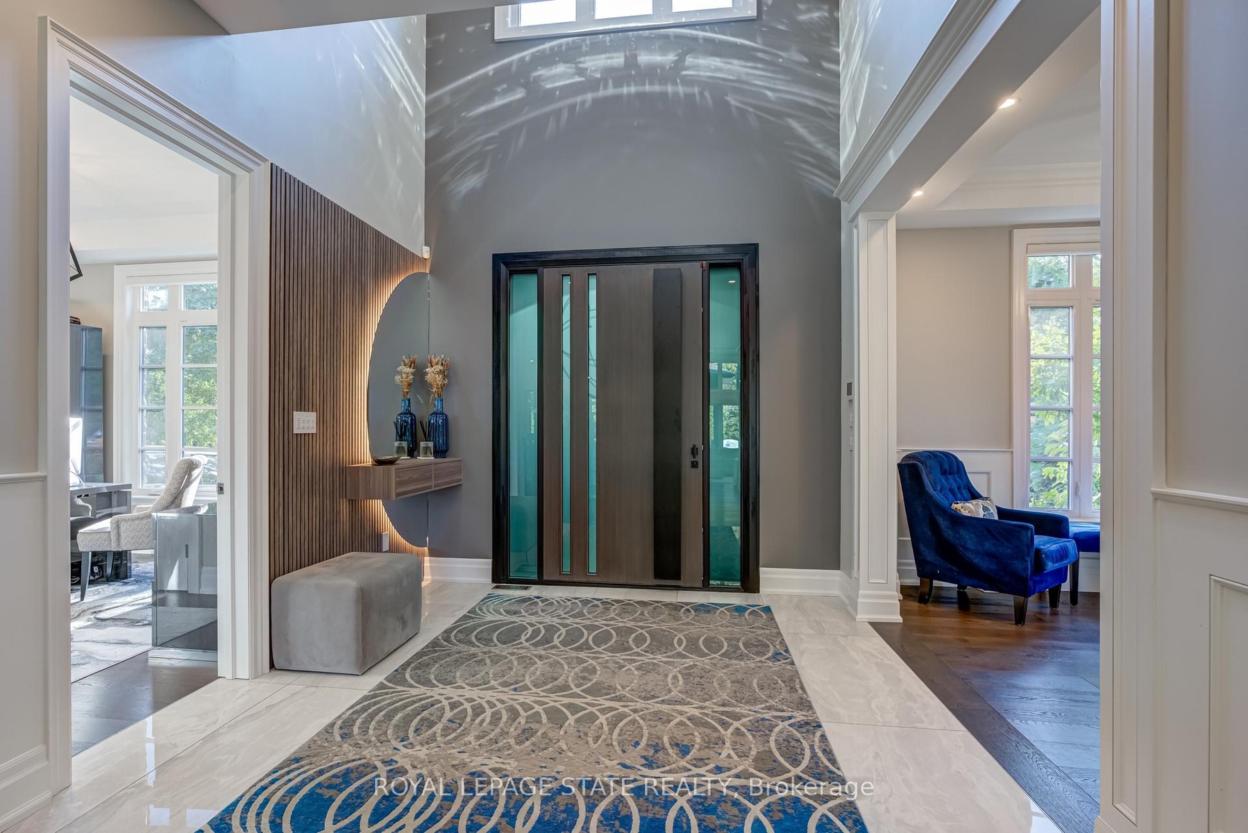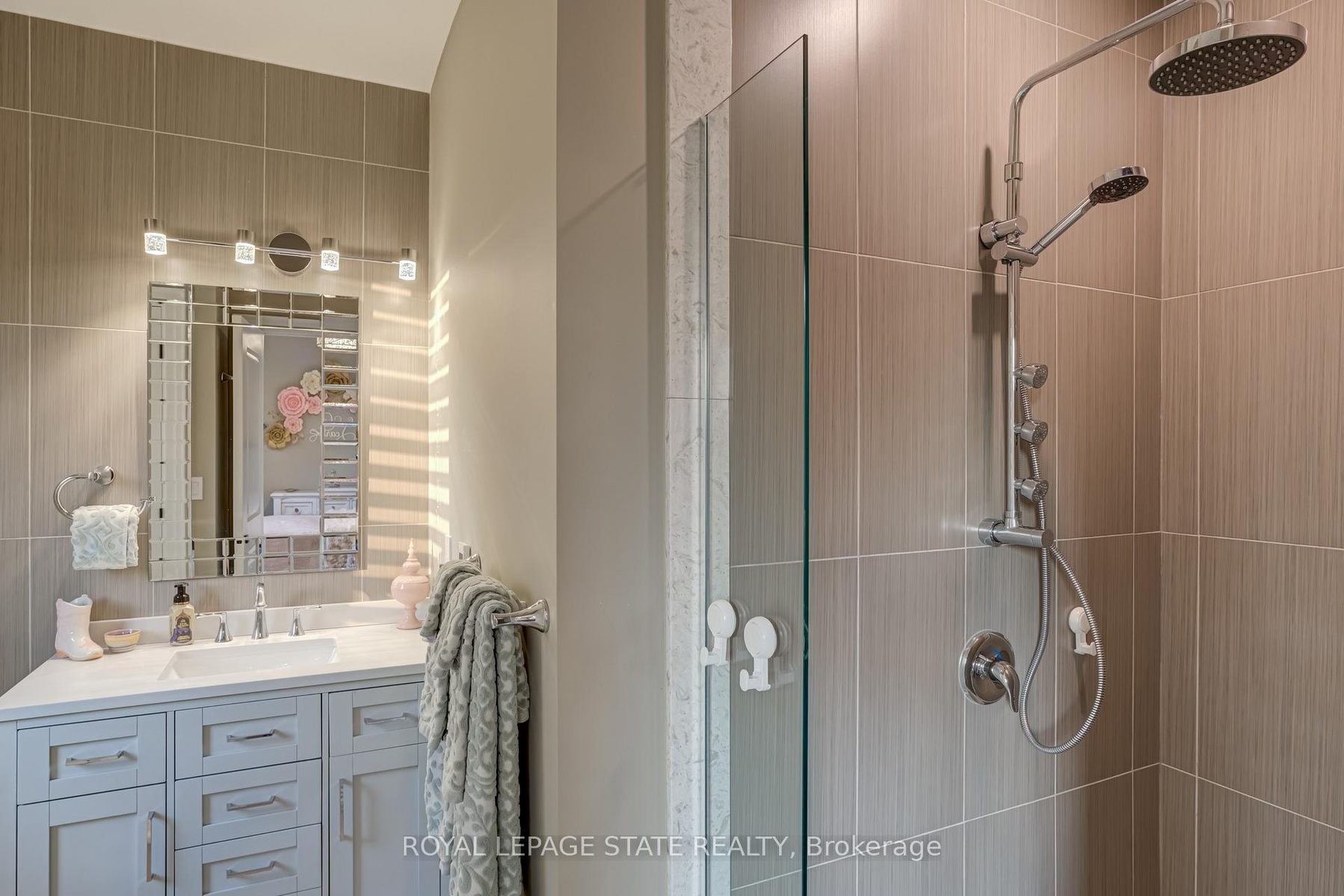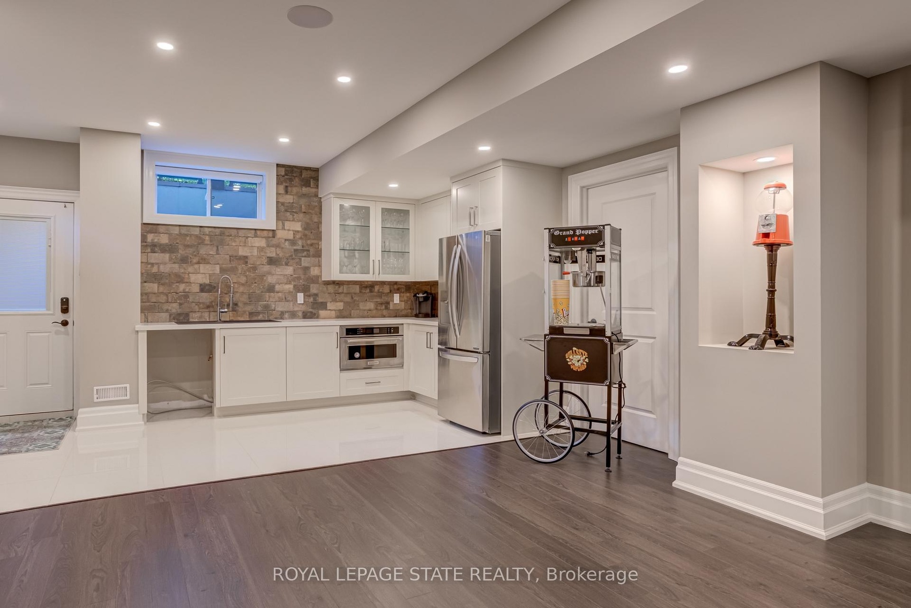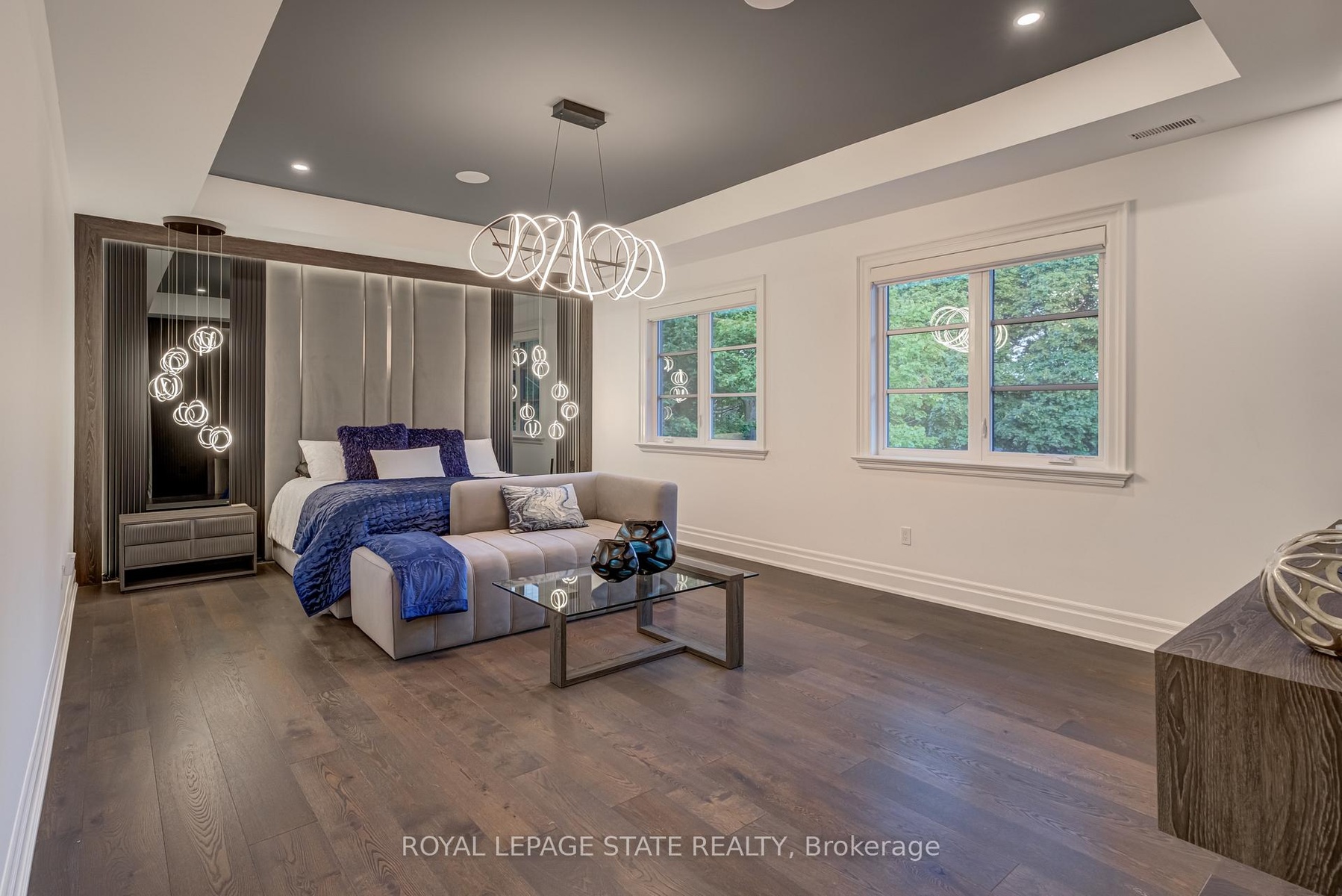 This architectural masterpiece offers 7,000 sq. ft. of luxurious living space with 4+2 bedrooms, 6 bathrooms, an incredible resort-style backyard oasis, and a fully finished basement with separate entrance. Set on an 85 x 135 ft. lot in a mature Ancaster neighbourhood, just one minute to highway access and all Power Centre amenities, this dream home impresses with striking curb appeal, professional landscaping, and an oversized triple garage with 14 ft. ceilings and two car lifts. The grand foyer with a soaring 21 ft. ceiling and curved staircase opens to a sophisticated interior featuring bold millwork, expansive porcelain, and wide-plank hardwood all illuminated by massive windows allowing plenty of natural light. The main level boasts formal living and dining rooms with 12 ft. ceilings, a private office, powder room, mudroom, and a gourmet eat-in kitchen with top-tier appliances. A 4-season sunroom with radiant in-floor heating and a family room with 11 ft. ceiling and stone fireplace create the perfect entertaining spaces. Upstairs, the sensational primary suite includes custom built-ins, spa-inspired 5-piece bath, private balcony, walk-in closet, and a custom dressing room fit for any wardrobe. Three additional bedrooms, all with ensuite baths (heated floors), and bedroom level laundry complete the upper level. The finished lower level offers a recreation area, home theatre, 2 bedrooms, full bath, second laundry, and kitchenette-ideal for family enjoyment or a multigenerational in-law suite. Step outside to a private resort-style retreat with heated saltwater pool (waterfalls, lights, fire features), sunken hot tub, outdoor kitchen with pizza oven, extensive hardscaping, artificial turf, storage shed, and an elite K-Array sound system. Upgrades include Control4 automation, integrated security with cameras, whole-home sound, and dual furnaces, A/Cs, and HRVs for comfort and efficiency. A rare opportunity to own one of Ancaster's most extraordinary residences!