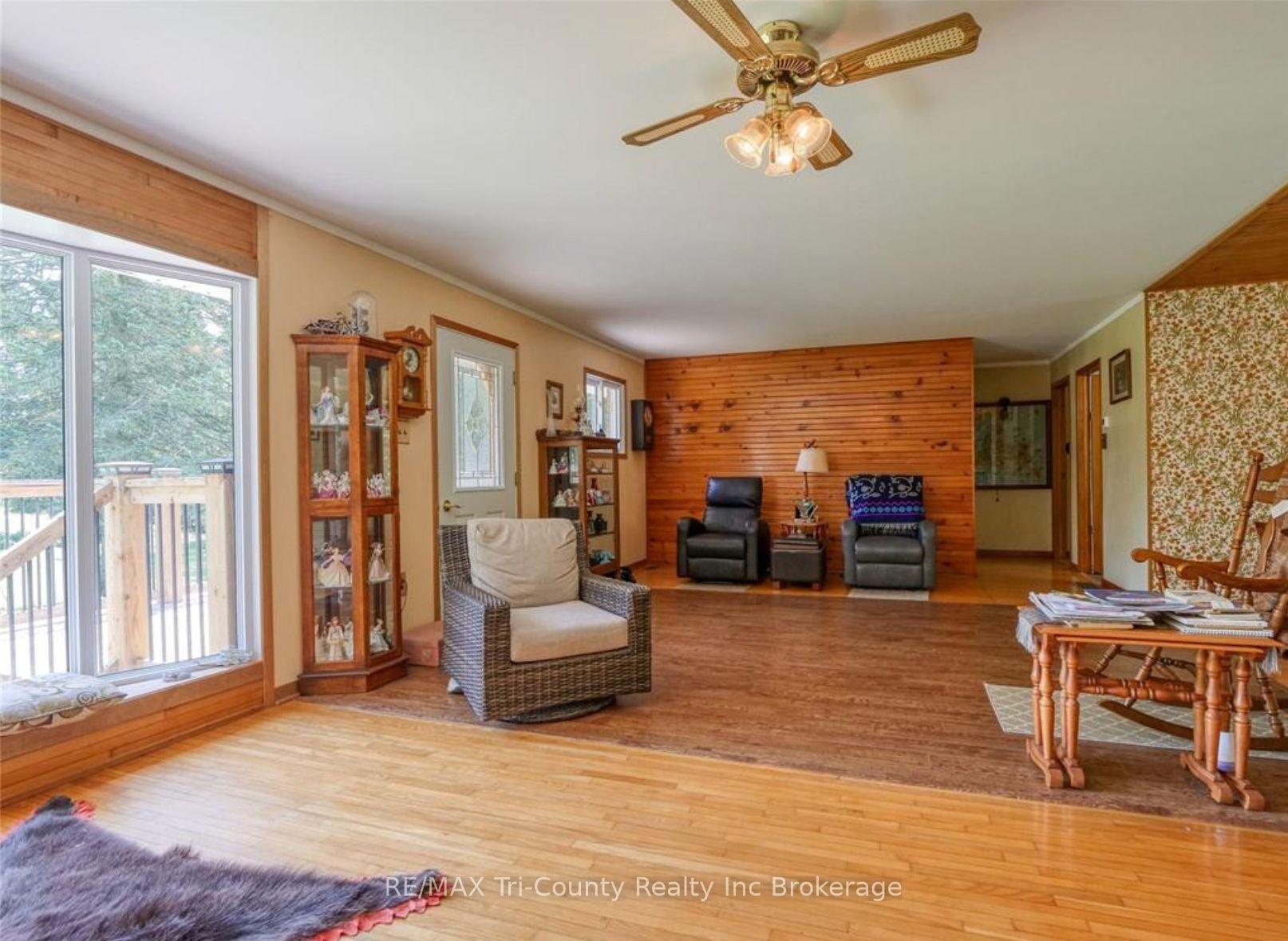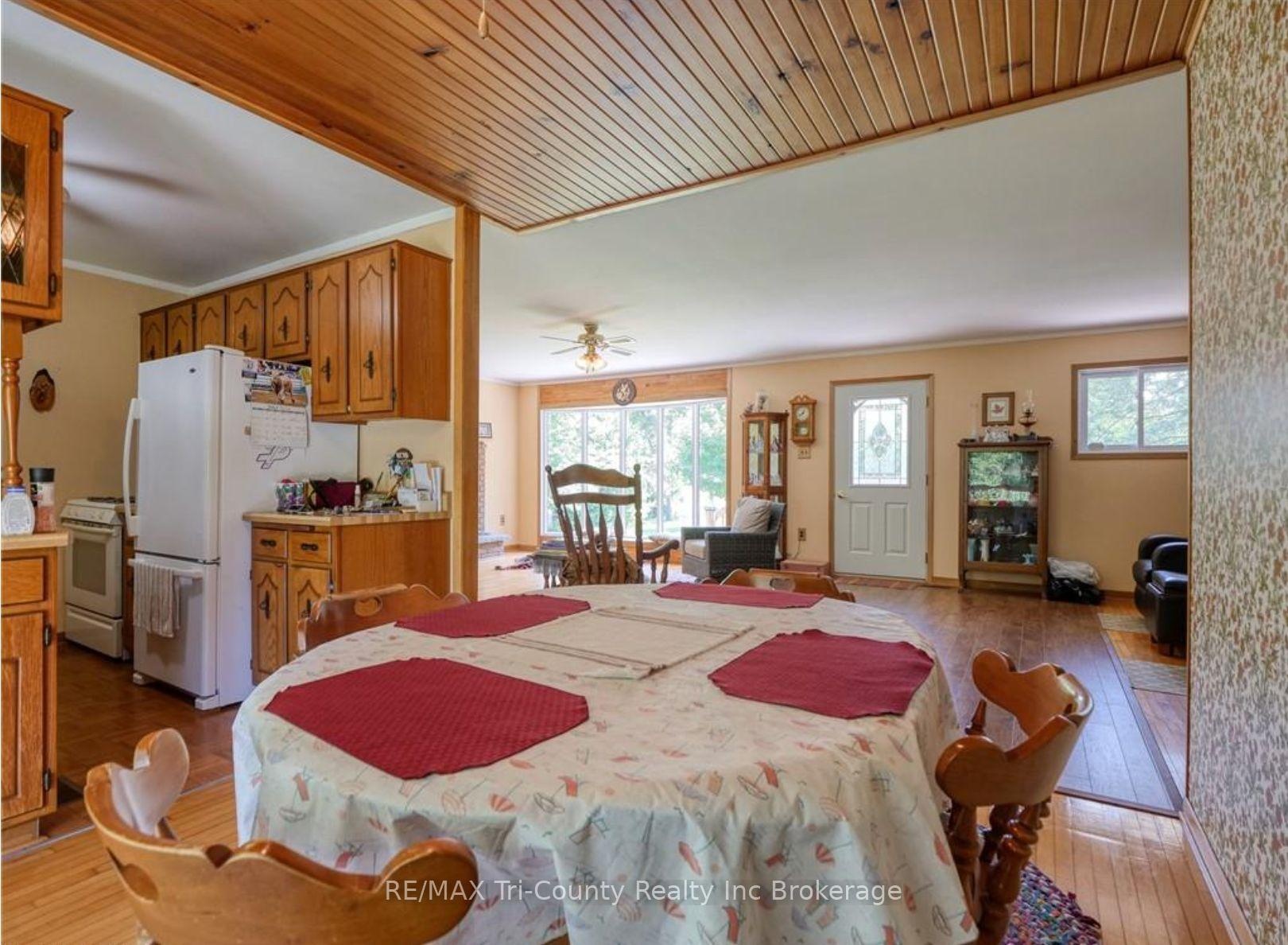 Nestled on a sprawling 49.04-acre lot, this serene property offers a tranquil escape with a wooded backdrop and crop field. Featuring 2 bedrooms and 1 bathroom across a spacious 1614 sq ft layout, this home is uniquely designed for comfort and accessibility. The property highlights include a large fenced-in pasture, a pond, and extensive outdoor living spaces, a 10x28 ft front porch and a covered 10x22 ft back deck with walkout patio doors from the dining area, perfect for entertaining or peaceful evenings. Outside you will also find a large garage, a workshop and a couple sheds. The home is well-equipped with both a gas stove and an outlet for an electric stove. The walkout basement opens onto a covered patio and boasts in-law suite capabilities, adding flexibility to the living space. Accessibility is thoughtfully addressed with a wheelchair-friendly 3-ft wide front entrance door. For those seeking a quiet life in harmony with nature, this property is an ideal choice. Listed for sale, it's ready for you to call it home.