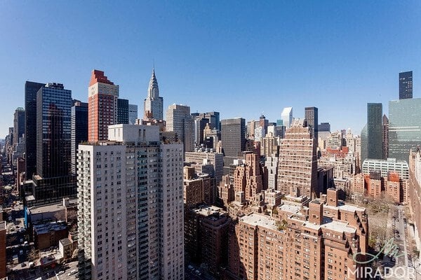 New York Tower is a 38-story luxury high-rise at 330 East 39th Street in Murray Hill, exclusively represented by Mirador Real Estate. The building comprises 510 rental apartments, many with large private balconies offering impressive East River and Manhattan skyline vistas. There is a 24-hour doorman as well as concierge services. Amenities are complementary to residents and include a gym, lounge, and outdoor deck furnished by Restoration Hardware. The hallways were beautifully remastered in 2015. Parking and bike storage is available for an additional fee.