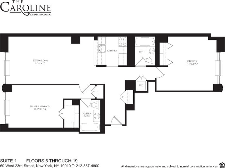 The Caroline, designed by Richard Cook and Costas Kondylis, is a beautifully appointed, 22-story white-glove residence in close proximity to Madison Square Park, at the intersection of New York Citys vibrant Chelsea and Flatiron neighborhoods. Each home features open living spaces with abundant closets, oversized windows, marble bathrooms, and generously laid out kitchens with full-sized stainless steel appliance packages, granite countertops & floors. Select residences feature 10-foot ceiling heights, walk-in closets, floor-to-ceiling windows, private terraces, washer/dryers, strip hardwood flooring, and NEST climate control systems. Extra care was put into soundproofing wall and floor insulation during construction.