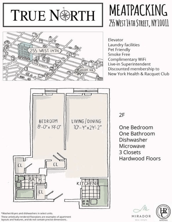 True North Meatpacking, located at 255 West 14th Street, is located steps from the West Village, Chelsea, and the Meatpacking district. The 6-story 1930s elevator building underwent a complete upgrade, including a new in-building gym, Virtual Doorman system, complimentary WiFi, video intercoms, and keyless Latch entry. Most apartments now boast elegant modern design features.