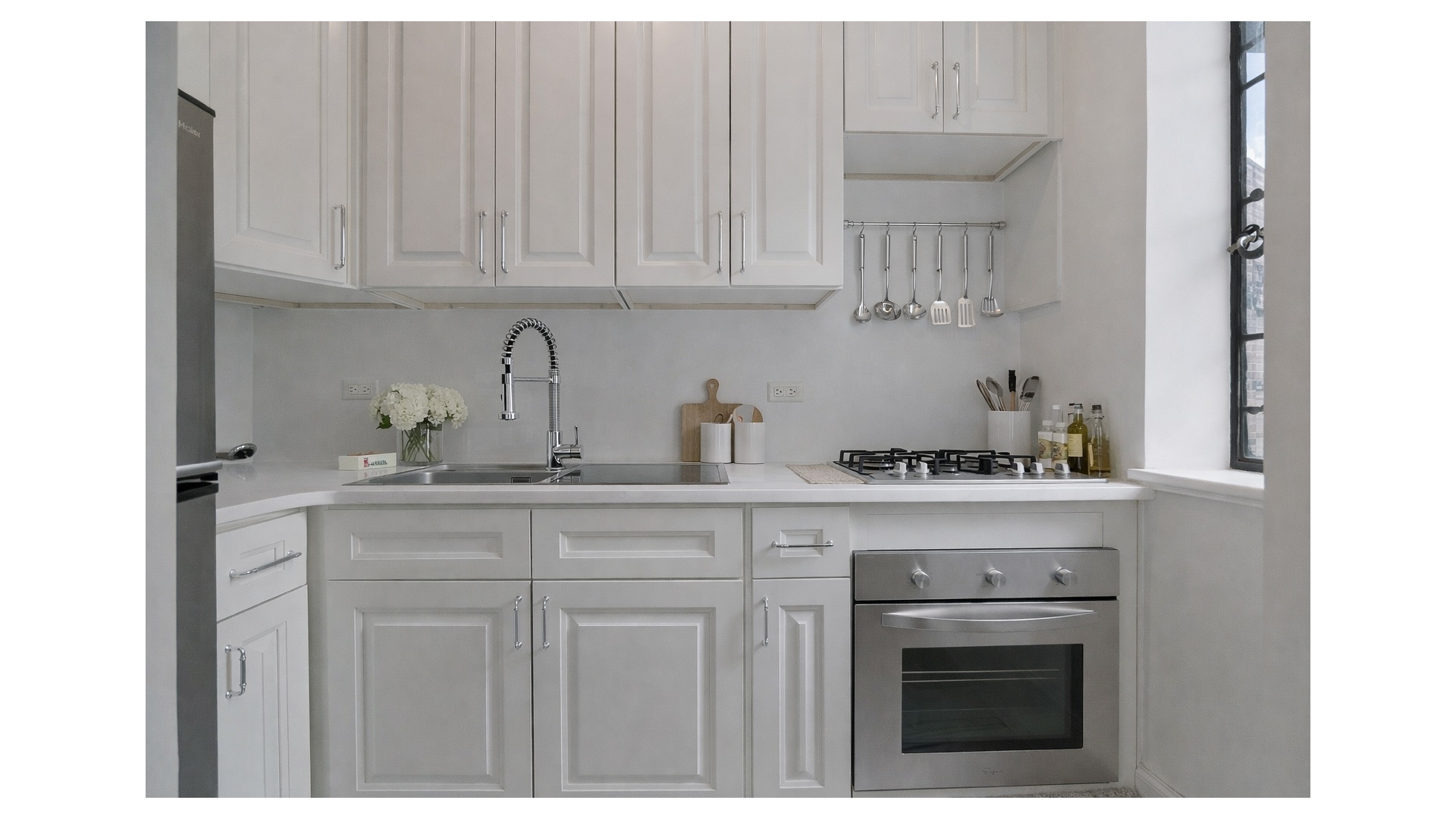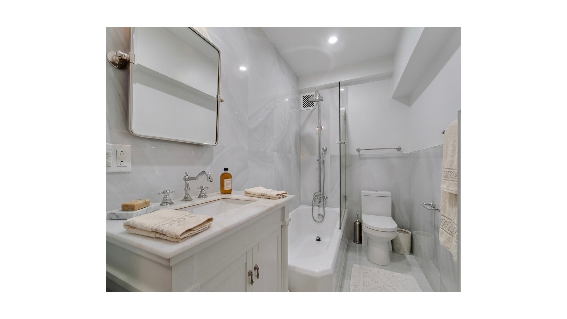 This residence masterfully blends classic architectural details with contemporary upgrades. The heart of the home is a gut-renovated kitchen featuring refined cabinetry and a 3-in-1 dishwasher, complemented by a sleekly renovated bathroom with a polished vanity and a glass-enclosed shower. Throughout the unit, soaring ceilings and rich hardwood floors frame a flexible layout that effortlessly balances style and functionality.