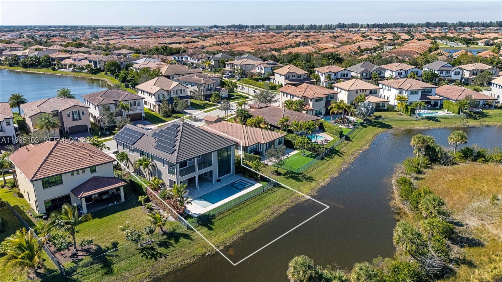 Extraordinary design and attention to detail define this 5-bedroom, 5.5-bath home with an enclosed theater/game room. The expanded Strathmore model features a charming European Cottage stone elevation. Walls of windows fill the home with natural light, showcasing unobstructed waterfront views and a serene nature preserve. Soaring ceilings, a dramatic staircase, and rich hardwood and porcelain flooring enhance the elegant interior. The sophisticated gourmet kitchen offers high-level cabinetry, quartz countertops, double ovens, a gas range, and an oversized island, along with a built-in buffet and wine refrigerator in the dining area. Two en-suite bedrooms are located on the first floor. The primary suite features a private balcony and opens to a travertine patio, lanai, and heated pool and spa. Resort lifestyle living at its finest. Parkland’s “A-rated” schools.