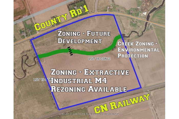 What a great opportunity! Zoned Future Development and M4 Extractive Industrial, the property is just over 88 acres and has a beautiful creek running through it, it has large deposit of clay on the back part of the property that could be sold before development. Being situated on County Road 1, just across from the end of Jim Kimmett Blvd. the property would be great for a housing development or commercial establishment.