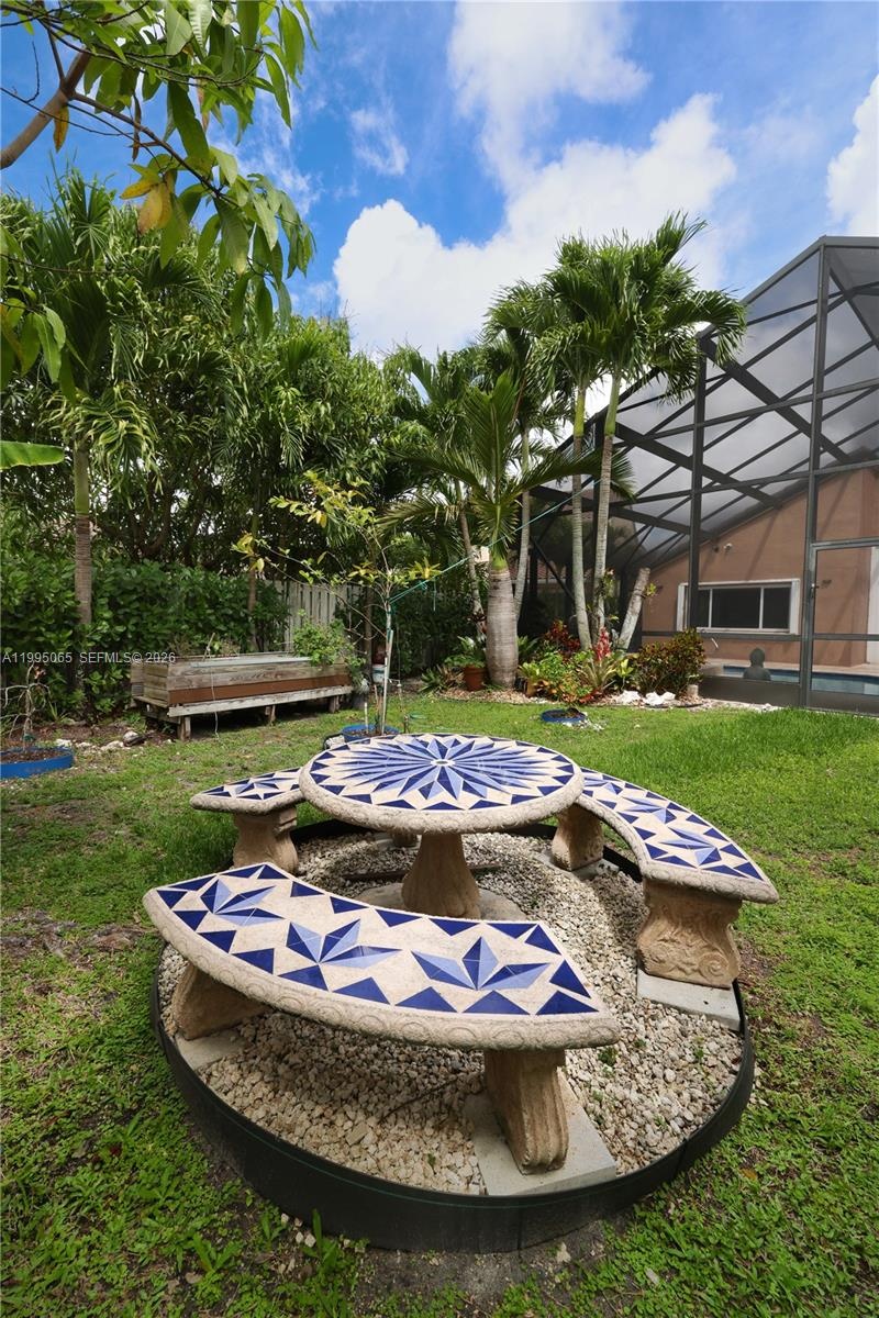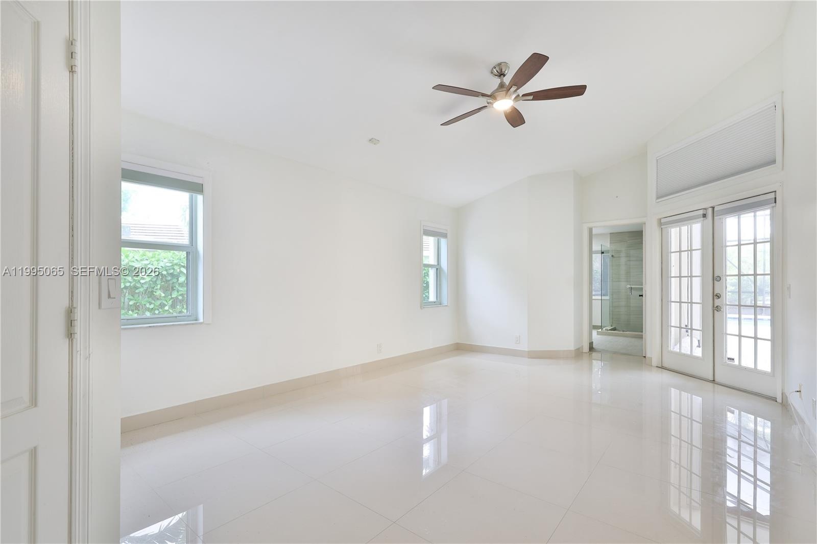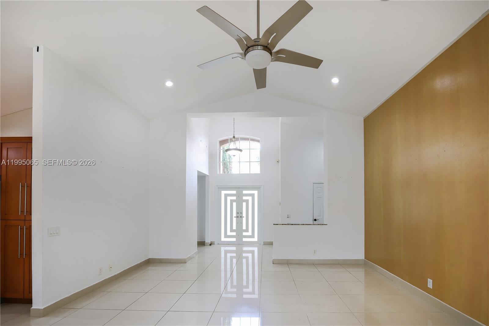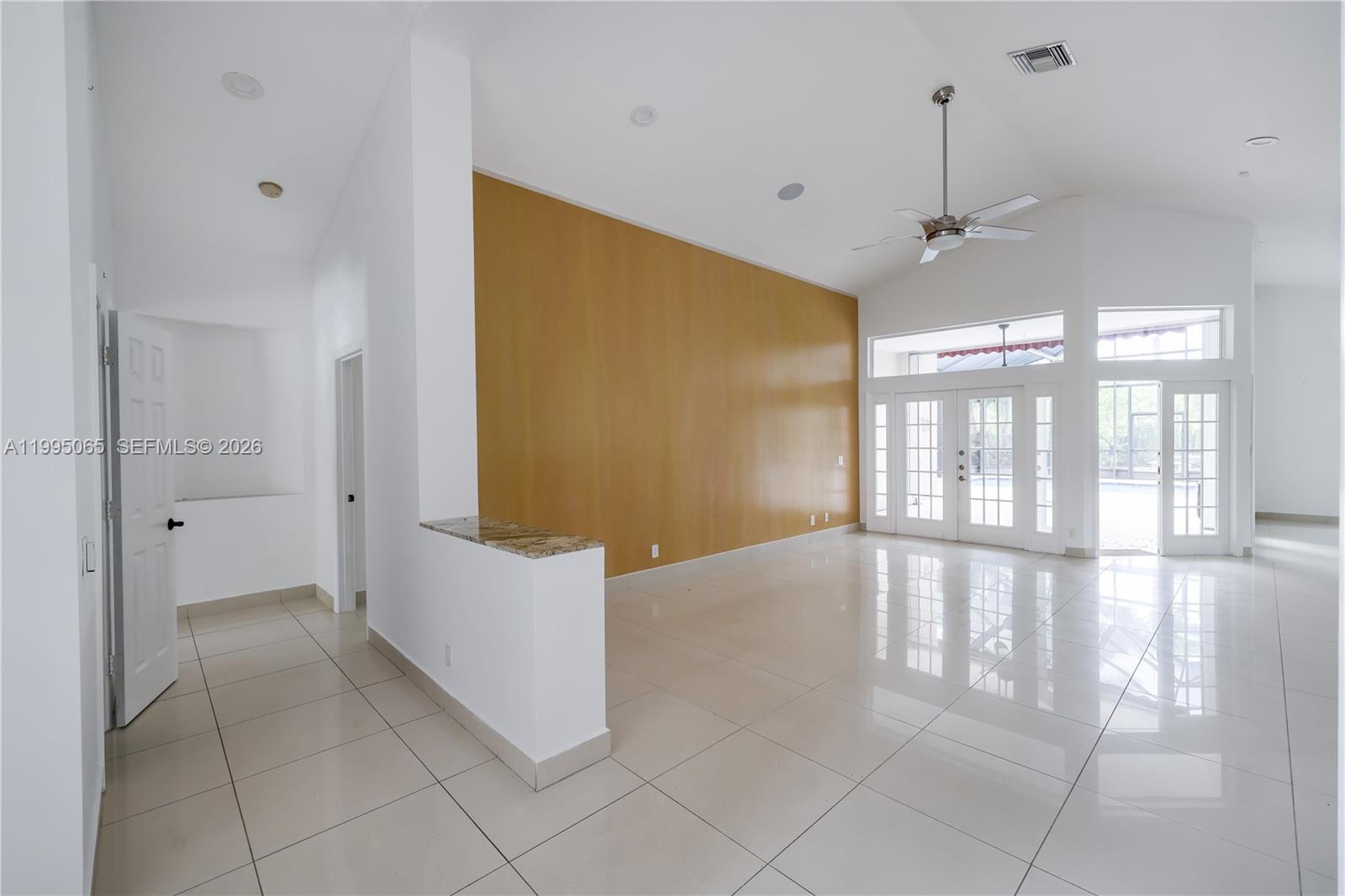 Featuring porcelains floors throughout & remodeled bathrooms, this home boasts a spacious, light-filled open layout with high-volume ceilings. The open kitchen overlooks the pool and includes new granite countertops and stainless steel appliances, ideal for everyday living and entertaining. The primary suite offers a walk-in closet with custom cabinetry. Enjoy outdoor living with a generous patio, a 33’ x 16’ cool and heated pool, and an in-ground spa, surrounded by lush landscaping.