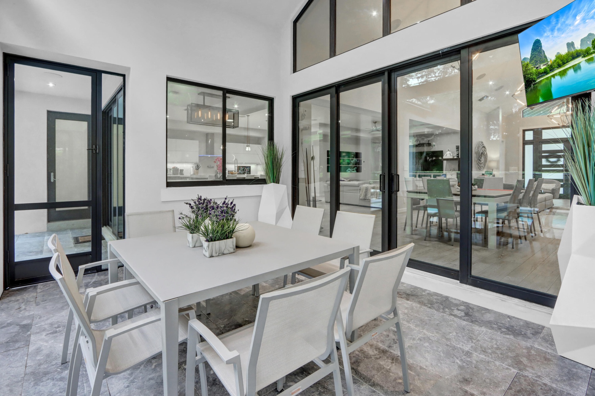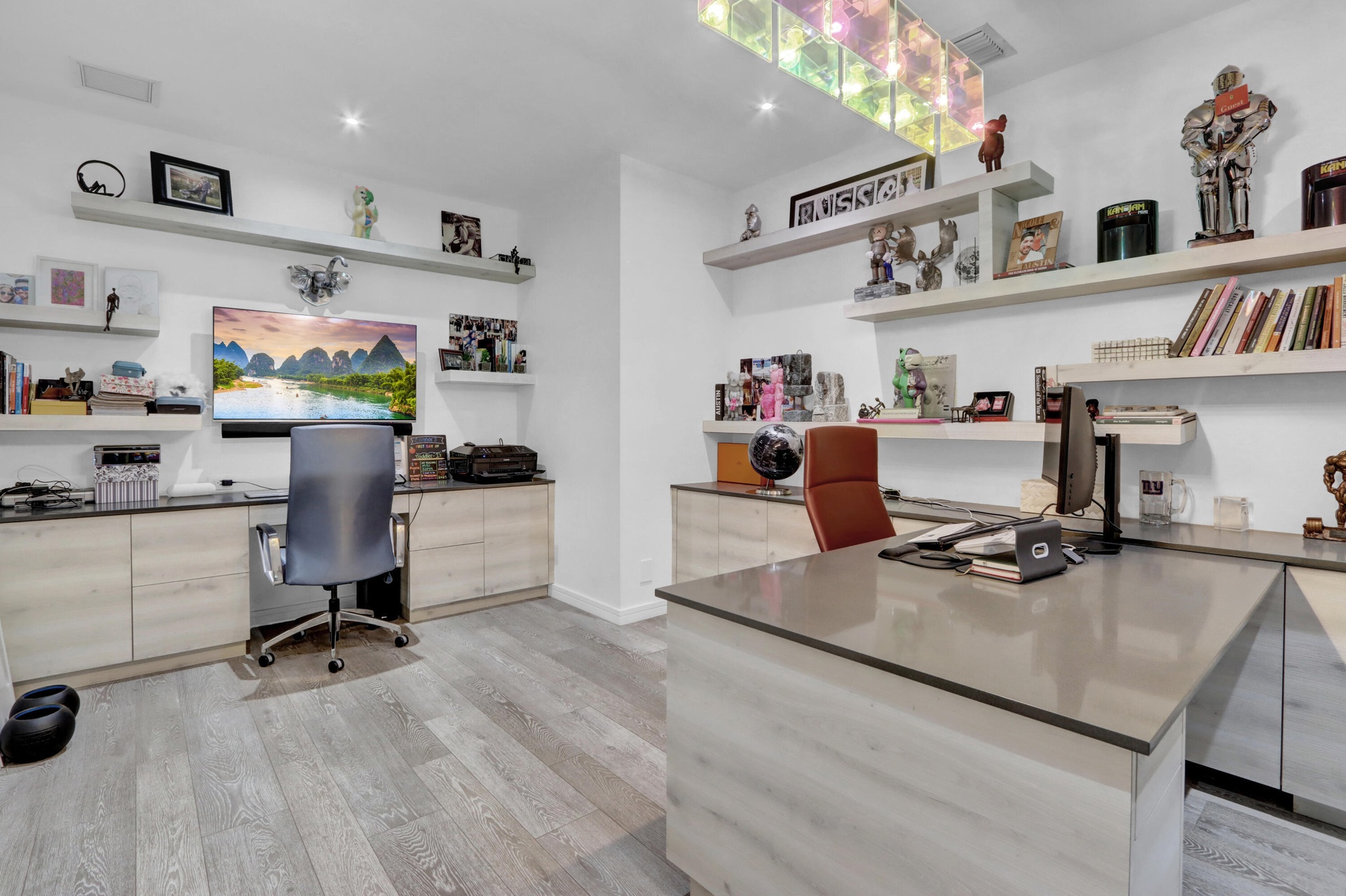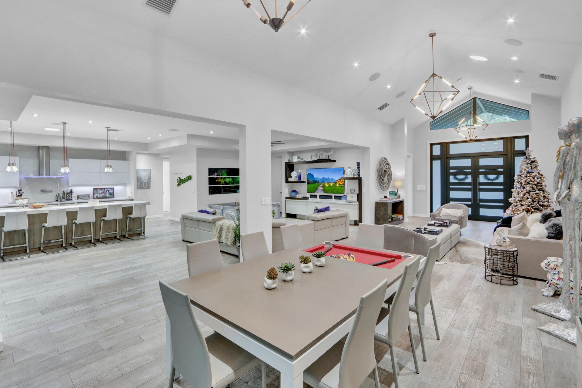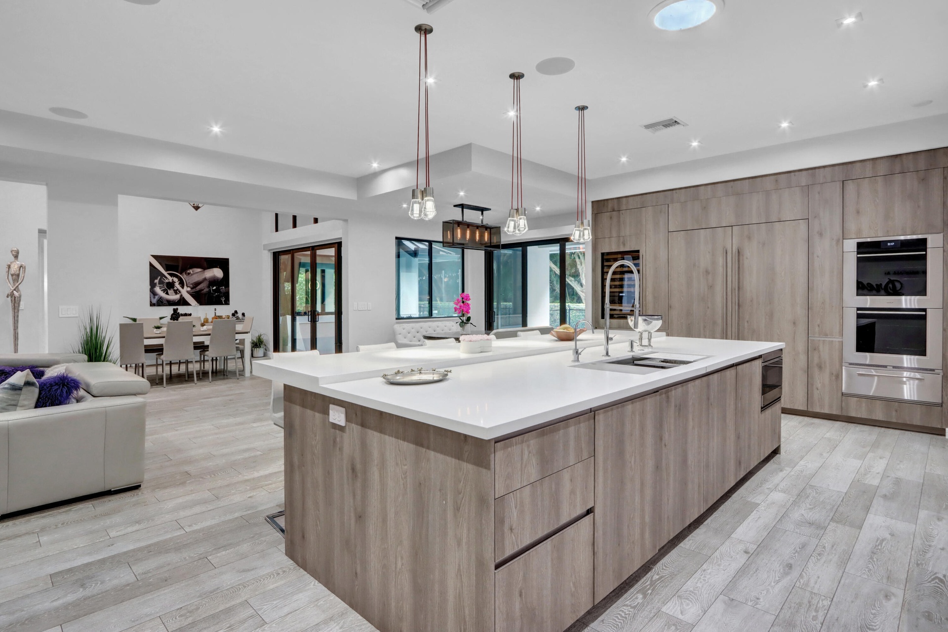 Introducing a sophisticated sanctuary of style! A circular driveway leads to this distinguished residence boasting the finest finishes with 5 bedrooms,office & 4 Â1⁄2 baths. This spectacular home offers wood-grain porcelain floors;volume ceilings with LED lights & Heos audio system;flat wall & ceiling finish;8' solid core custom doors; smart home system for lighting, thermostats, garage door, A/C & ring doorbell;central vacuum system;custom closets. The fabulous gourmet island kitchen offers porcelanosa self-close European cabinetry with roll-outs, Caesarstone counters, porcelain tile backsplash, high-end appliances, wine refrigerator,pot filler, double oven & warming drawer. Contemporary built-in Family room entertainment center.The office has custom built-in desks,cabinets & shelves.