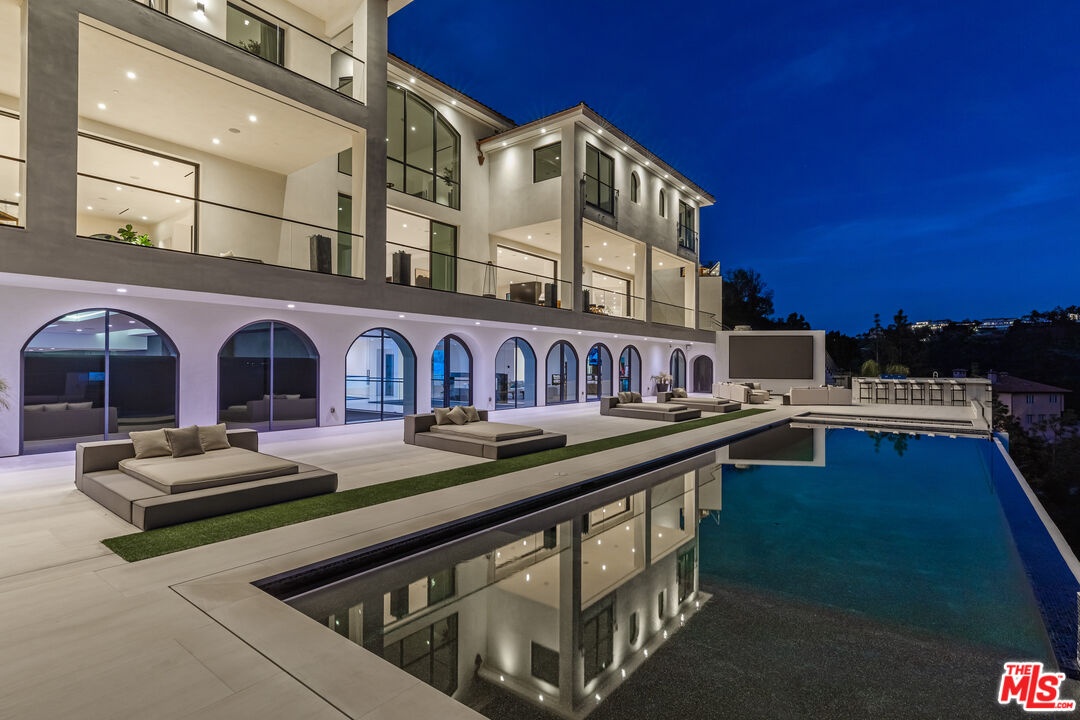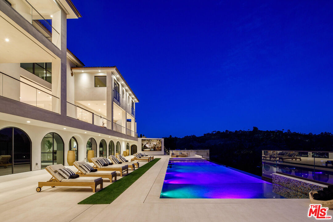 Rising above the Hotel Bel Air in the heart of the most exclusive neighborhood in the world, The Estate on Somma is a modern Spanish Revival masterpiece that redefines luxury living. Undoubtedly one of the most spectacular private residences in the world, this masterfully constructed work of art spans 40,000 square feet and features 8 bedrooms, 21 bathrooms, and an endless array of awe-inspiring amenities. Impressive and unforgettable, this extraordinary estate encompasses a private oasis that fulfills every desire for luxury. Neighbors include some of world's most famous and accomplished icons, however, The Estate is undoubtedly the Star of the neighborhood. Proving the developer's commitment to excellence, 15,000 square feet was acquired from the neighbor to redesign the approach completed end of 2023. In fact, every detail of this majestic mansion was carefully considered to deliver a life of luxury beyond compare. Upon entering, the grand scale and panoramic views will take your breath away. A sweeping staircase winds down like a sculpture and evokes a feeling of power and prominence. Floor to ceiling glass pocket doors frame panoramic views and flood the open floor plan with light and warmth. Luxurious details are mesmerizing and revealed at every turn. A chef's dream kitchen stuns with arched windows, high-end appliances, St. Laurent marble, and a massive island. Large scale living rooms have soaring ceilings and dramatic floor to ceiling windows that reveal bird's-eye views of the Bel Air landscape. Friends and family will cherish an invite and can be comfortably hosted in 8 large and luxurious bedrooms. Defining entertainer's dream, The Estate features amenities that rival the finest resorts in the world including a 36-person theater, multiple kitchens, eight bars, a professional basketball court, 1200+ bottle wine cellar with a wine tasting room inside & above and recording studio. A monumental auto gallery is incredible, and custom designed to showcase an entire car collection. The luxurious wellness center astonishes with a 75' indoor pool, sauna, steam room, hair salon and fitness studio. Outdoors, park-like grounds feature multi-level terraces, a jaw-dropping infinity edge pool/spa, weather-proof Samsung sign wall, and a kitchen for entertaining. No expense was spared to deliver this legacy property to the most discerning buyer. The floors have been newly sanded and stained, and the addition of a beautiful portico by the pool elevates the outdoor living experience. Technologically advanced smart home system w/ dual ISP's and a state-of-the-art security system that provides safety and convenience. With ample accommodations for staff including maid's quarters, and a security room, this extraordinary estate is nothing short of legendary. LLA completed in 2023 lot is over 73,000 sf.