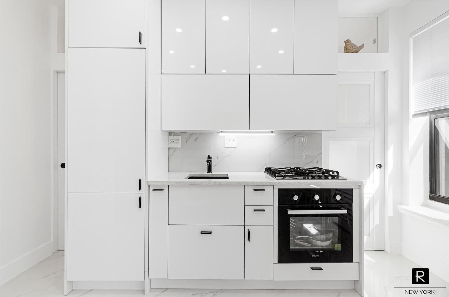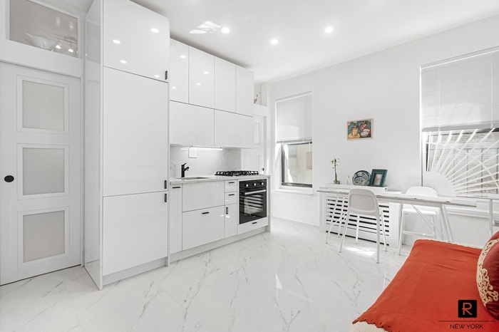 This must see 3-room corner unit on the Penthouse level is silent, features five windows, floods with natural light throughout the day, and is the only unit in the building which has been meticulously gut renovated down to the studs including white stone flooring in every room, and thoughtful overhead lighting. Every inch touched with a modern brush making this home beyond compare and a must see for qualified buyers.