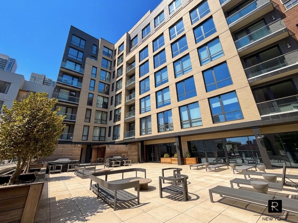 Residents enjoy a boutique condominium lifestyle complemented by an exceptional suite of amenities, including a stunning rooftop terrace with sweeping views of the Lower Manhattan and Downtown Brooklyn skylines, as well as Queens Boulevard. The building also offers an elegantly appointed resident lounge with a TV, pool table, and catering kitchen; a business center with a glass-enclosed conference room; and a state-of-the-art fitness center featuring Precor equipment, free weights, and dedicated training areas.