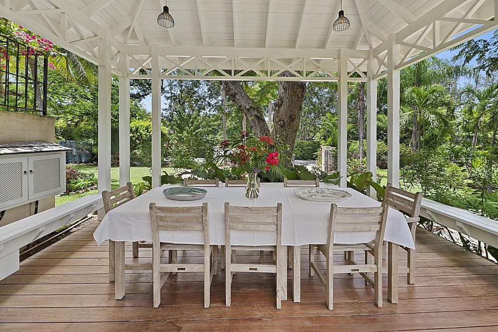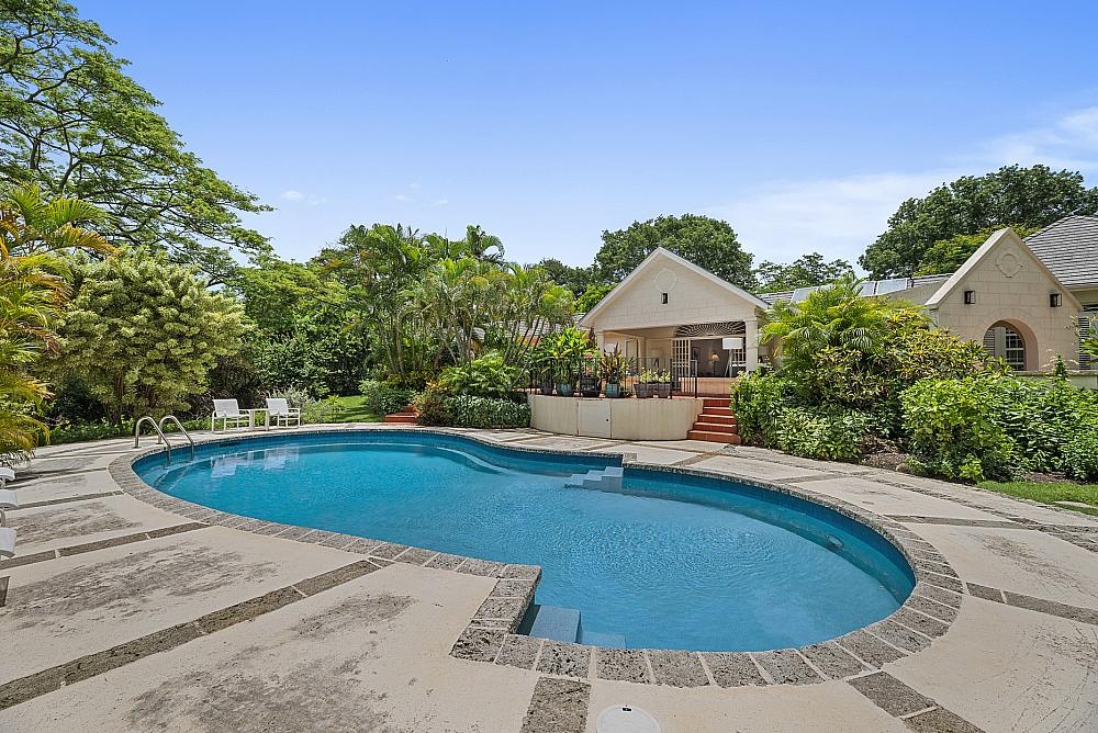 The Private Client Group proudly presents this refined single-level estate set within 1.33 acres of lush tropical gardens in the prestigious Sandy Lane Estate, one of Barbados’ most internationally recognised residential addresses. Bordering the 6th green of the Sandy Lane Old Nine golf course, this elegant property offers a rare combination of privacy, natural beauty, and enduring West Coast value. The main residence is designed for effortless indoor–outdoor living. A contemporary eat-in kitchen connects seamlessly to a large outdoor dining gazebo, while the spacious living area opens onto a verandah, open patio, and pool deck.