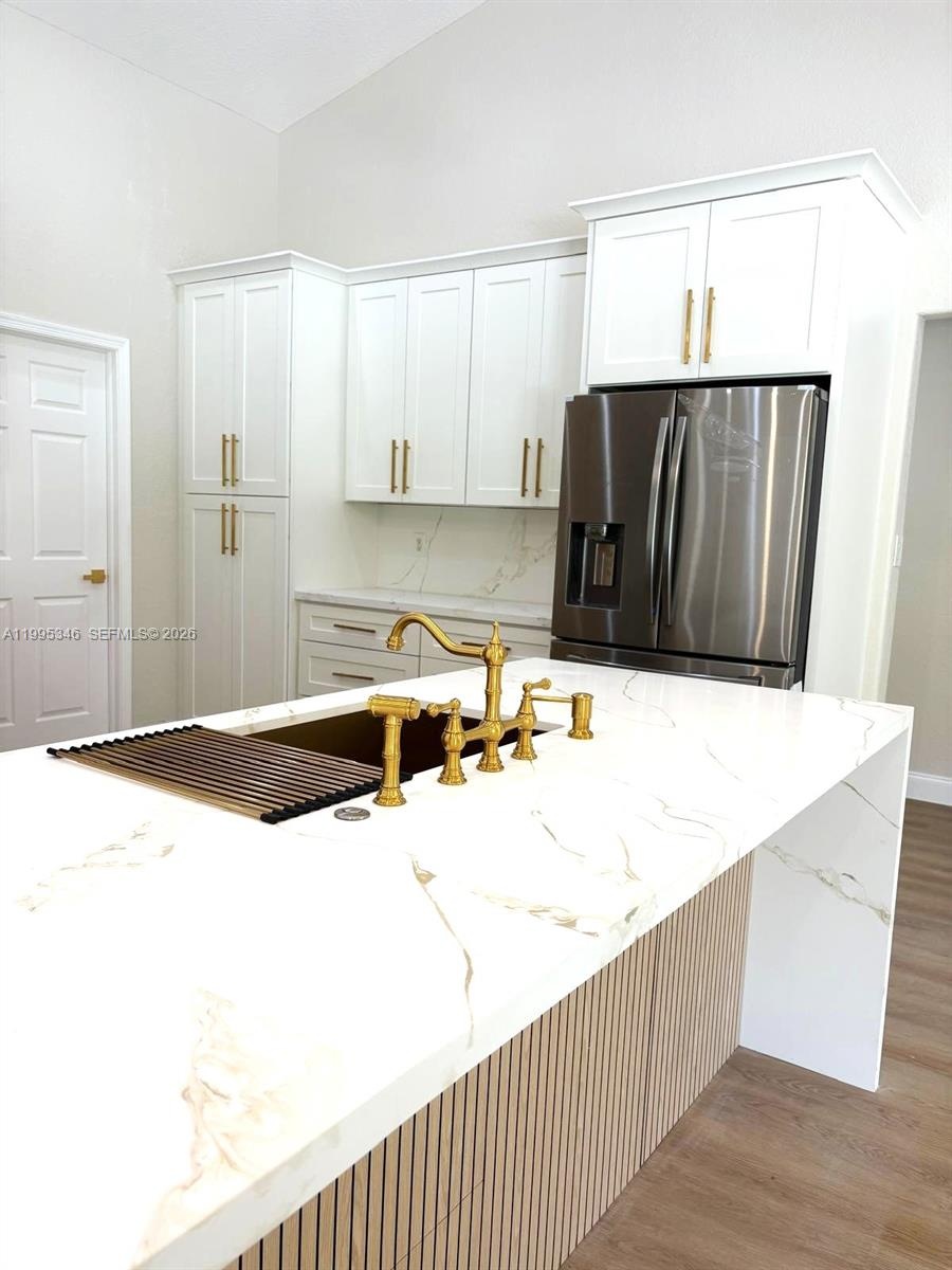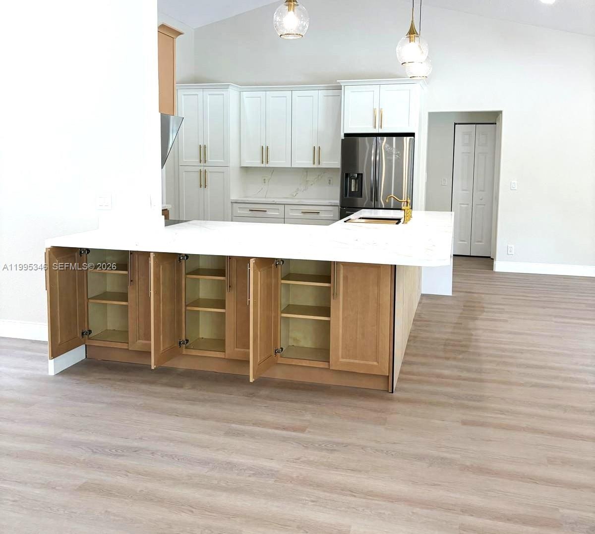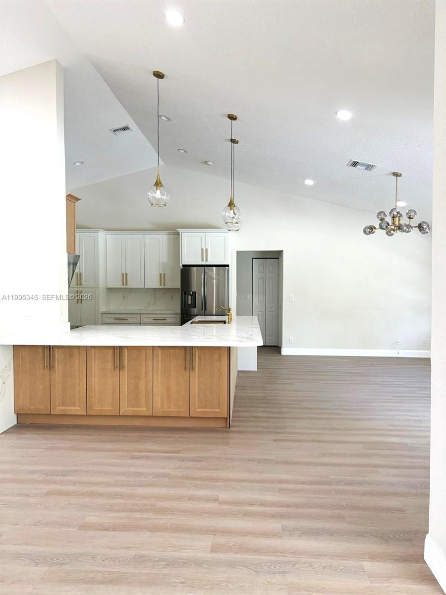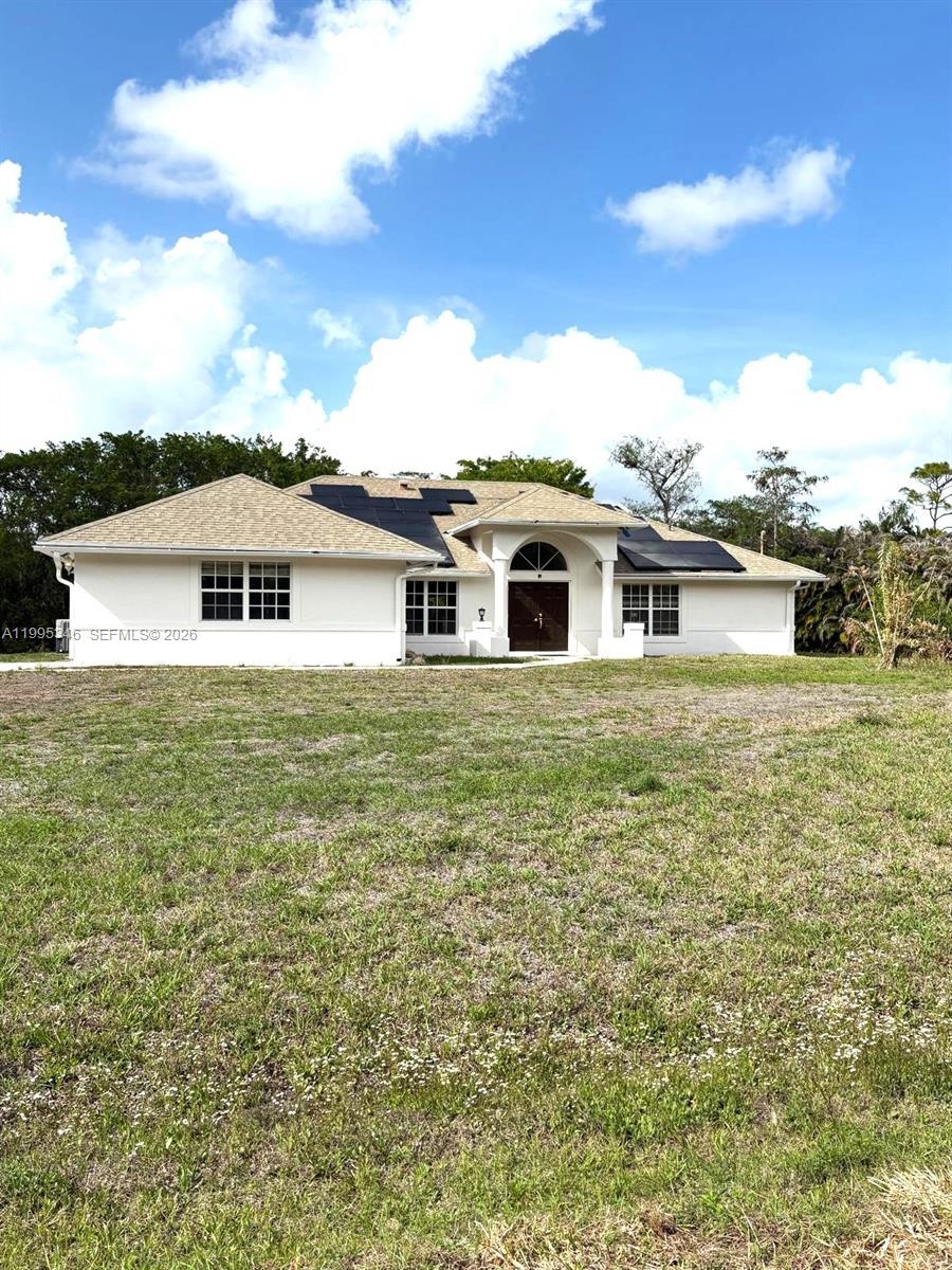 Spectacular Single Family Residence featuring 1.14 Acres Lot with 5 bedrooms, 3 bath, formal dining room, living room and family room, put 180K MODERN Designed Renovation, Modern Chandeliers, Huge Kitchen Island can set 10-12 people with Golden Accessories, Faucet and Sink, Modern Range hood with untouched performance-voice control and hand sensing control. Master bathroom embrowned with Golden accessories with electric smart toilet with the sensor, each bathrooms has their own design style, and three bathrooms have Led Mirrors, the garage can be used to game room or can change to suit, 31K solar panel is feeding the house, original roof treated for rejuvenating, municipal water supply, AC 2022, water heater 2019. Close to Publix, Malls, Safary Loin Zoo and other entertainment, Excellent schools. NO HOA