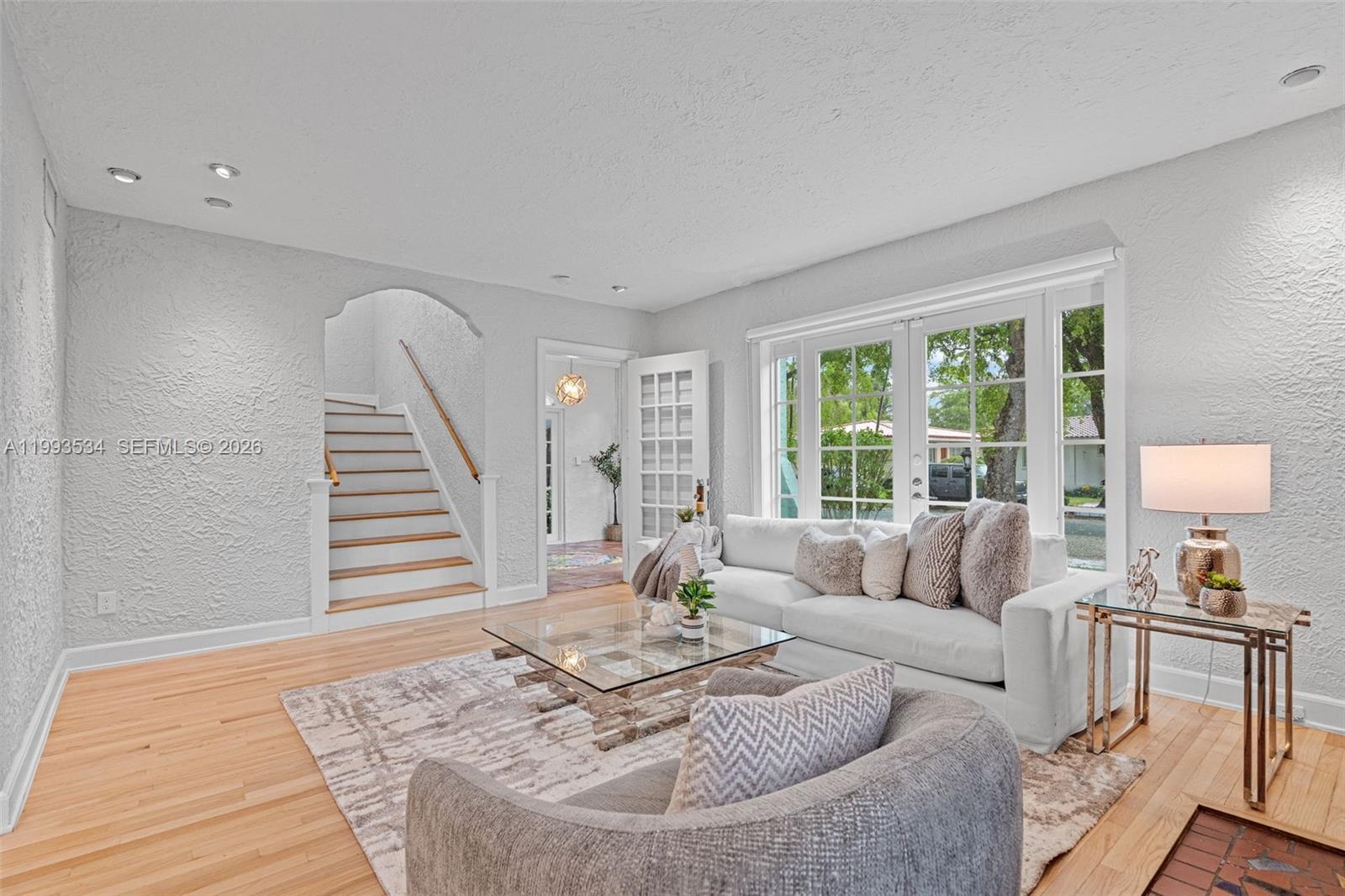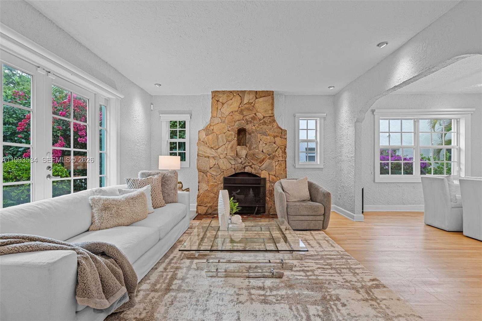 Timeless 1924 Old Spanish residence in the heart of Coral Gables, thoughtfully reimagined to blend historic character with modern luxury. Architectural details include a classic barrel tile roof, arched doorways, gorgeous HARDWOOD fllors, all with a Mediterranean-inspired design. The main home features a fully renovated kitchen and spa-inspired baths with high-end finishes and an open, functional layout. Major upgrades in the last 3.5 years include a NEW ROOF, PGT HURRICANE IMPACT windows and doors, top of the line Carrier HVAC, updated electrical systems, new plumbing with copper line from the main, water heater, septic tank, sprinkler system, and new window shades. A detached "CASITA" offers approx. 200 sq ft of air-conditioned space—ideal for a guest suite, office, or gym. Light-filled interiors enhance warmth and elegance. Ideally located on a tree-lined street near top schools, dining, and shopping—this move-in-ready Gables gem offers history, flexibility, modern comfort with peace of mind.