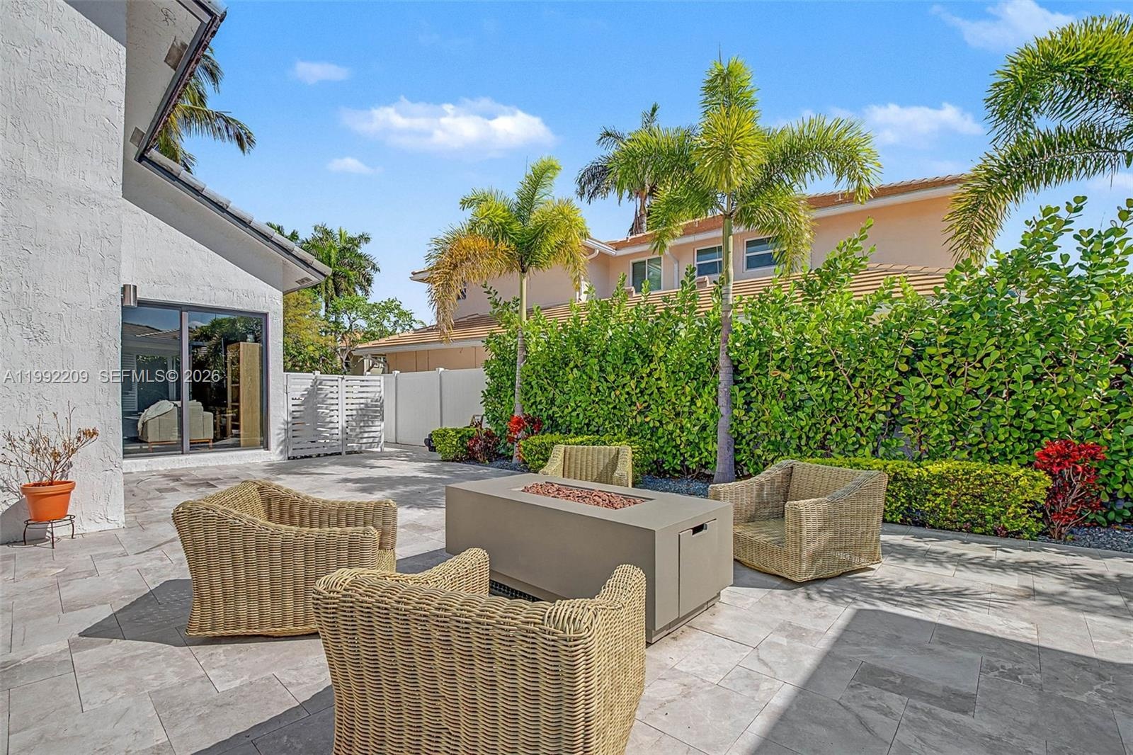 Fully reimagined modern residence in the gated Silver Lakes community, blending high-end finishes with a true indoor-outdoor lifestyle. Renovated throughout, this two-story home features volume ceilings, wide-plank flooring, recessed lighting, & a striking glass-railing staircase. Skylights & oversized windows fill the home with natural light, enhancing the open-concept layout. The kitchen is anchored by an oversized island with seating, dark stone countertops, shaker cabinetry, a Frigidaire double-wall oven, electric cooktop with vent hood, & built-in wine refrigerator. The primary suite features a freestanding soaking tub, frameless glass shower, dual vanity with matte black fixtures, and large-format tile. Upstairs also includes two guest bedrooms, a loft den, & a guest bath with double floating vanity & tub/shower combo. A first-floor bedroom with en-suite bath provides flexibility for guests. The backyard is designed for entertaining, featuring a pool with integrated spa and water spillover, sun shelf, natural stone pavers in a French pattern, & a covered lounge pavilion with TV. The summer kitchen is equipped with a Coyote grill, flat-top griddle, ice maker, built-in refrigerator, sink, & stone countertops. The fenced yard is framed by mature hedges & tropical landscaping. A two-car garage, impact windows & doors throughout, & major system updates in 2021, including roof, two-zone A/C, & water heater, complete package. HOA includes cable, WiFi, & community amenities.