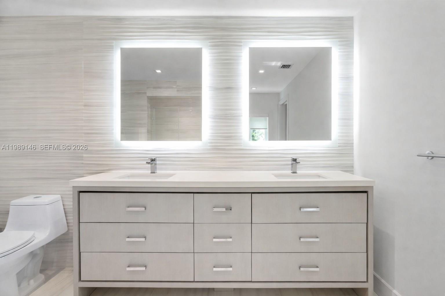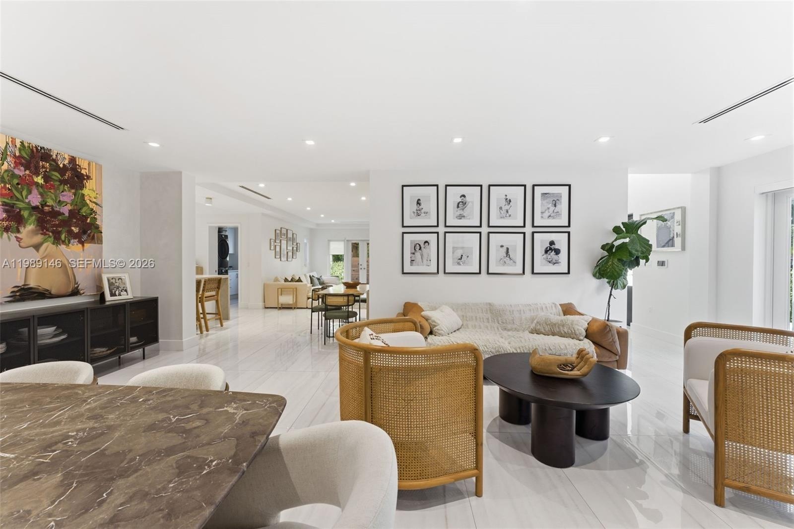A Rare Find in the Heart of Coral Gables This meticulously curated home offers an exceptional blend of custom craftsmanship and premier location a combination that’s truly hard to come by in Miami. The living space is anchored by a stunning custom oak and marble built-in media console with integrated lighting.