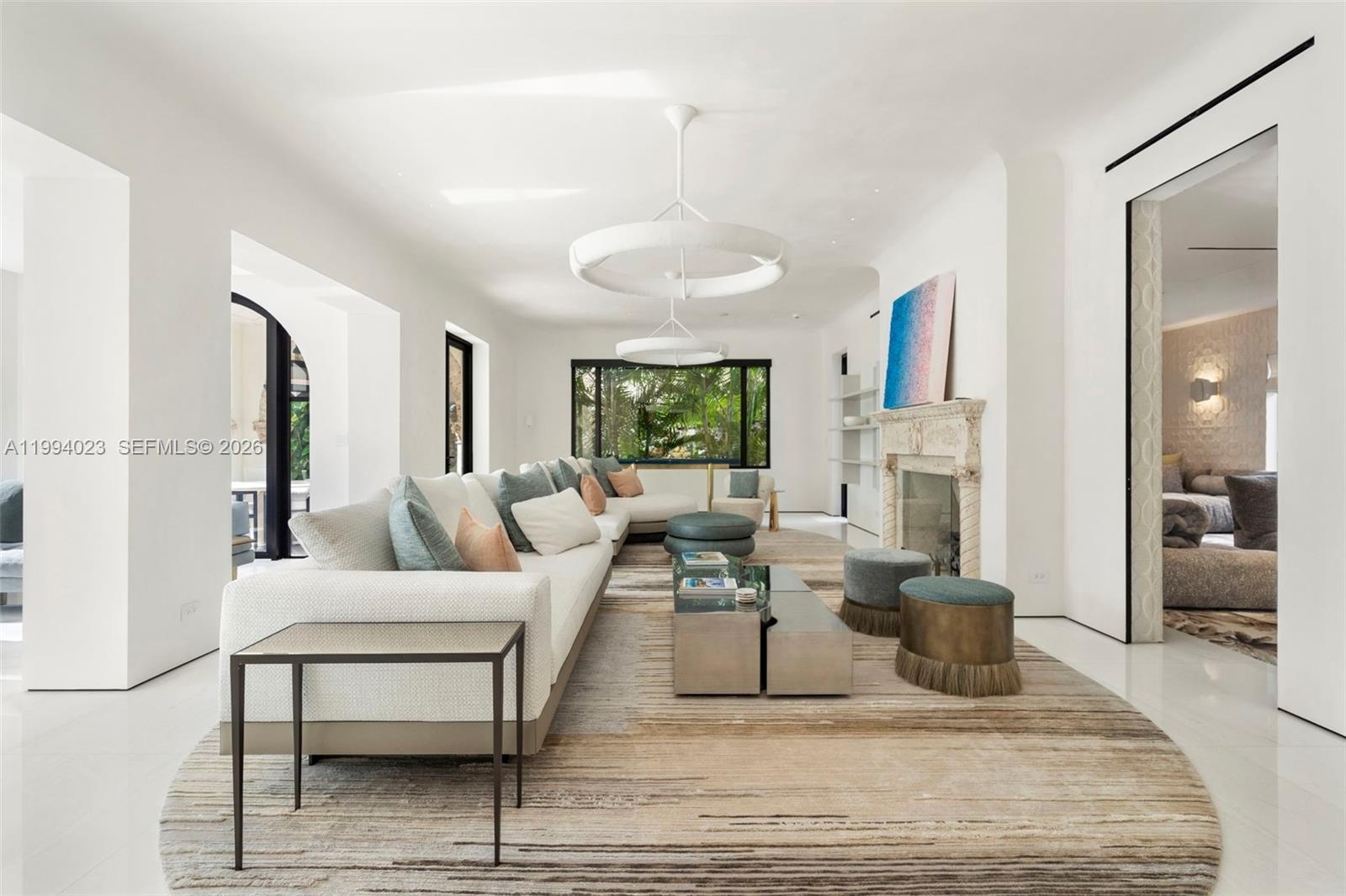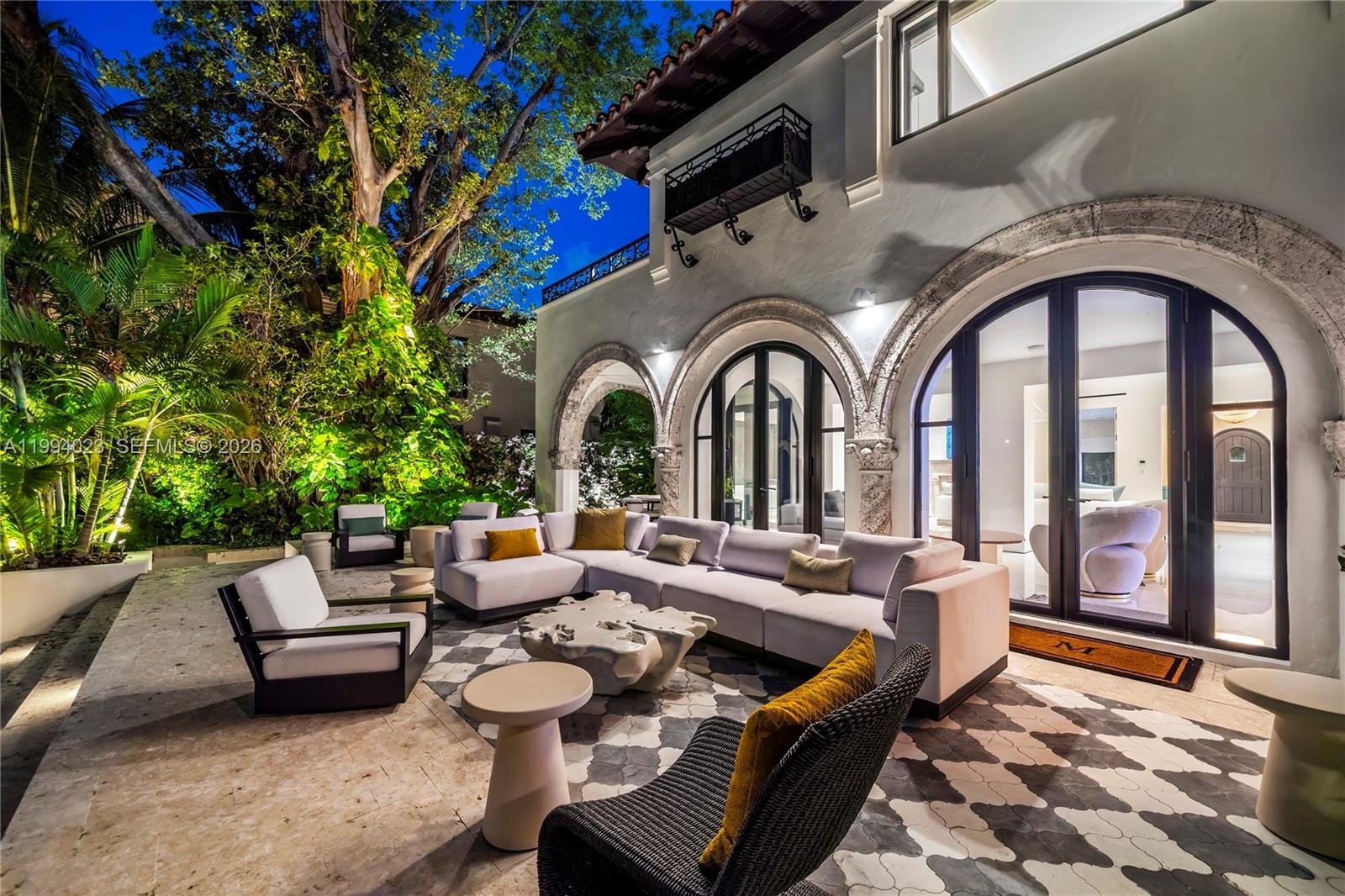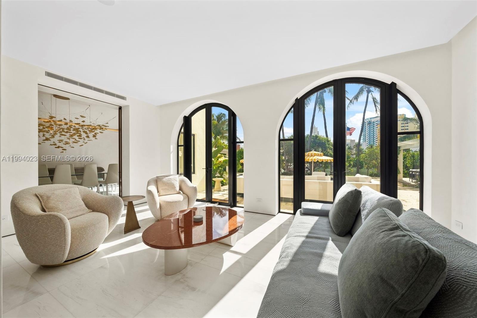 Grand Mediterranean estate by famous architect, Carlos Schoeppl, completely remodeled and upgraded for opulent waterfront living! Walled and gated, estate-style driveway with stunning landscape leads to the main house. Inside, a seamless blend between contemporary luxury finishes with oversized arched windows, wood and marble floors, living room with original fireplace, formal dining with wine cellar, marble kitchen with La Cornue range, media room, and 2 offices. Up, 4 beds including a lavish primary suite with spa-like bath and sitting room. Resort-style amenities, idyllic porches throughout, gazebo, summer kitchen with pizza oven, dining and lounge areas, and heated pool with hot tub. Detached guesthouse suite and elite home gym with cold plunge and sauna by the front, dock & boatlift.