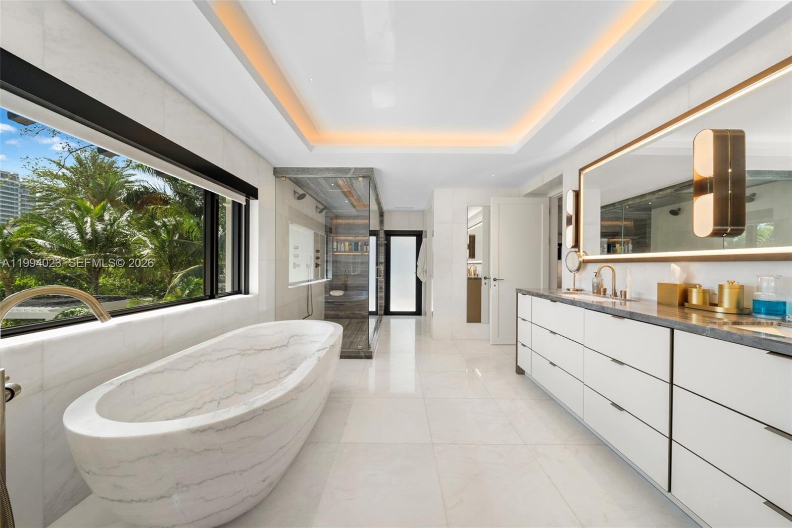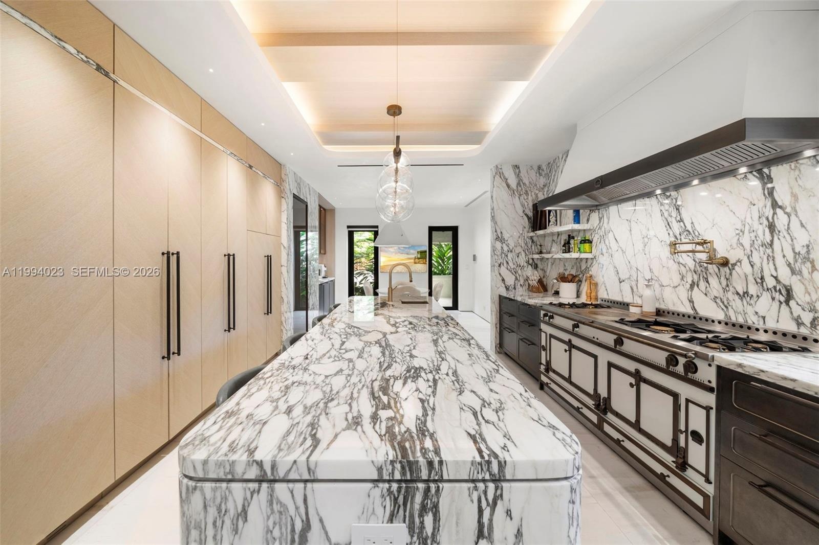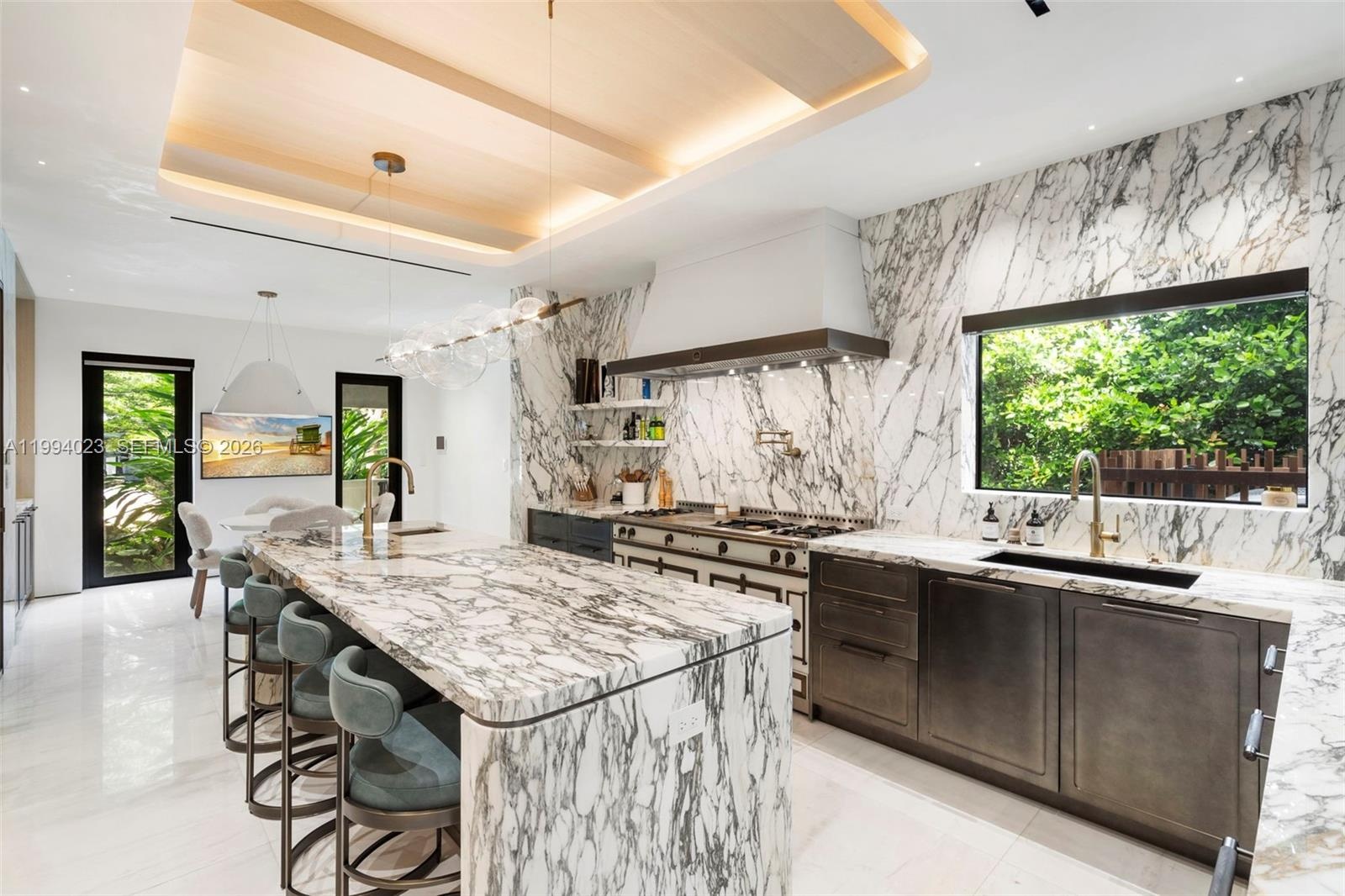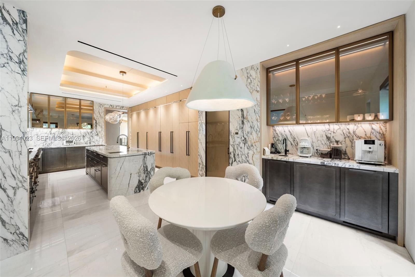 Grand Mediterranean estate by famous architect, Carlos Schoeppl, completely remodeled and upgraded for opulent waterfront living! Walled and gated, estate-style driveway with stunning landscape leads to the main house. Inside, a seamless blend between contemporary luxury finishes with oversized arched windows, wood and marble floors, living room with original fireplace, formal dining with wine cellar, marble kitchen with La Cornue range, media room, and 2 offices. Up, 4 beds including a lavish primary suite with spa-like bath and sitting room. Resort-style amenities, idyllic porches throughout, gazebo, summer kitchen with pizza oven, dining and lounge areas, and heated pool with hot tub. Detached guesthouse suite and elite home gym with cold plunge and sauna by the front, dock & boatlift.