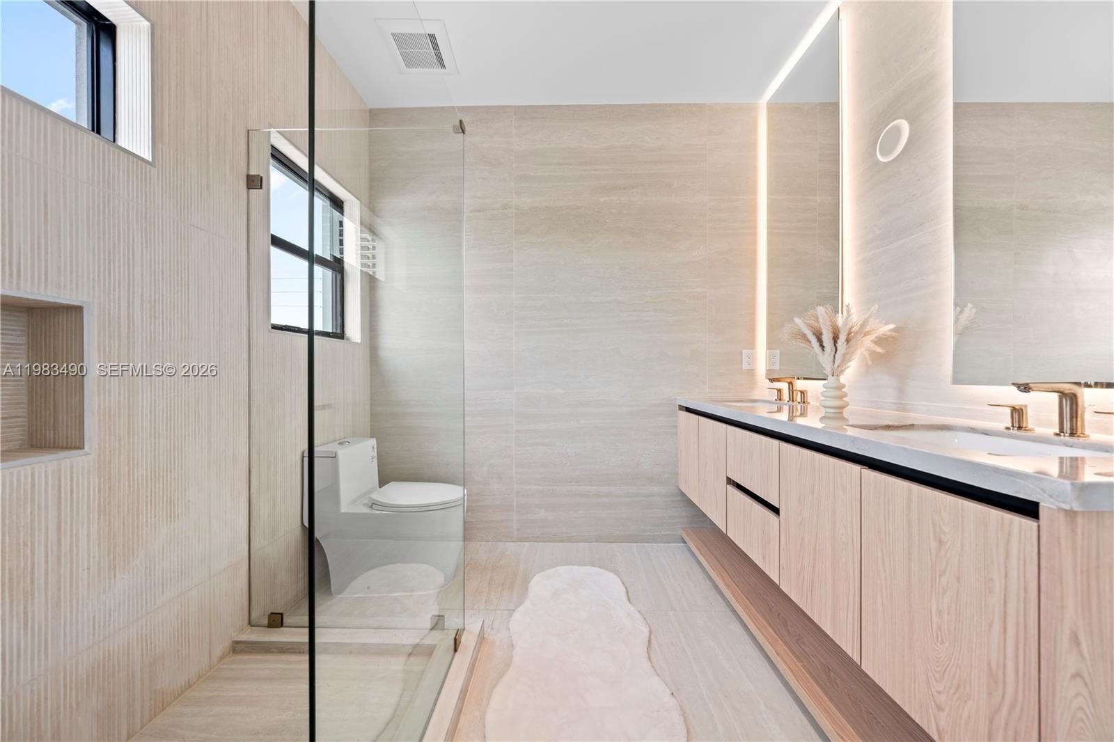 Built-in closets in all bedrooms. Spa-inspired bathrooms include Hansgrohe and Symmons fixtures, LED mirrors, rain shower heads, Kohler toilets, and Sitka soaking tubs for a refined, relaxing feel.