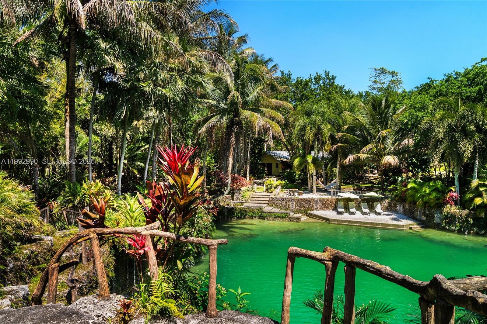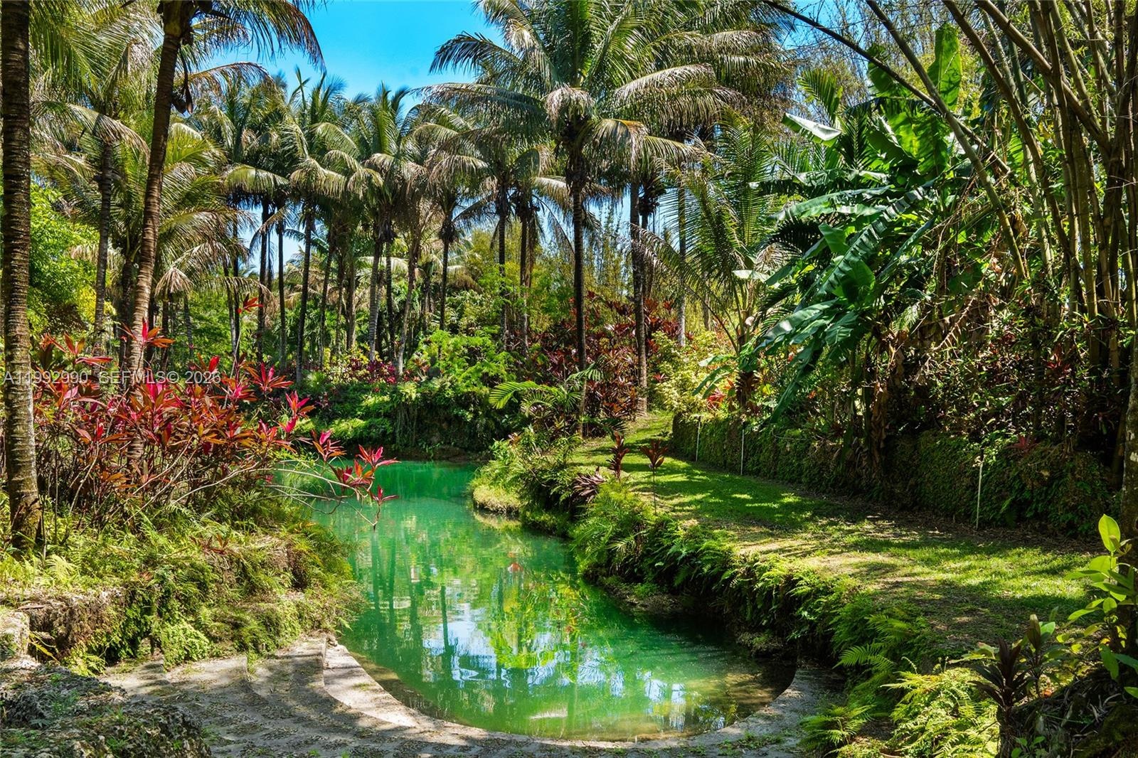 Breezy Oaks is a rare 14.38-acre tropical farm oasis in the Redlands featuring a private Florida Rock Pine Preserve. This one-of-a-kind sanctuary blends natural beauty, privacy, and endless potential. A dramatic entrance with massive coral rock pillars and custom copper gates leads to a winding coral rock-lined driveway and a 3BR/3BA surrounded by mature oaks and lush tropical landscaping. The property’s centerpiece is three freshwater coral rock grottos sourced from the Florida aquifer, masterfully crafted by renowned artisan Ben Bistrong. These extraordinary features include cascading waterfalls, sandy beach areas, a hidden cave, and tranquil swimming pools—creating a truly resort-like setting unlike anything else in South Florida. Expansive open lawns, winding paths, and a 3-acre rock pine preserve provide space for recreation, large-scale entertaining, or future customization and development. A thriving fruit grove with mango, avocado, and citrus trees, along with an on-site bee colony producing fresh honey, enhances the property’s organic, self-sustaining appeal. An elevated pad grass area for a 6-stall barn on the Southwest corner plus a substantial storage structure with dedicated access provides added utility and flexibility. Ideally located near the Florida Turnpike with easy access to Miami, Homestead, and the Florida Keys. An additional 29.20 acres are available for a combined 43.58-acre opportunity.