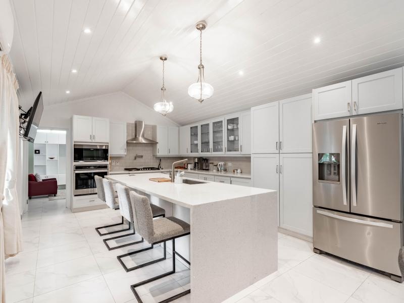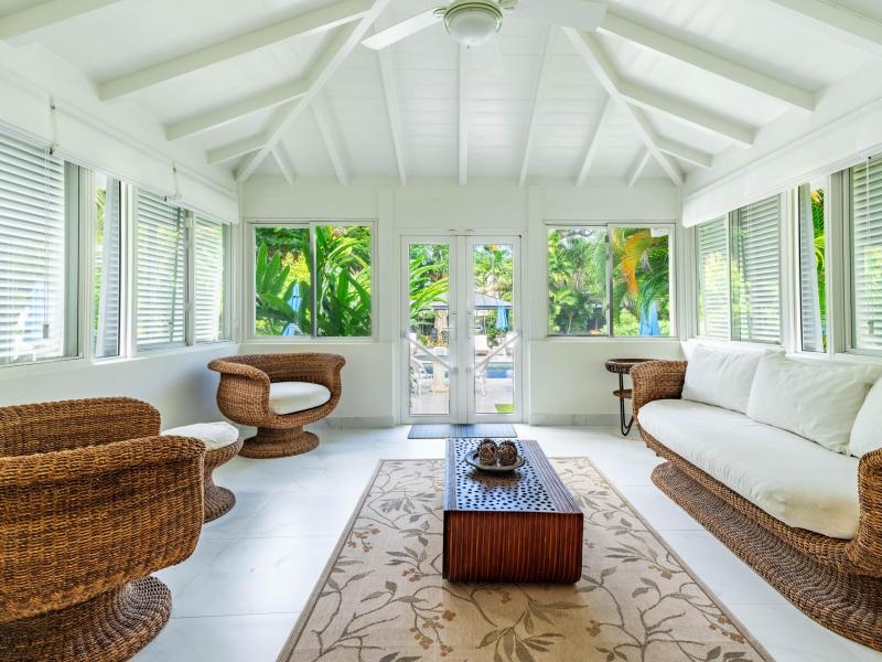 Designed for effortless island living, this villa is filled with natural light and cooled by soaring vaulted ceilings that enhance airflow and create a relaxed, open atmosphere throughout. The interiors balance classic architectural lines with modern comfort, offering a home that feels both gracious and welcoming. The primary suite is a serene retreat, complete with an en-suite bathroom, walk-in closets, and a private outdoor shower - an indulgent touch that connects daily life to the surrounding tropical landscape.