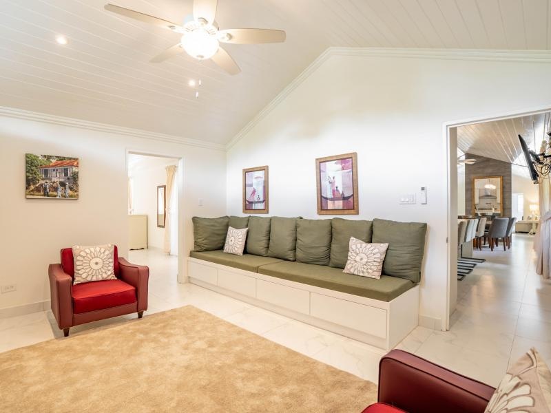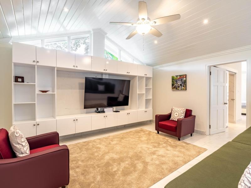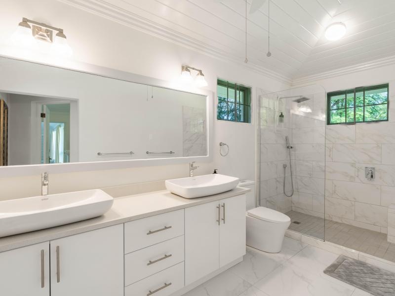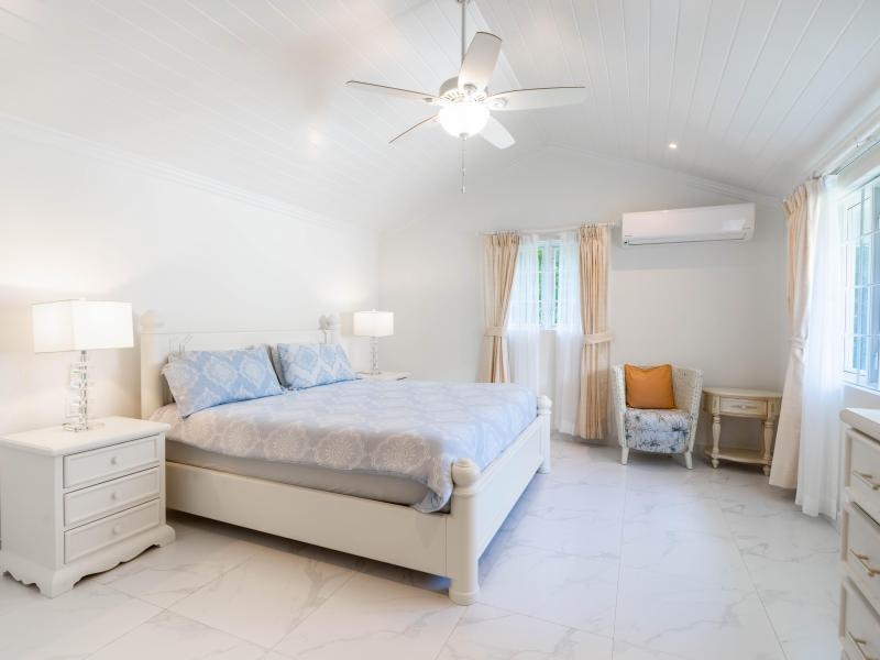 Two additional bedrooms share a well-appointed bathroom, while a fourth en-suite bedroom provides ideal accommodation for guests or extended family. This thoughtful layout allows for flexibility, whether envisioned as a full-time residence, a refined second home in Barbados, or a legacy investment within the Sandy Lane Estate.