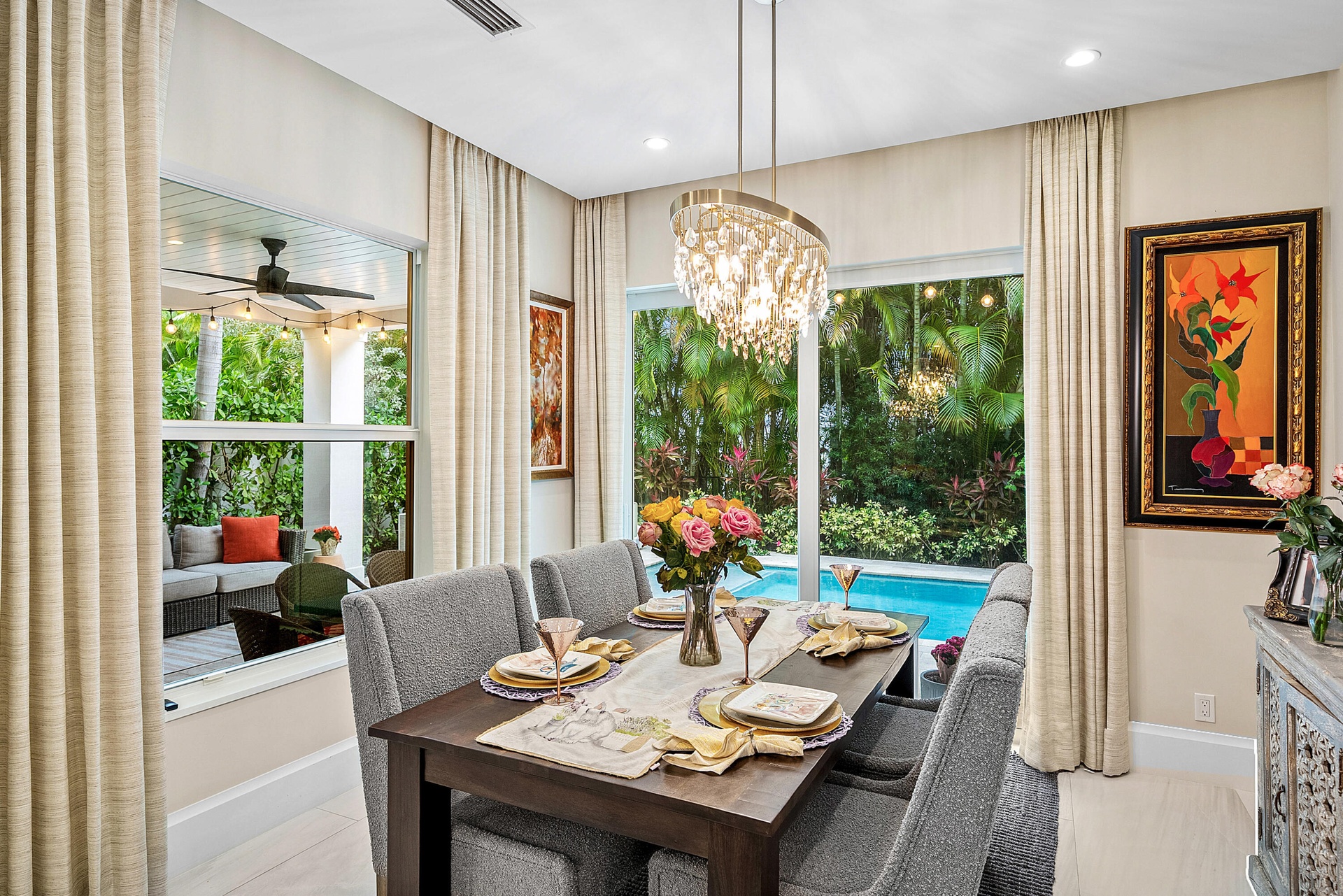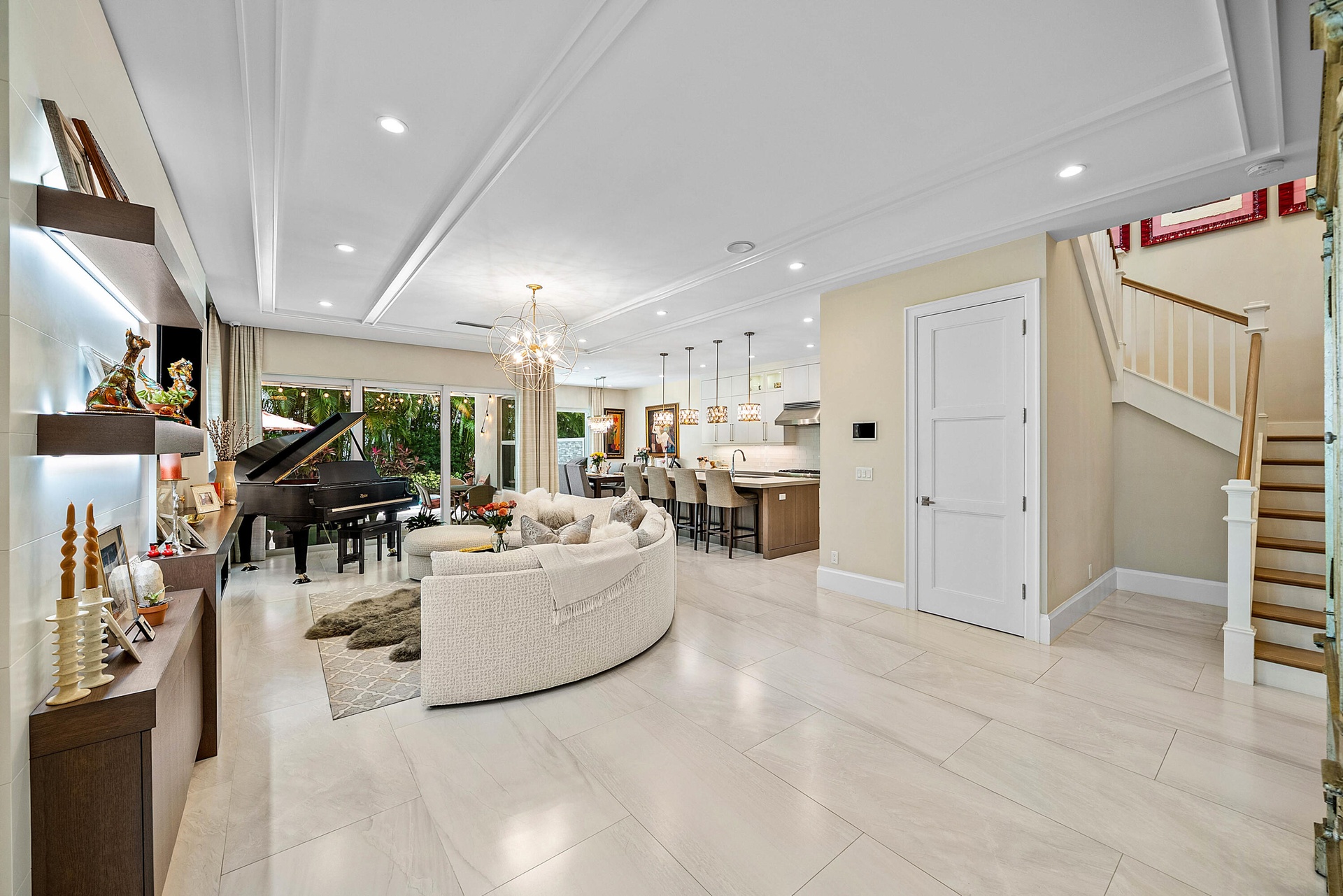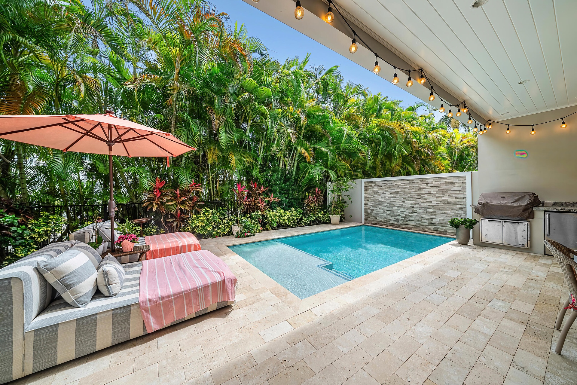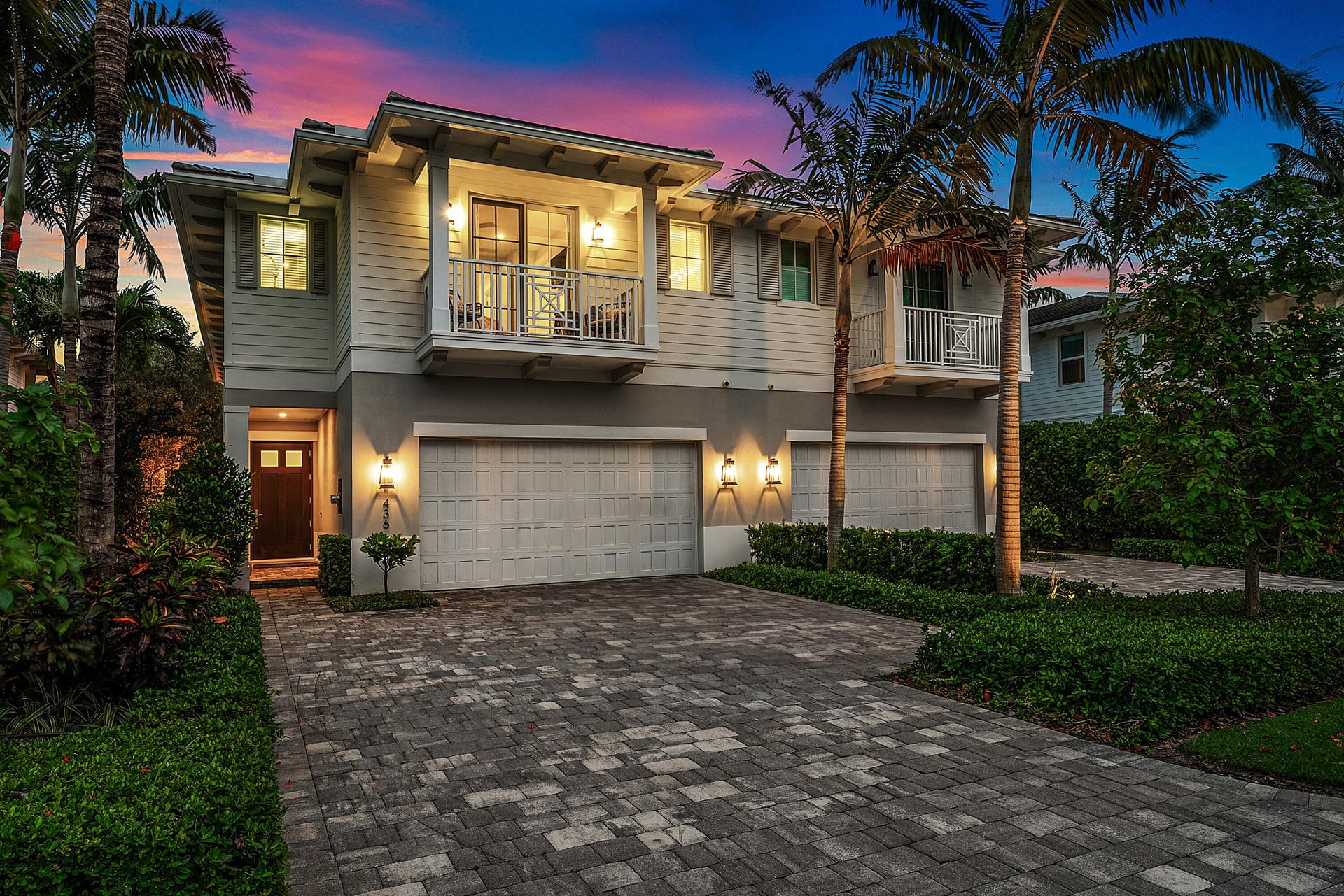 Experience refined coastal living just one block from the beach in Boca Raton Riviera in this impeccably designed 2020-built townhome offering 3 bedrooms, 3 full and 1 half baths. Thoughtfully crafted with soaring 10-foot ceilings, wide-plank wood and oversized porcelain tile flooring, custom millwork, and expansive impact glass that fills the home with natural light, the open-concept great room is anchored by a sleek linear gas fireplace and custom built-ins, creating a sophisticated yet inviting atmosphere. The gourmet island kitchen is both striking and functional, featuring streamlined cabinetry, Caesarstone countertops, and a full suite of professional-grade Thermador appliances including a natural gas range, ideal for both everyday living and entertaining. Upstairs, a spacious loft connects the private bedroom suites, including a luxurious primary retreat complete with custom wood detailing, a tranquil balcony overlooking lush treetops, boutique-style closets, and a spa-inspired bath with dual vanities, a freestanding soaking tub, and a glass-enclosed shower. Outdoors, enjoy a private resort-style setting with a heated pool and summer kitchen, perfect for year-round entertaining, along with a full laundry room, two-car garage, and Control4 smart home system for seamless modern convenience, all just moments from the shoreline in one of Boca Raton's most desirable seaside enclaves.
