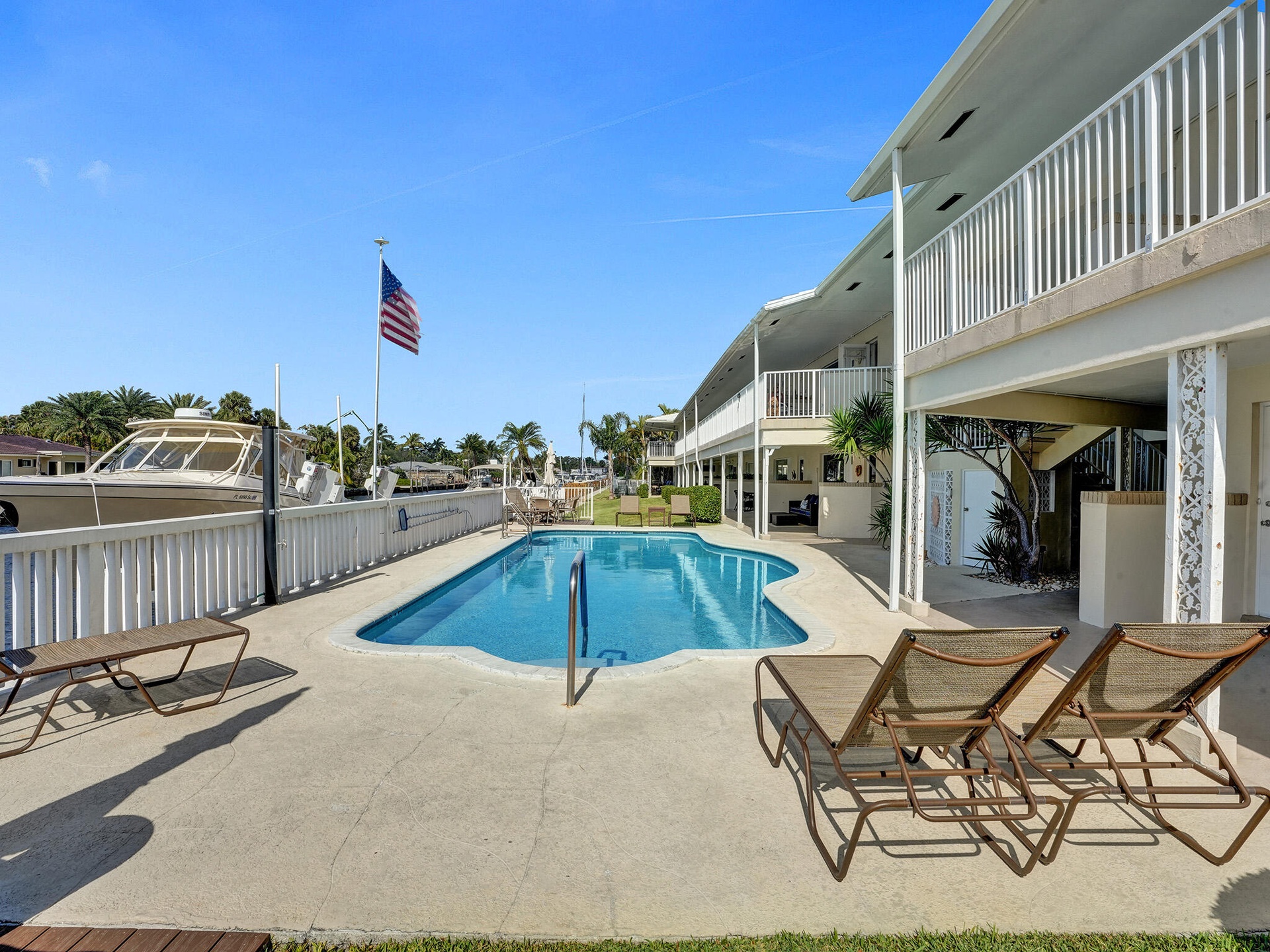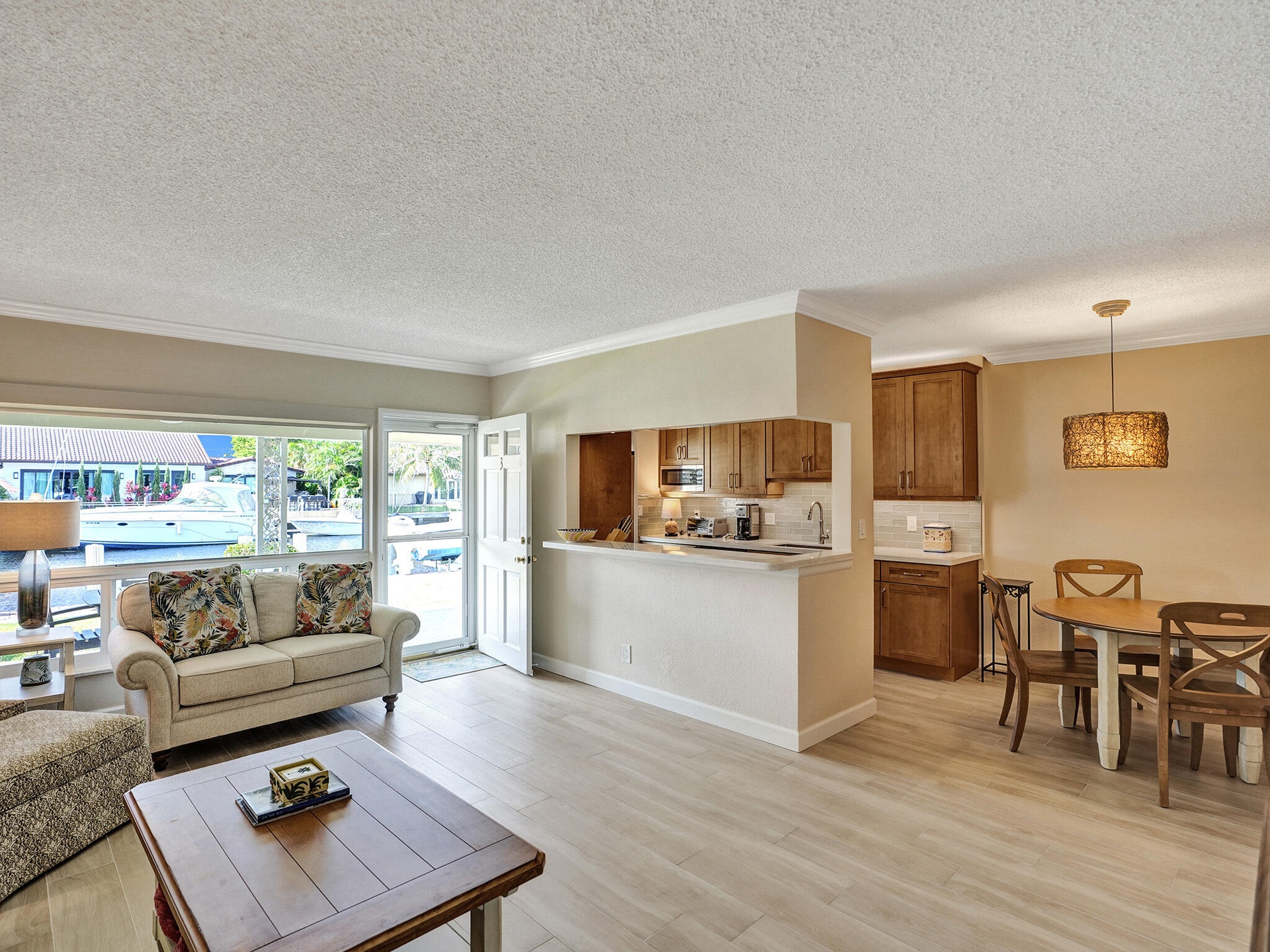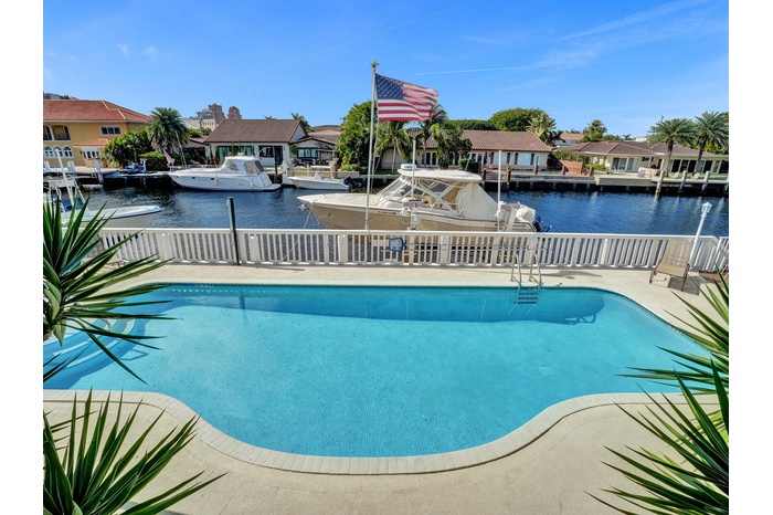 SEASONAL LEASE WITH DOCK AVAILABLE for boat up to 30 ft.. ALSO AVAILABLE WITHOUT DOCK USAGE FOR $4900. MONTH. Here is your opportunity to enjoy this fully renovated waterfront unit in a gated Boutique building in East Fort Lauderdales' Coral Ridge neighborhood. Gorgeous views of the Intracoastal Waterway right from your front patio and pool area. Enjoy an everyday boat parade. Unit aavailable for a 4-6 month rental, between October and April. . Beautifully furnished and fully ready for your move in. First floor location with private fromt patio. Electric will be deducted from your security deposit at time lease ends. Conveniently located close to the beach, restaraunts and shops. You will LOVE the quiet peaceful setting Lafayette Arms has to offer.