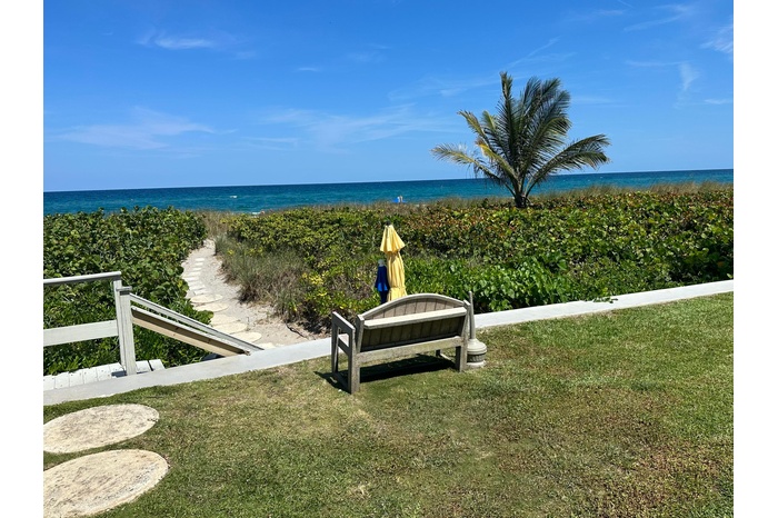 Your Oasis beachfront home, away from home. This beautiful rental is available through September. Enjoy leaving your property and walking just steps onto the beach. Fully furnished updated 2 bedroom, 2 bath, all kitchenware and appliances included. Impact glass, walk to downtown Delray, Federal Highway, parking spaces for tenants and guests. Beach chair accessibility, pool, Fitness Center, near by shops, dining and so much more. Come and enjoy this amazing property for the summer!