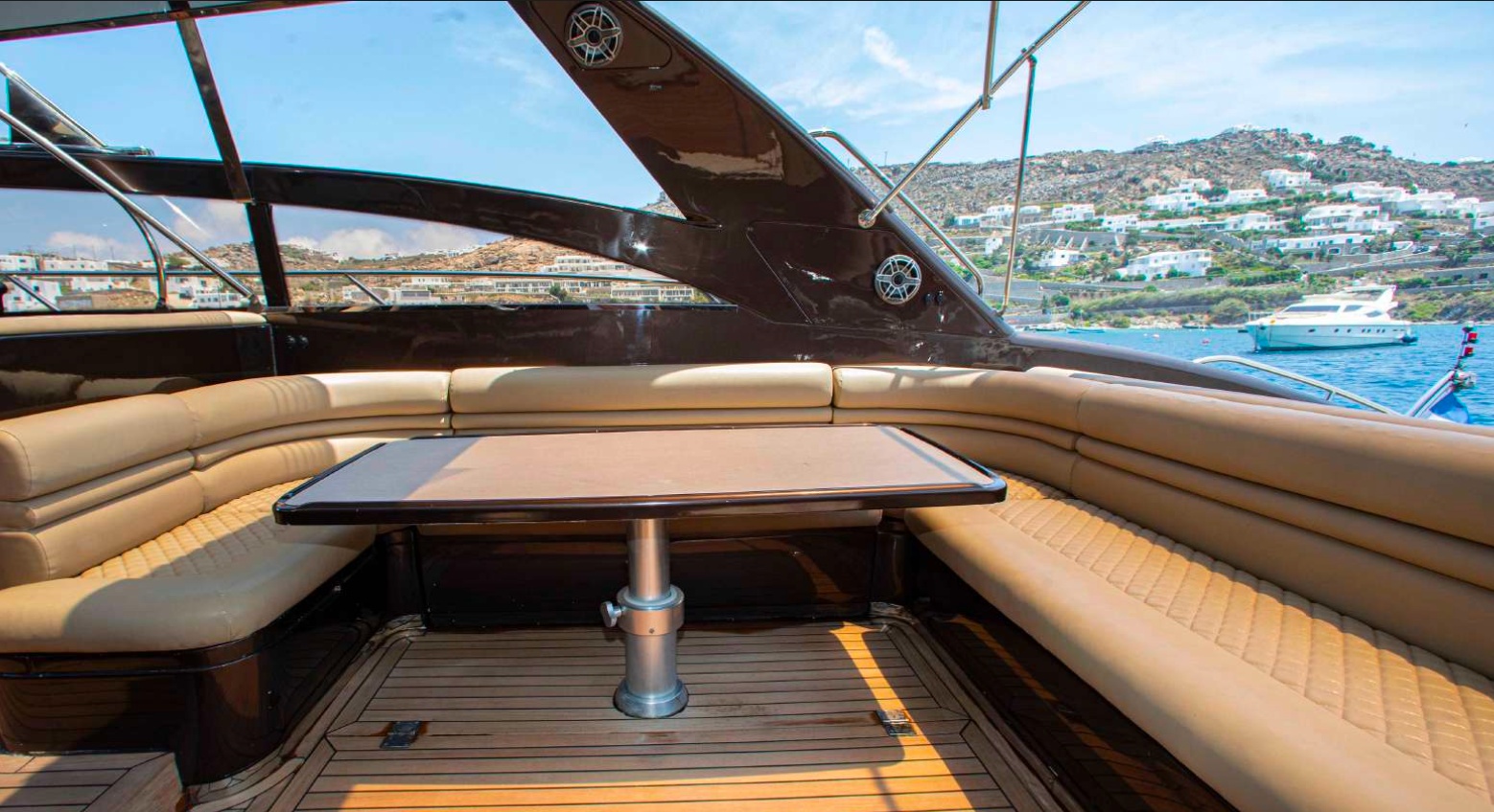 Included in Your Charter: A certified captain and two hostesses, fuel for selected Mykonos or Delos-Rhenia routes, all taxes, and a full suite of luxurious amenities to ensure your comfort and delight.