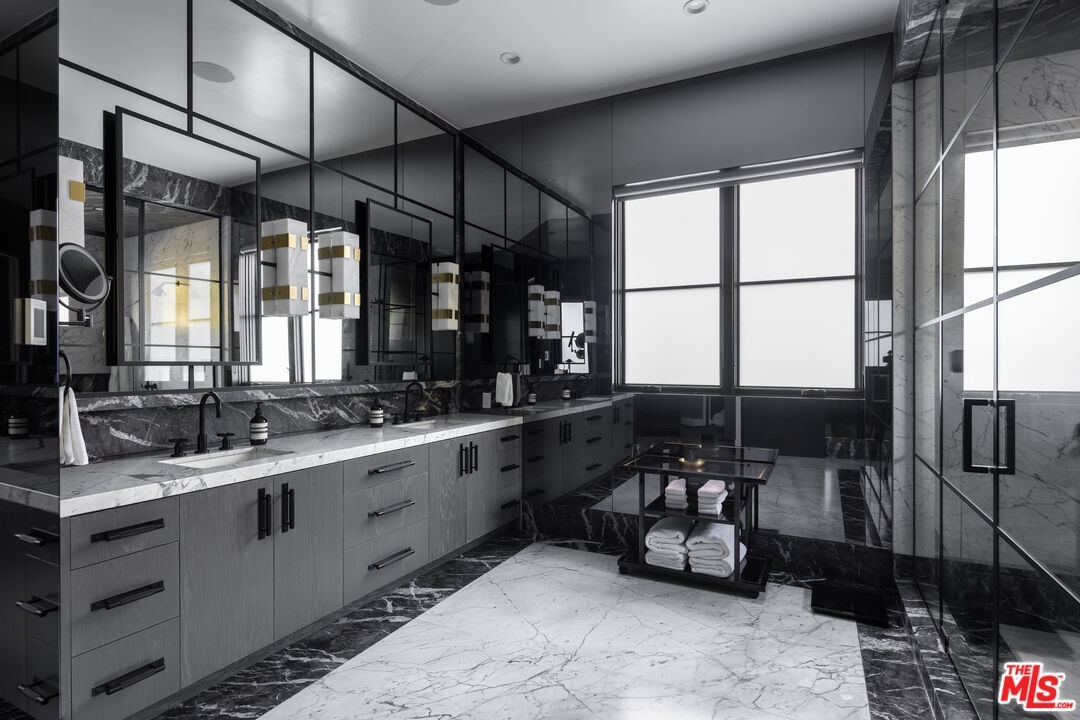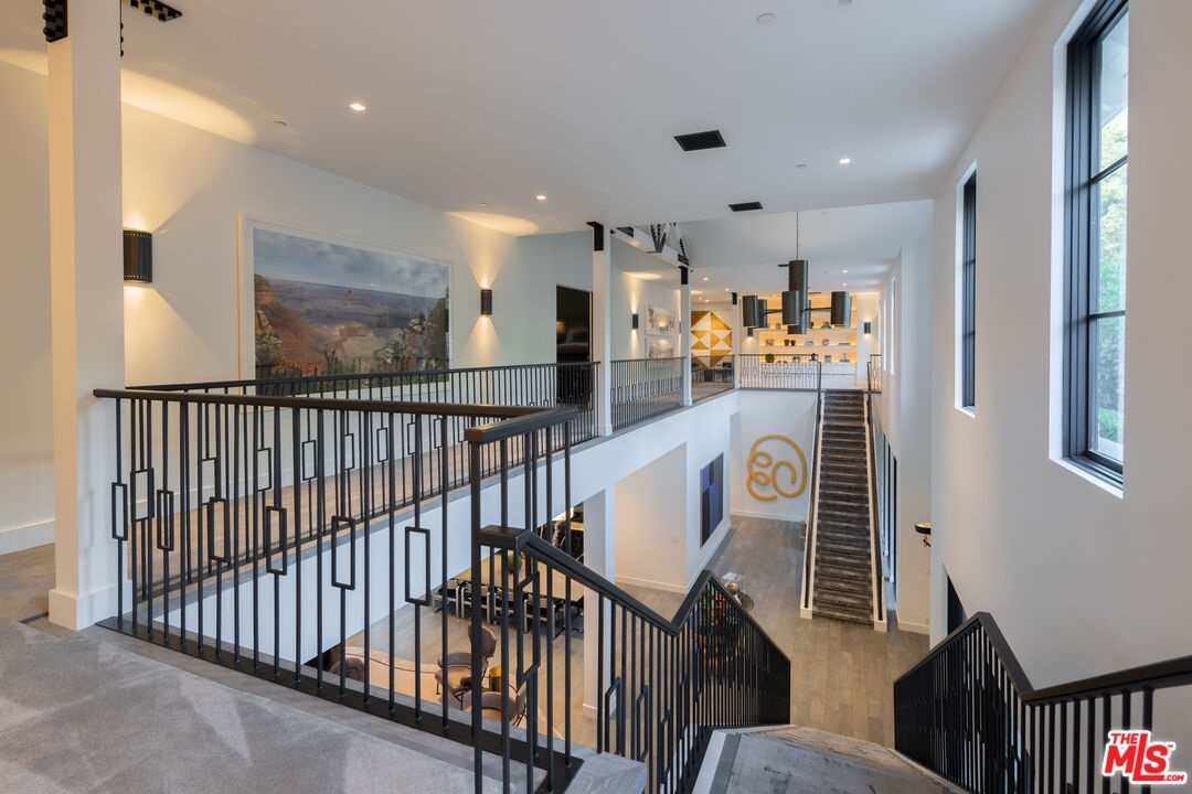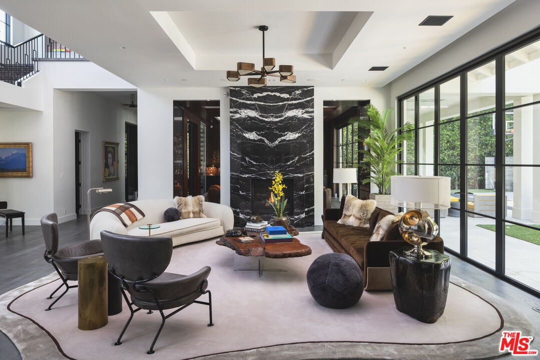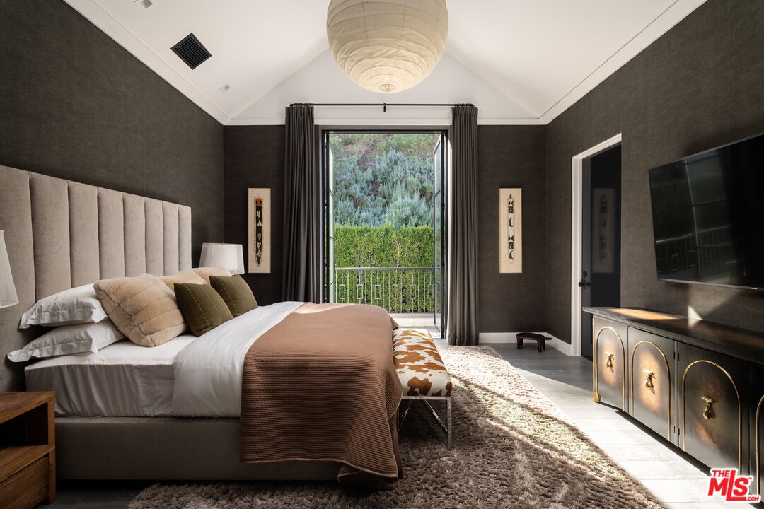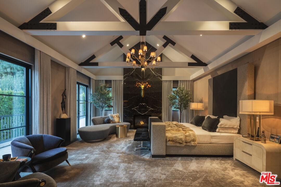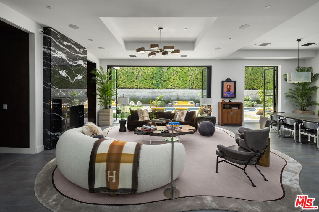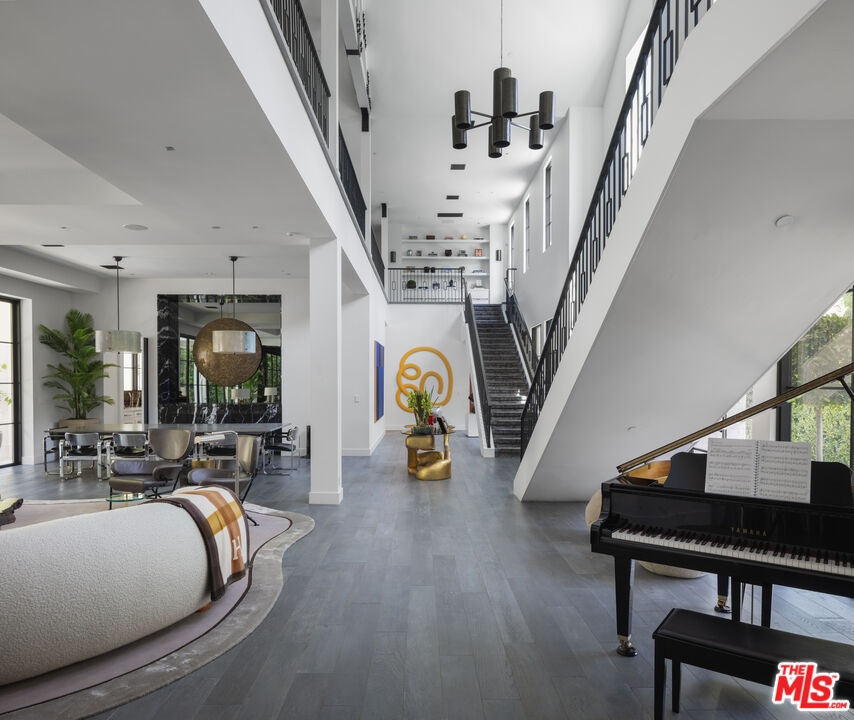 Tucked within the coveted lower Bel Air enclave just moments from the iconic Hotel Bel-Air, this gated contemporary estate blends refined design with exceptional privacy. A circular driveway leads to an expansive motor court and three car garage, setting the tone for the residence beyond. A dramatic double height entry introduces a sweeping dual staircase and opens to an airy floor plan designed for modern living. The living room, dining area, and bar flow effortlessly together, framed by walls of sliding glass that create a seamless transition to the outdoors and capture the essence of the Southern California indoor outdoor lifestyle. The chef's kitchen is appointed with professional grade appliances, a butler's pantry, and connects directly to a comfortable family room. Upstairs, the primary suite is a true retreat, featuring vaulted ceilings, a generous private balcony, a spa inspired bath, and an oversized walk in closet. Five additional ensuite bedrooms provide ample accommodations. Designed for both relaxation and entertaining, the private backyard offers a resort like setting complete with a pool and spa, outdoor kitchen, basketball half court, multiple lounge areas, and a dedicated screening room for an elevated at home cinematic experience. Thoughtfully curated by a renowned interior designer, this residence presents a rare opportunity to own a sophisticated home in one of Bel Air's most prestigious and tranquil settings.