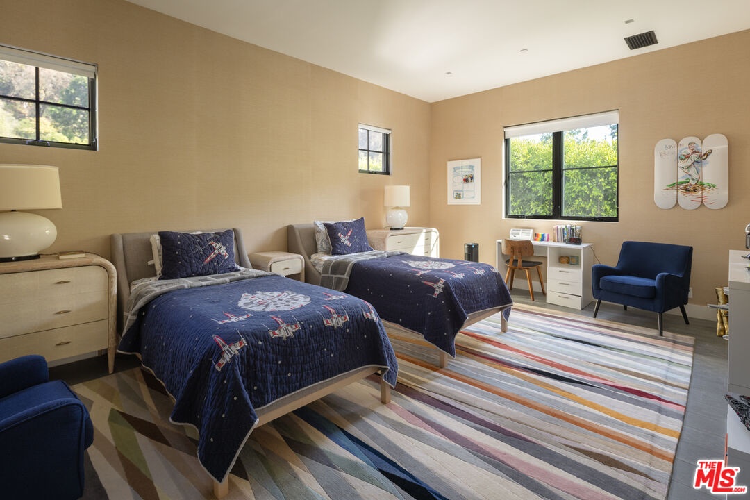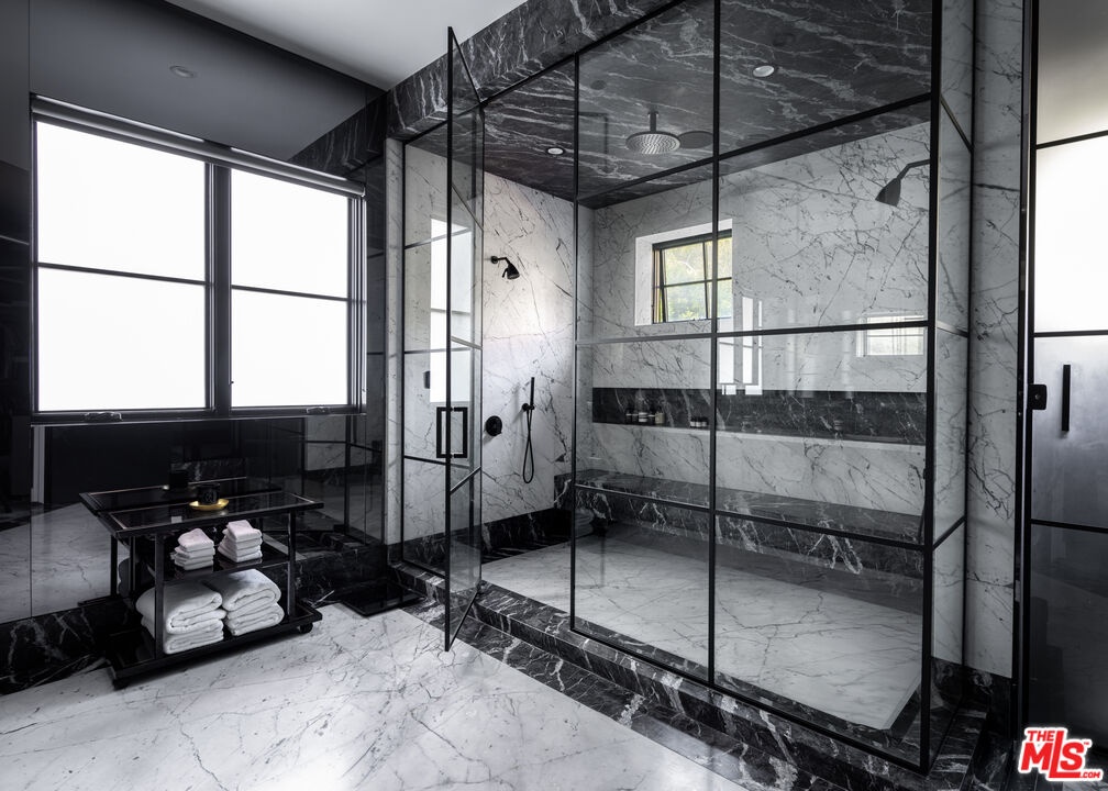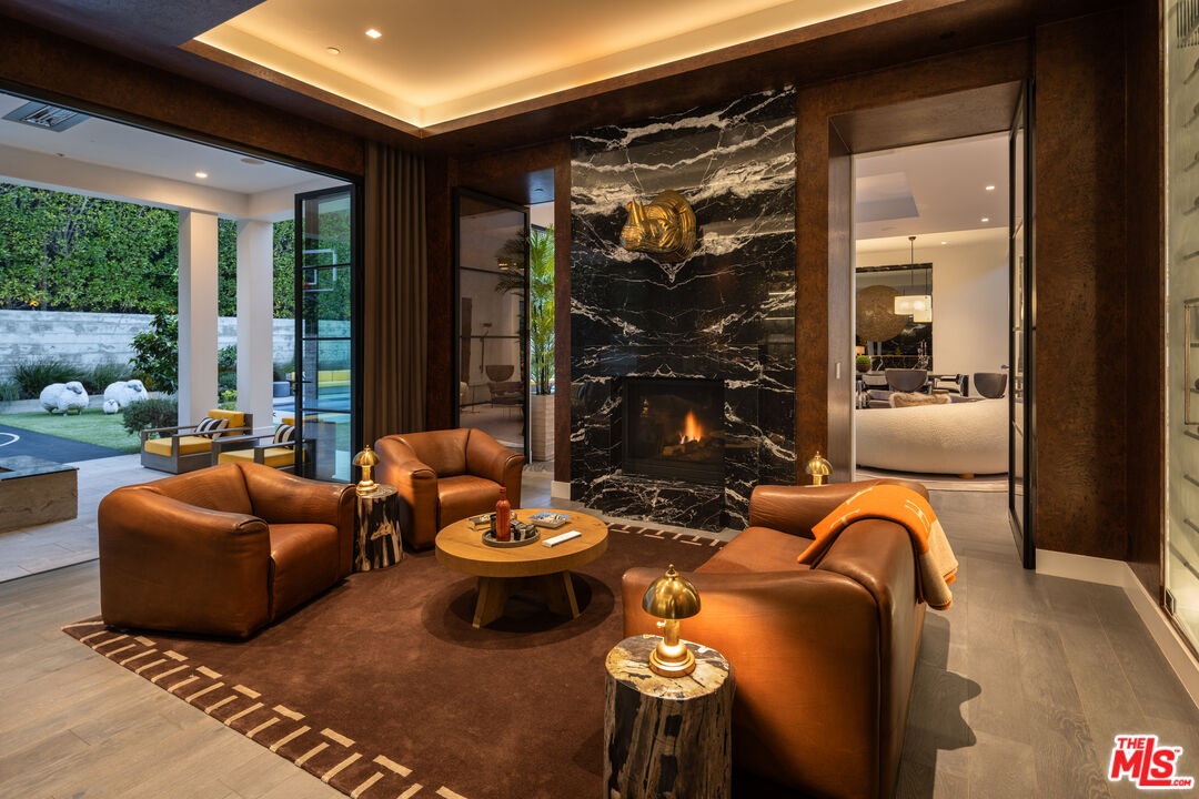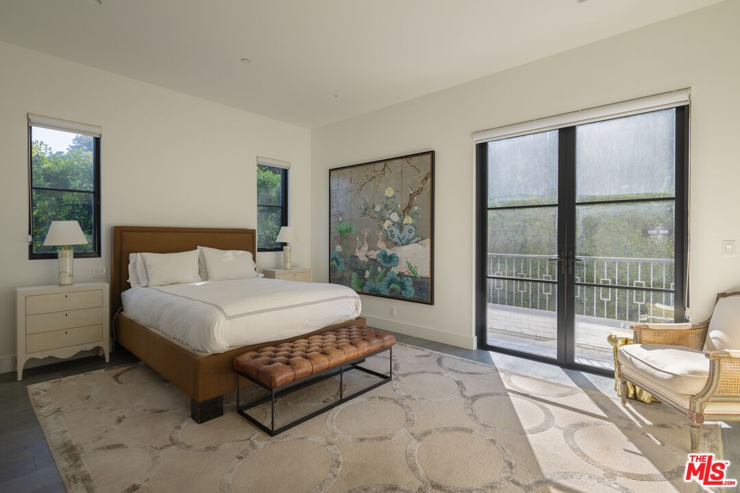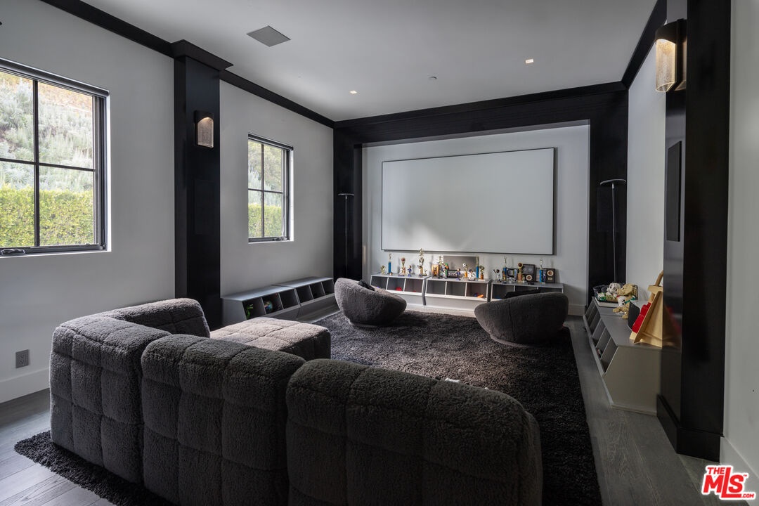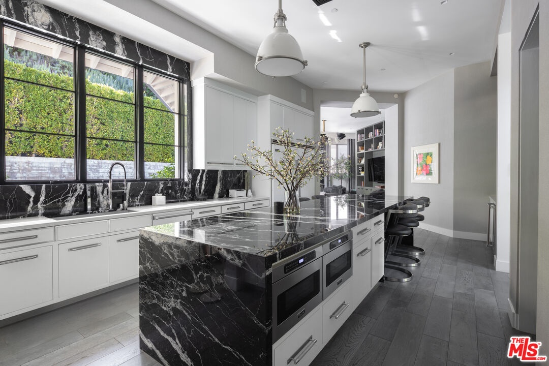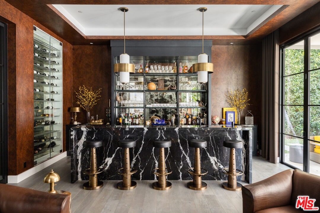 Tucked within the coveted lower Bel Air enclave just moments from the iconic Hotel Bel-Air, this gated contemporary estate blends refined design with exceptional privacy. A circular driveway leads to an expansive motor court and three car garage, setting the tone for the residence beyond. A dramatic double height entry introduces a sweeping dual staircase and opens to an airy floor plan designed for modern living. The living room, dining area, and bar flow effortlessly together, framed by walls of sliding glass that create a seamless transition to the outdoors and capture the essence of the Southern California indoor outdoor lifestyle. The chef's kitchen is appointed with professional grade appliances, a butler's pantry, and connects directly to a comfortable family room. Upstairs, the primary suite is a true retreat, featuring vaulted ceilings, a generous private balcony, a spa inspired bath, and an oversized walk in closet. Five additional ensuite bedrooms provide ample accommodations. Designed for both relaxation and entertaining, the private backyard offers a resort like setting complete with a pool and spa, outdoor kitchen, basketball half court, multiple lounge areas, and a dedicated screening room for an elevated at home cinematic experience. Thoughtfully curated by a renowned interior designer, this residence presents a rare opportunity to own a sophisticated home in one of Bel Air's most prestigious and tranquil settings.