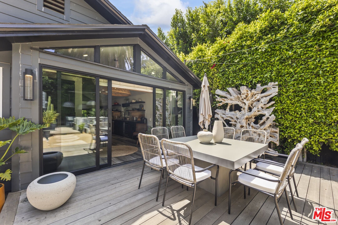 Priced below comps, this effortlessly cool and design-driven Modern Craftsman offers a rare opportunity in a highly walkable West Hollywood location, just moments from top dining, cafes, boutiques, and creative hotspots. Positioned below recent comparable sales, it stands out as one of the best values currently available. The 2-bedroom, 2-bathroom main residence features vaulted ceilings, exposed wood beams, and abundant natural light, creating an open, airy atmosphere with an elevated boho-chic aesthetic. Expansive glass doors open to a private deck and lush outdoor spaces, delivering seamless indoor-outdoor living ideal for both everyday enjoyment and entertaining. A fully permitted detached 1-bedroom, 1-bathroom ADU with its own private entrance adds exceptional versatility perfect for guests, a creative studio, or income potential. This flexibility also makes the property an ideal turnkey option for a 1031 exchange. This new offering presents a compelling opportunity for buyers ready to act. Select high-end designer furnishings may be included, offering a truly move-in-ready experience. A rare combination of location, design, flexibility, and value!