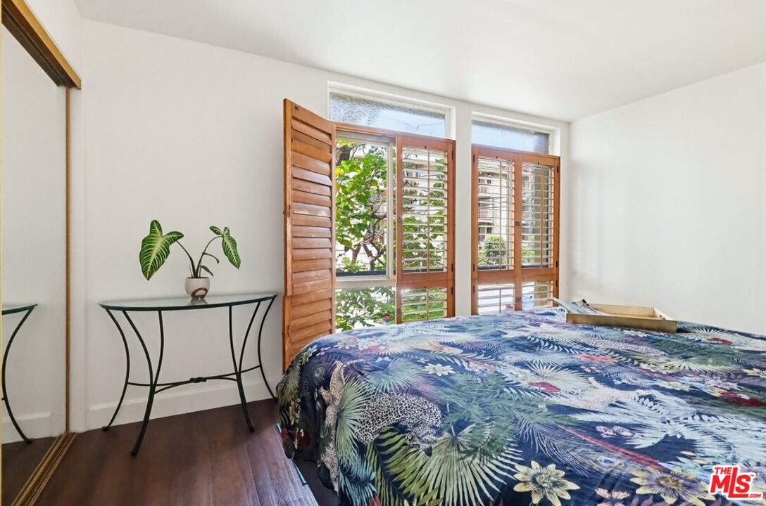 Live this fabulous West Hollywood lifestyle in this stylish 2-bedroom, 2-bath condo in a prime Los Angeles location surrounded by West Hollywood's best dining, shopping, and nightlife. Why rent when you can own in one of LA's most desirable neighborhoods? This light-filled home features a rare oversized private garden patio with treetop and skyline views overlooking the iconic Pacific Design Center. Perfect for indoor-outdoor living, entertaining, or relax with your doggie. The open-concept living and dining area flows seamlessly to the outdoor space, complemented by ceramic Spanish tile floors, central air conditioning, updated lighting, and motorized blinds. The kitchen includes a new cooktop and functional layout ideal for everyday living. Enjoy resort-style amenities including a sparkling pool, spa, BBQ area, and lush landscaped grounds. Your own oasis in the heart of the city. The building has completed retrofitting, offers low HOA dues, secure garage parking, additional storage cupboards and newly approved in-unit washer/dryer hookups. Ideally located near Dialog Cafe, the new Erewhon Market, Sunset Strip hotspots and clubs. A perfect first home, investment, or West Hollywood retreat. LA easy living. This is a must see. Summer loving at it's best.